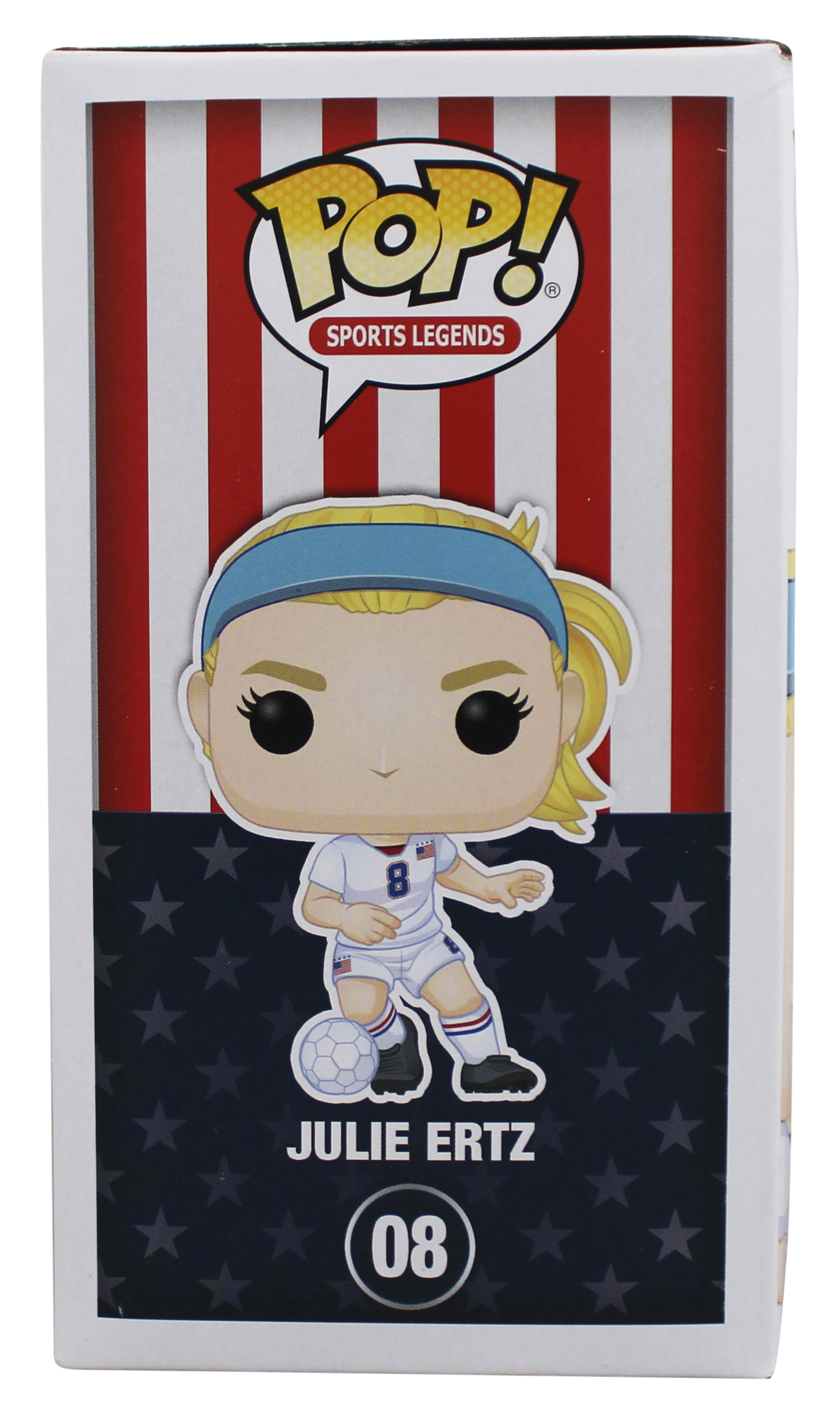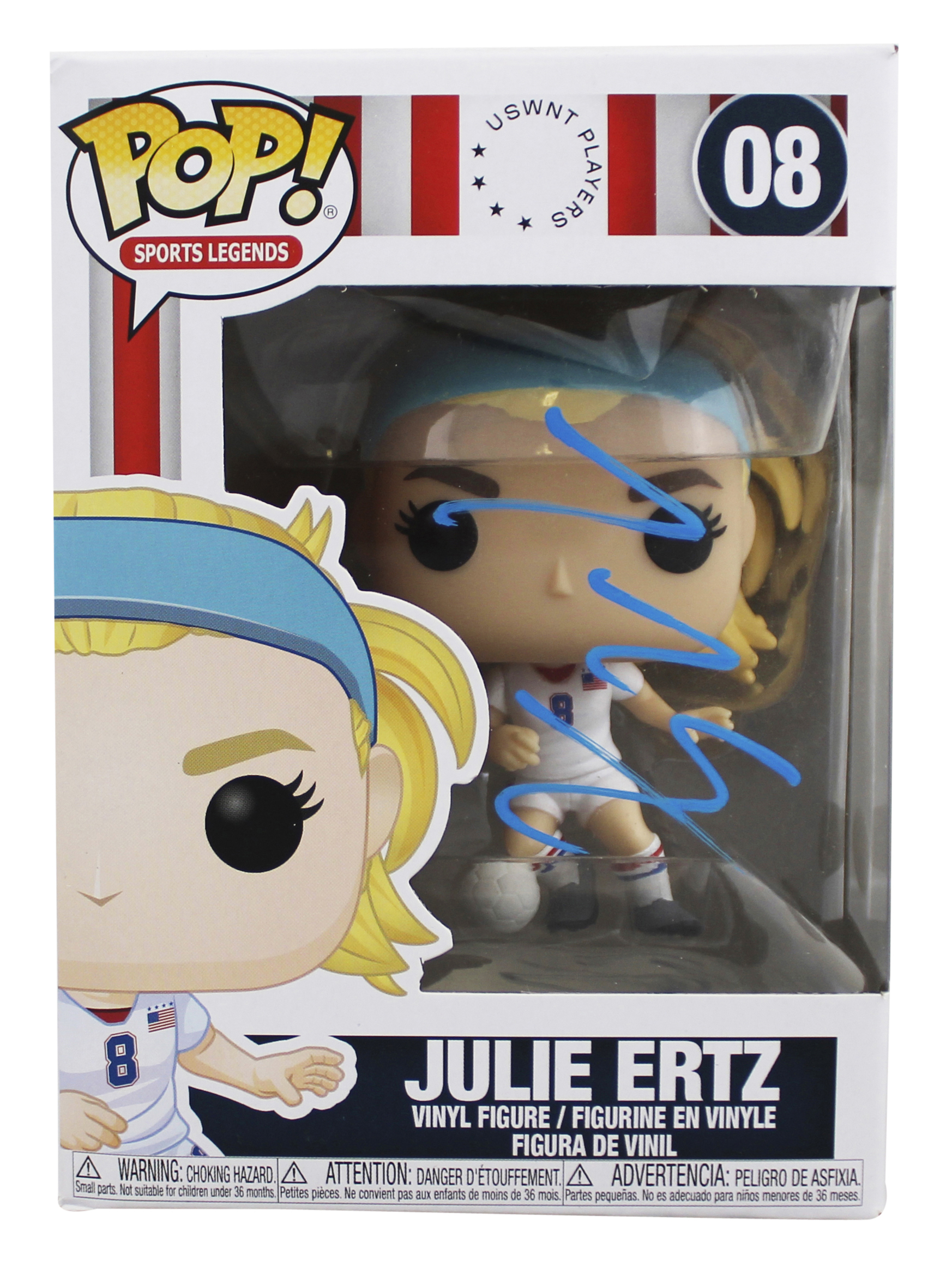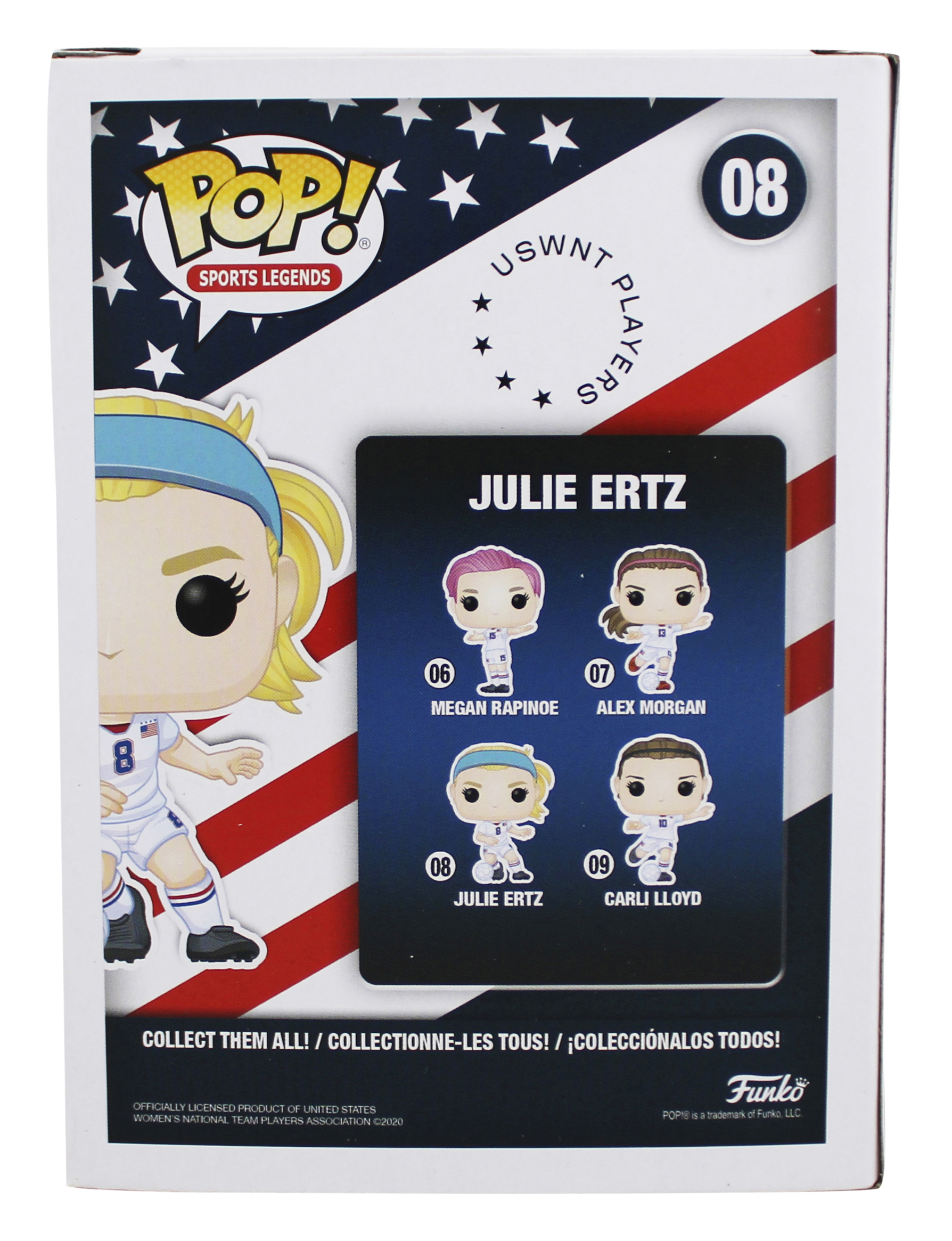 This Autographed Julie Ertz #08 Funko Pop Vinyl Figure has been Personally Signed by Julie Ertz. This item is 100% Authentic to include a Certificate of Authenticity (COA) / hologram by JSA. The authenticity can be verified on JSA website. This item will ship in a Pop! Protector, please refer to the photos for condition of the item prior to purchase. There are a couple dings in the Funko box.