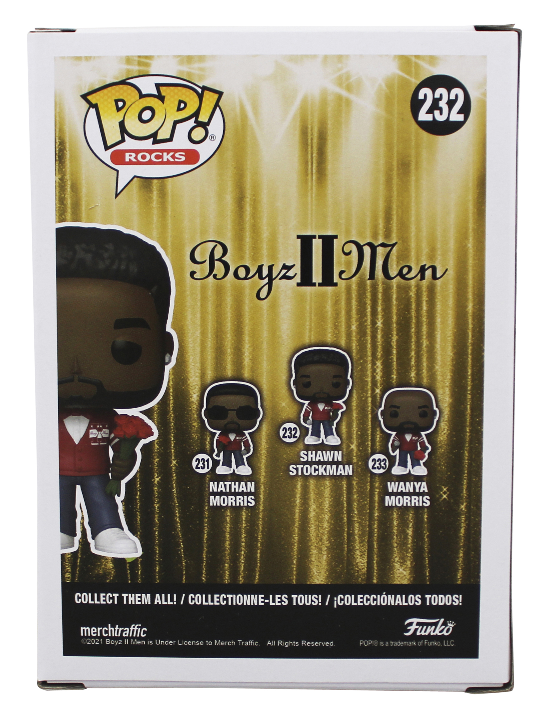 This Autographed Shawn Stockman #232 Funko Pop Vinyl Figure has been Personally Signed by Shawn Stockman of Boyz II Men. This item is 100% Authentic to include a Certificate of Authenticity (COA) / hologram by JSA. The authenticity can be verified on JSA website. This item will ship in a Pop! Protector, please refer to the photos for condition of the item prior to purchase, these are in good condition but would not be considered mint.