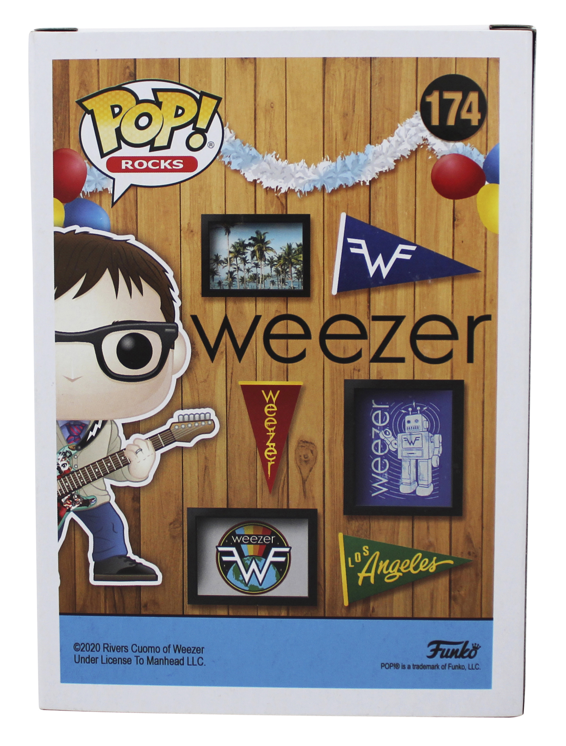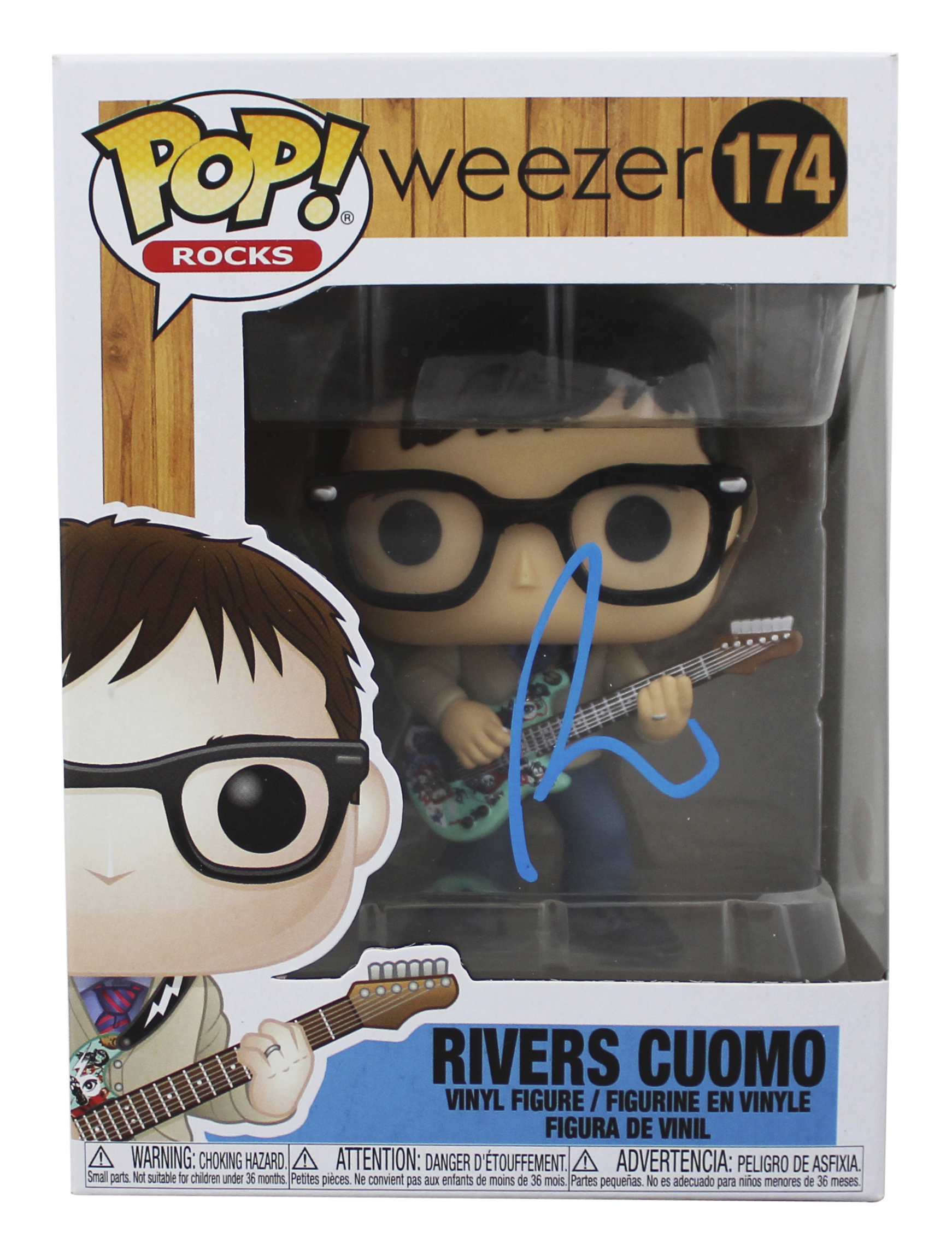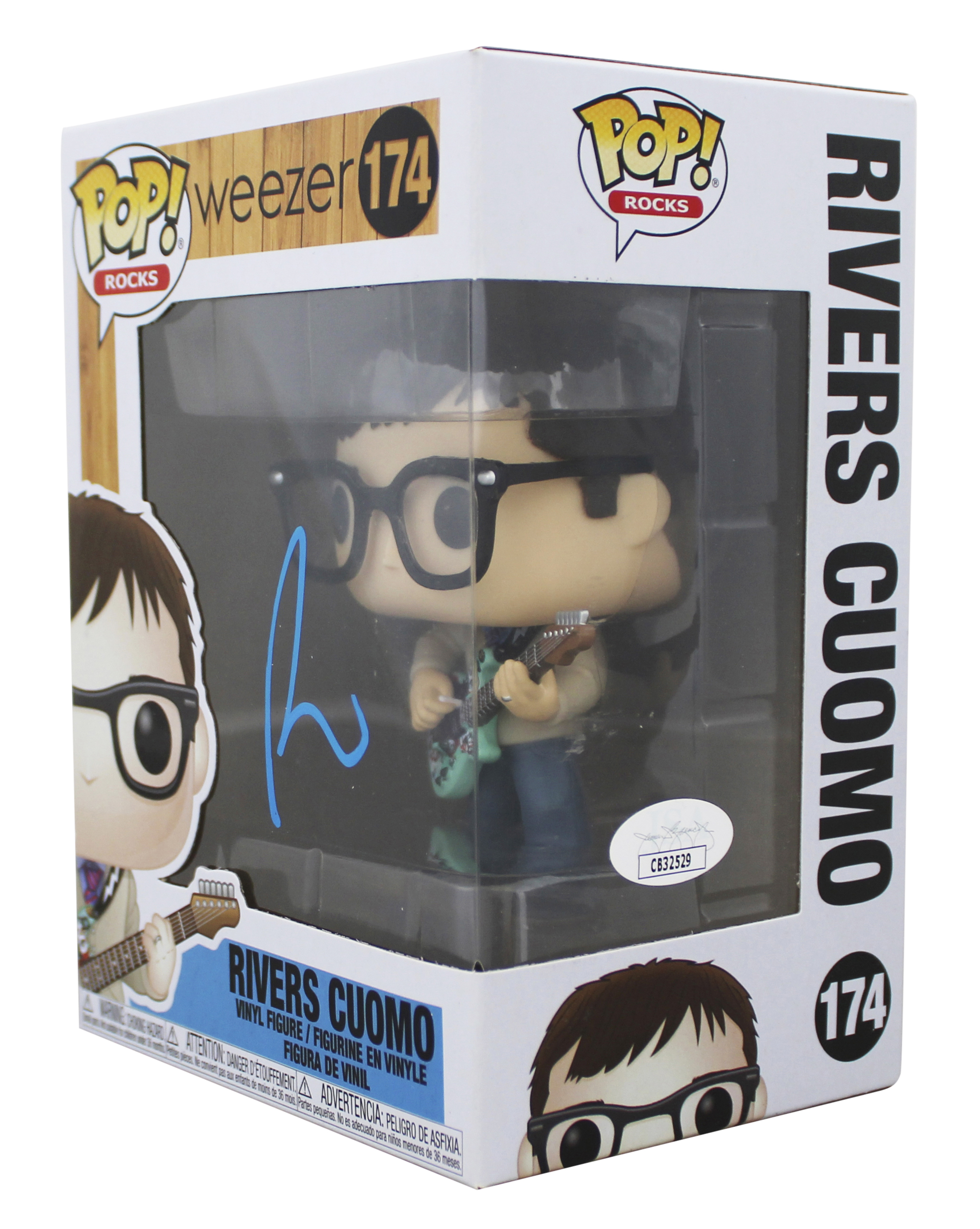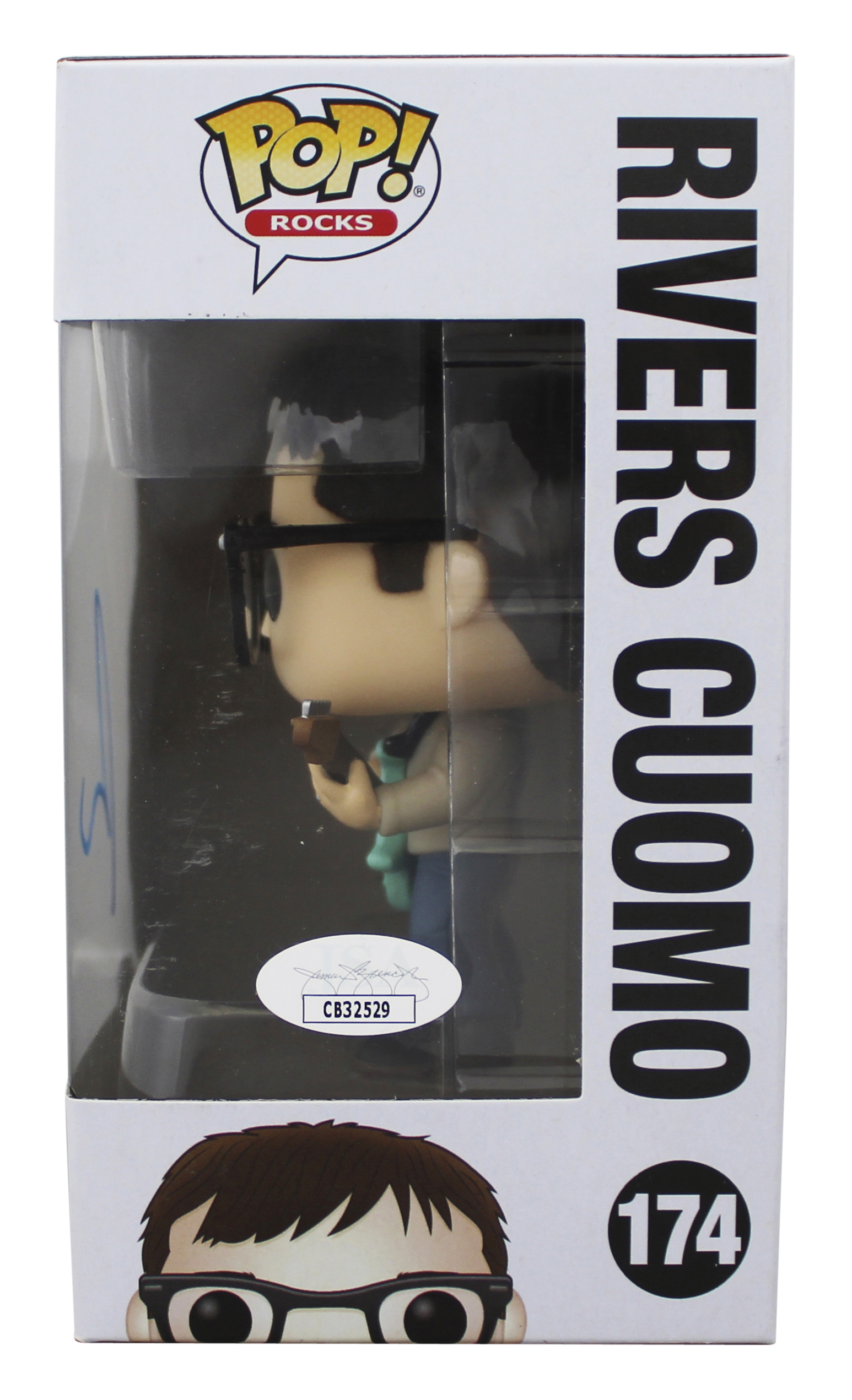 This Autographed Rivers Cuomo #174 Funko Pop Vinyl Figure has been Personally Signed by Rivers Cuomo of Weezer. This item is 100% Authentic to include a Certificate of Authenticity (COA) / hologram by JSA. The authenticity can be verified on JSA website. This item will ship in a Pop! Protector, please refer to the photos for condition of the item prior to purchase, these are in good condition but would not be considered mint.
