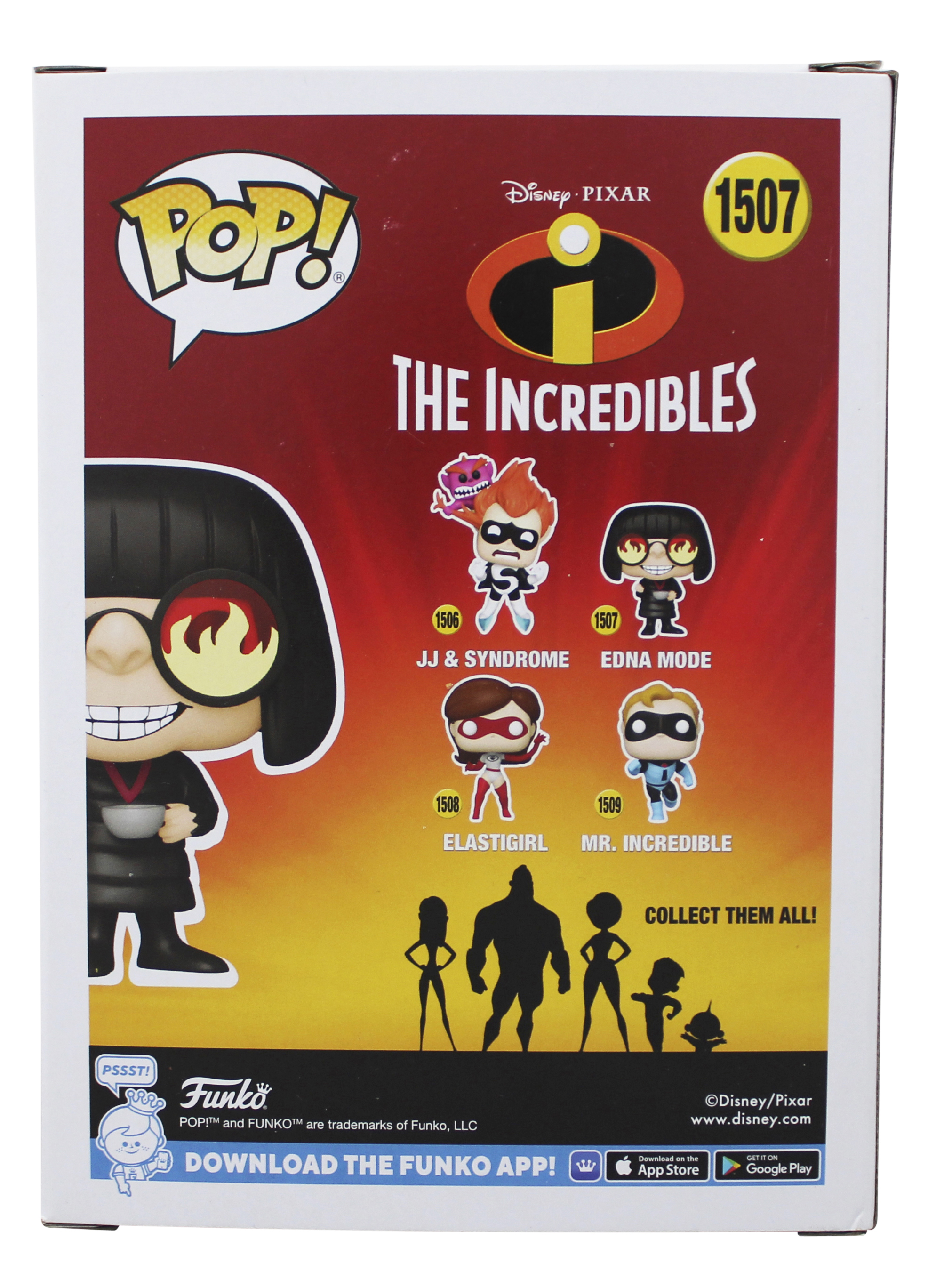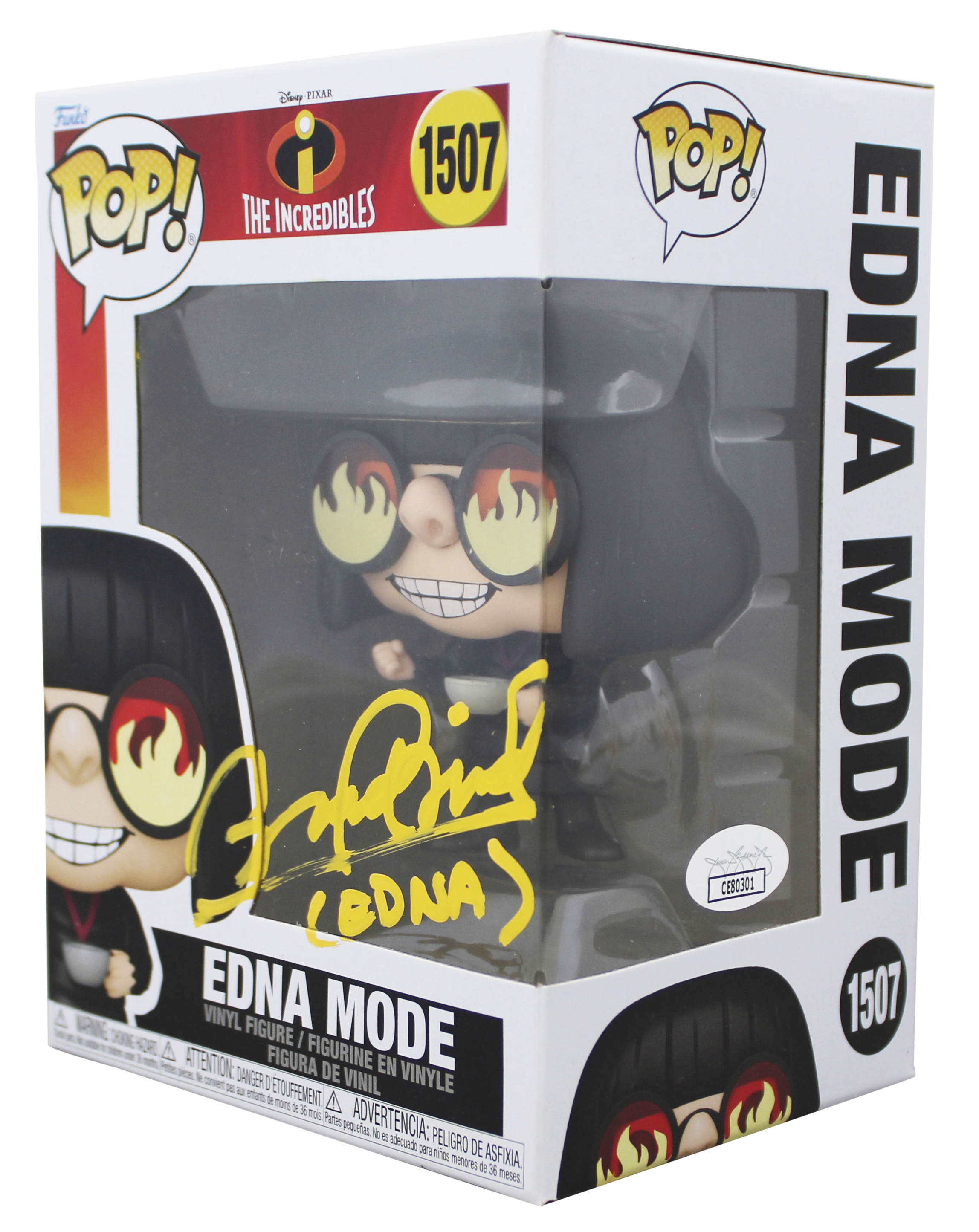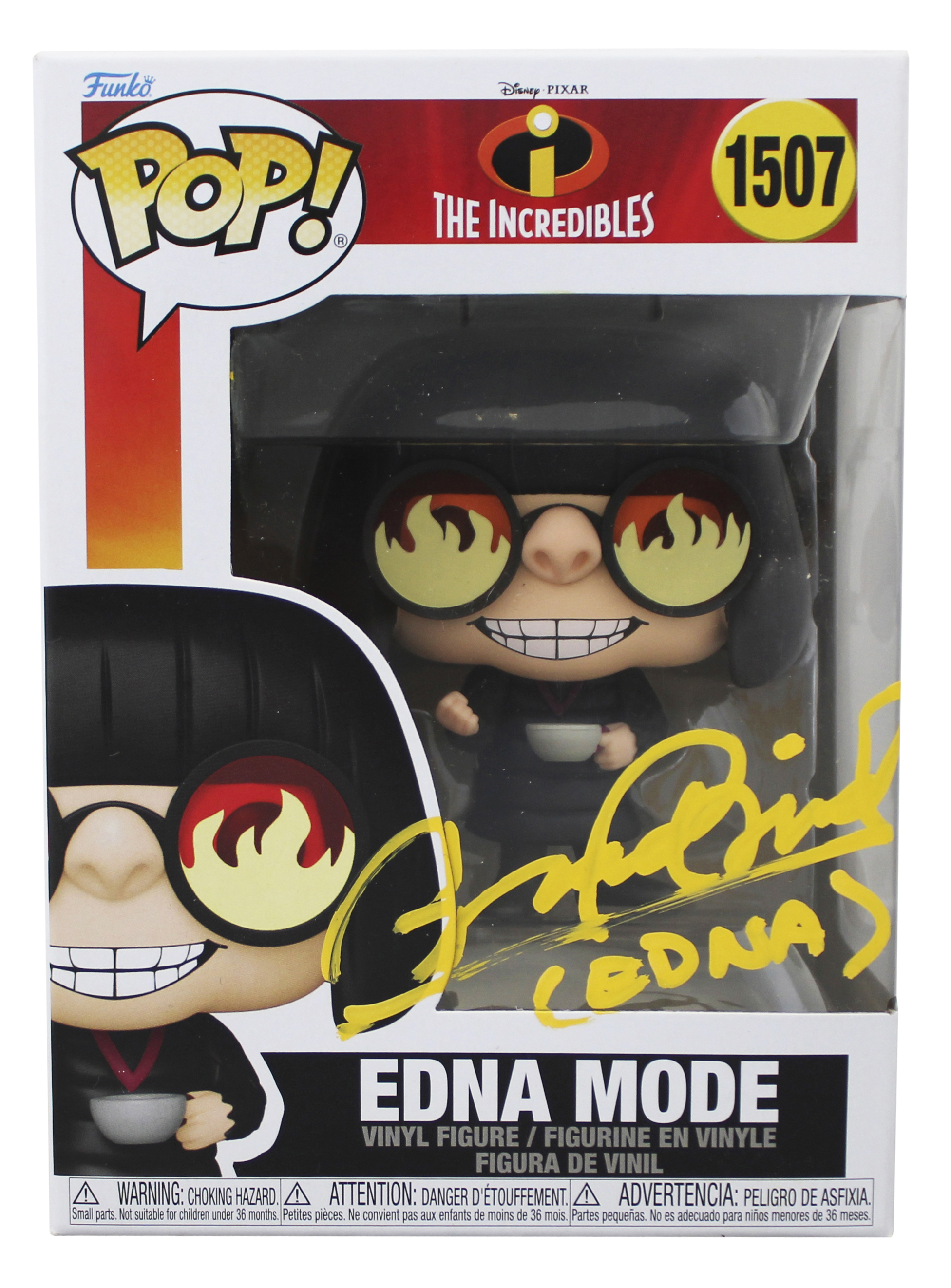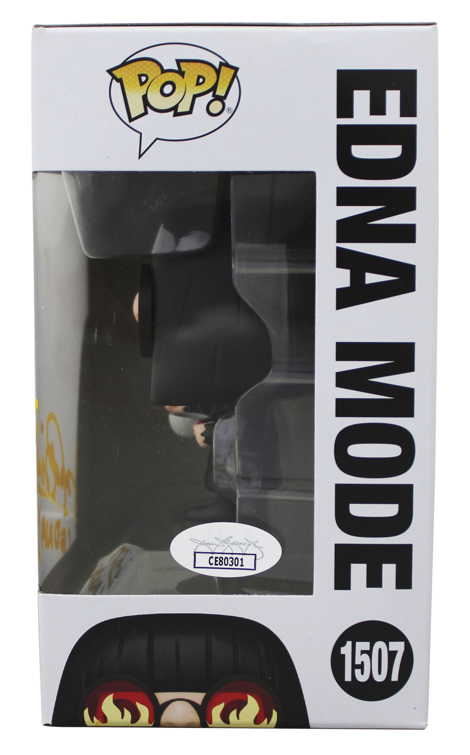 This Autographed Edna Mode #1507 Funko Pop Vinyl Figure with the inscription of "Edna" has been Personally Signed by Brad Bird of The Incredibles. This item is 100% Authentic to include a Certificate of Authenticity (COA) / hologram by JSA. The authenticity can be verified on JSA website. This item will ship in a Pop! Protector, please refer to the photos for condition of the item prior to purchase, these are in good condition but would not be considered mint.