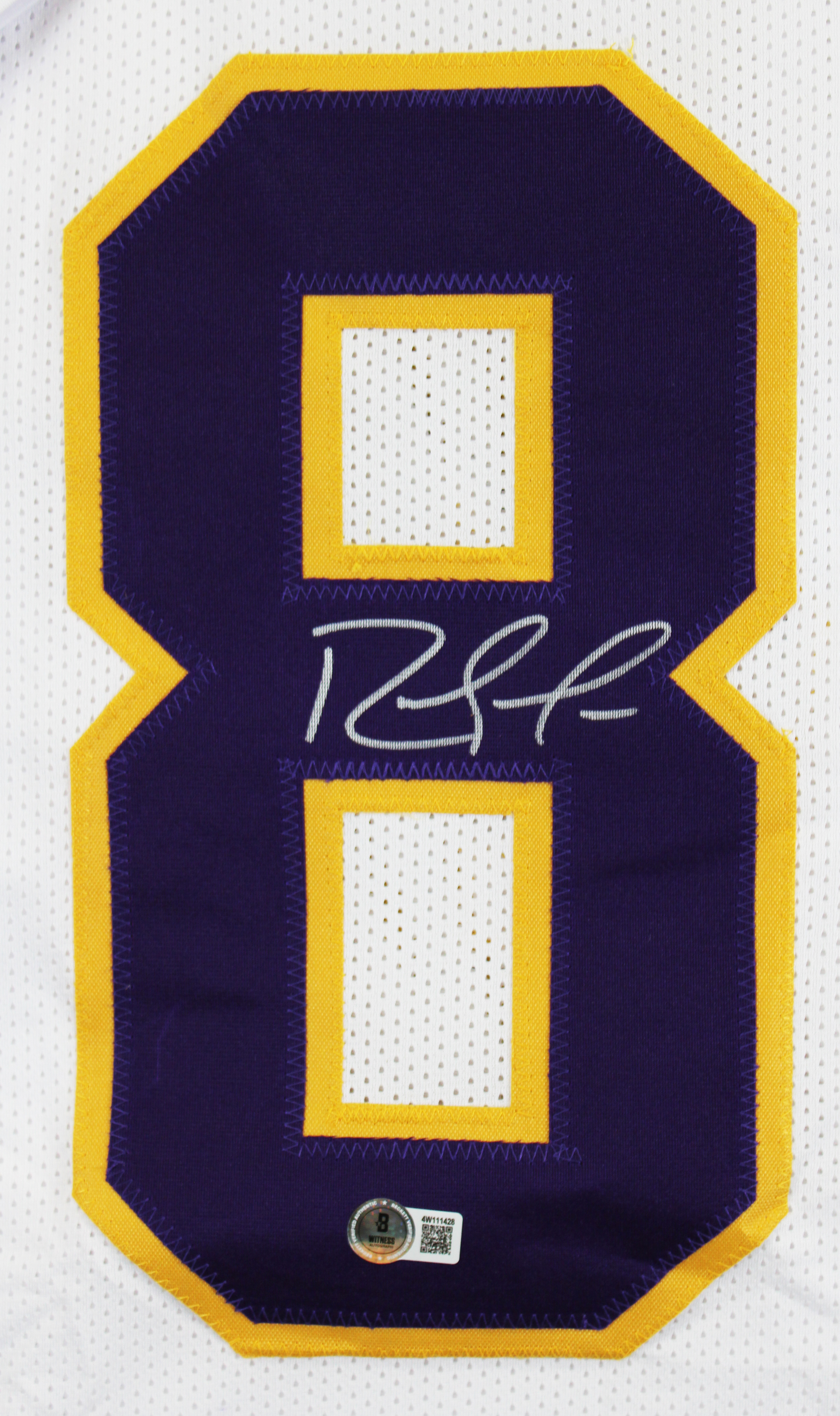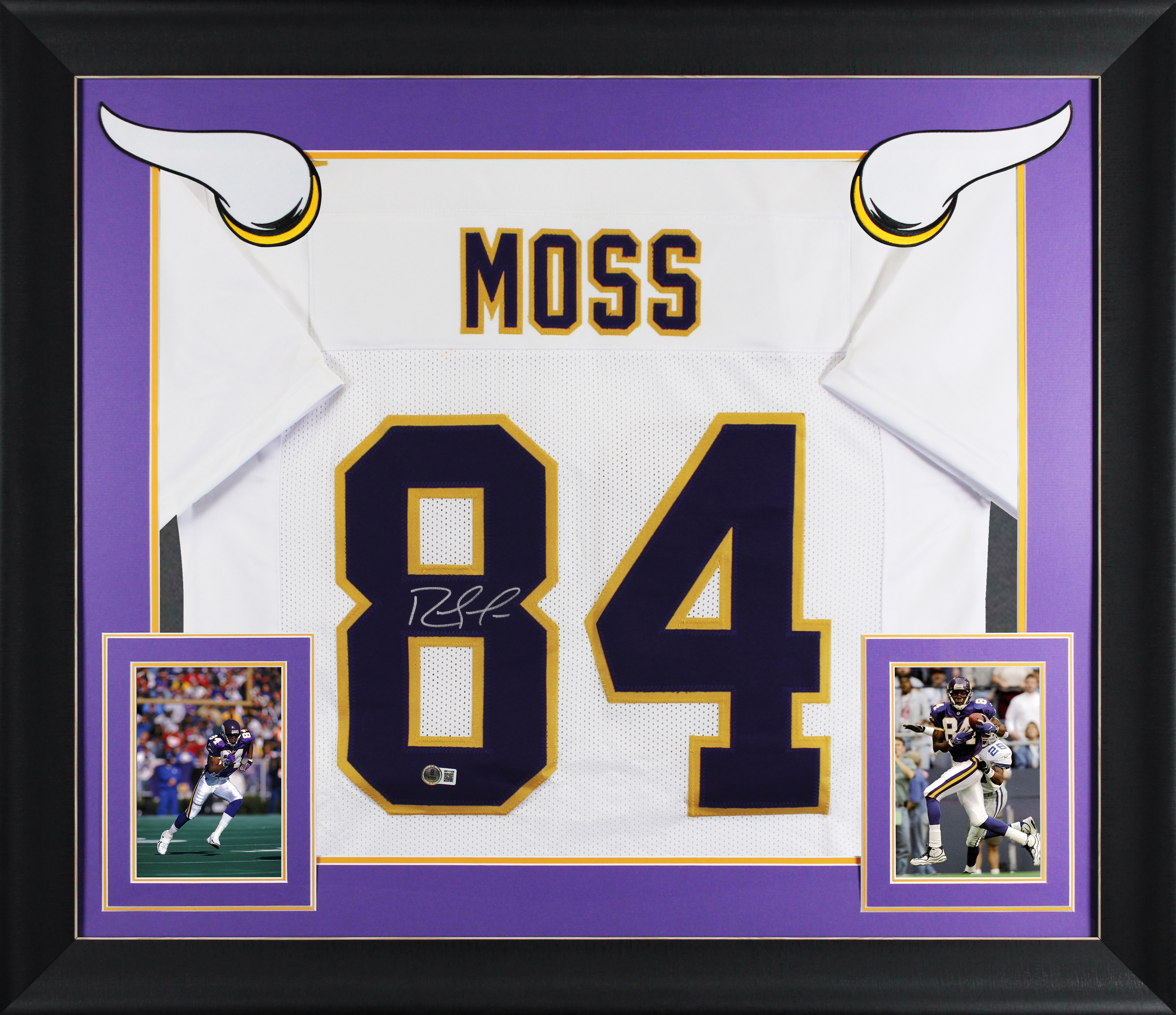 This Autographed White Pro Style Framed Jersey has been Personally Signed by Randy Moss of the Minnesota Vikings. This item is 100% Authentic to include a hologram by Beckett Authentication Services. This item will come with an affixed Beckett Authentication Services (BAS) authentication sticker, which includes a scannable QR code to verify authenticity. Please note that Beckett no longer provides serial-numbered COA cards, and the attached BAS sticker will serve as the complete authentication for this item. This is a BAS Witnessed Protection Program item which means a Beckett Authentication Service representative was present when this item was being signed. We conducted an autograph signing with Randy Moss where multiples of the same item were signed. While the photographs are representative of this item, the size, placement and strength of the signature may vary. Each item is hand signed, therefore, each autograph is unique. This item can be verified through BAS Witnessed. This item has been professionally framed to overall dimensions of approximately 32 x 37 inches. This is a X-Large sized, non-branded, custom-stitched Framed Jersey. This jersey will be framed to order, it will take approximately 4-5 business days from purchase date for it to ship.