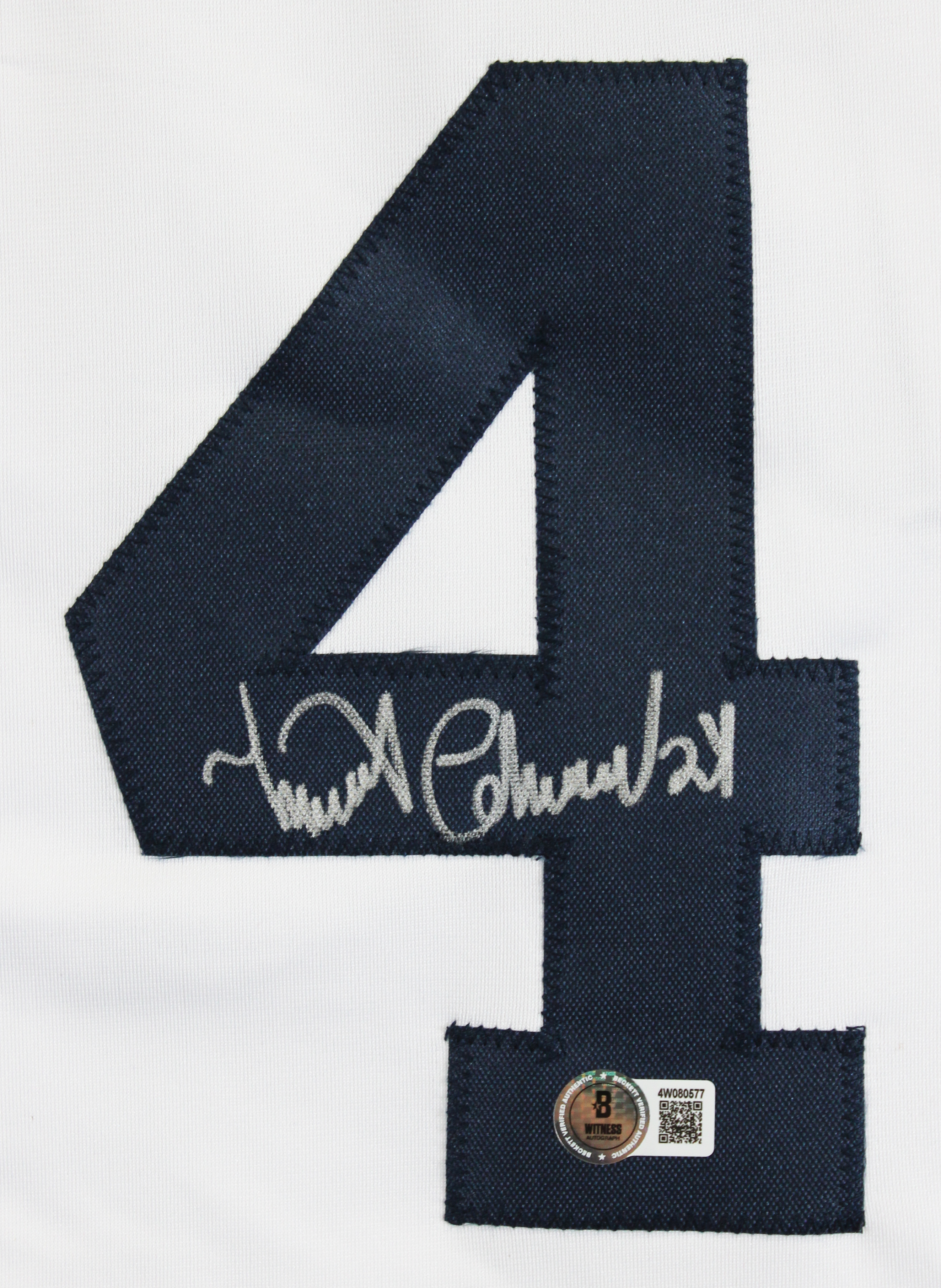 This Autographed White Pro Style Framed Jersey has been Personally Signed by Miguel Cabrera of the Detroit Tigers. This item is 100% Authentic to include a hologram by Beckett Authentication Services. This item will come with an affixed Beckett Authentication Services (BAS) authentication sticker, which includes a scannable QR code to verify authenticity. Please note that Beckett no longer provides serial-numbered COA cards, and the attached BAS sticker will serve as the complete authentication for this item. This is a BAS Witnessed Protection Program item which means a Beckett Authentication Service representative was present when this item was being signed. We conducted an autograph signing with Miguel Cabrera where multiples of the same item were signed. While the photographs are representative of this item, the size, placement and strength of the signature may vary. Each item is hand signed, therefore, each autograph is unique. This item can be verified through BAS Witnessed. This item has been professionally framed to overall dimensions of approximately 32 x 37 inches. This is a X-Large sized, non-branded, custom-stitched Framed Jersey. This jersey will be framed to order, it will take approximately 4-5 business days from purchase date for it to ship.