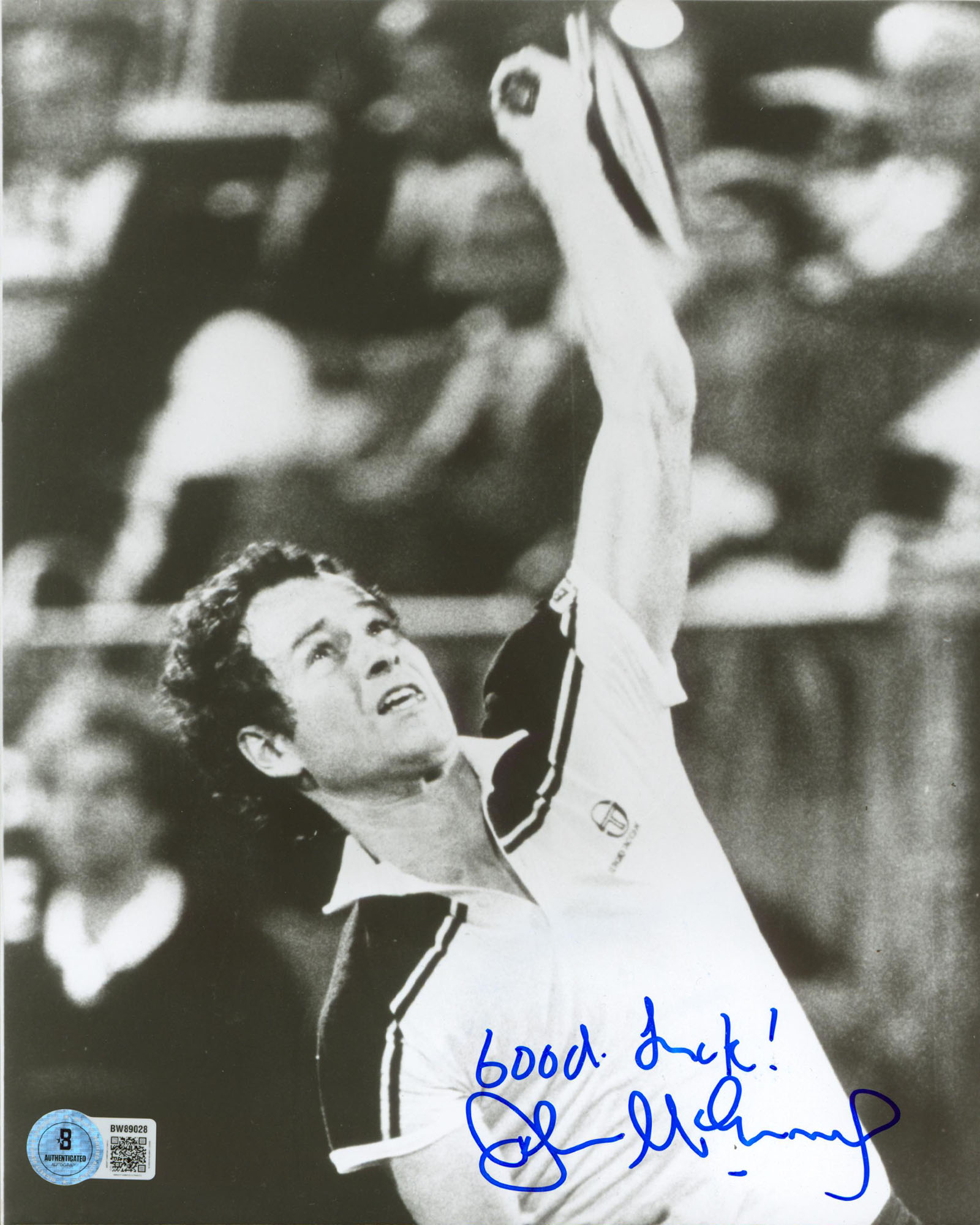 This Autographed Vertical 8x10 Photo with the inscription of "Good Luck" has been Personally Signed by John McEnroe. This item is 100% Authentic to include a hologram by Beckett Authentication Services. This item will come with an affixed Beckett Authentication Services (BAS) authentication sticker, which includes a scannable QR code to verify authenticity. Please note that Beckett no longer provides serial-numbered COA cards, and the attached BAS sticker will serve as the complete authentication for this item. The authenticity can be verified on Beckett Authentication Services website.
