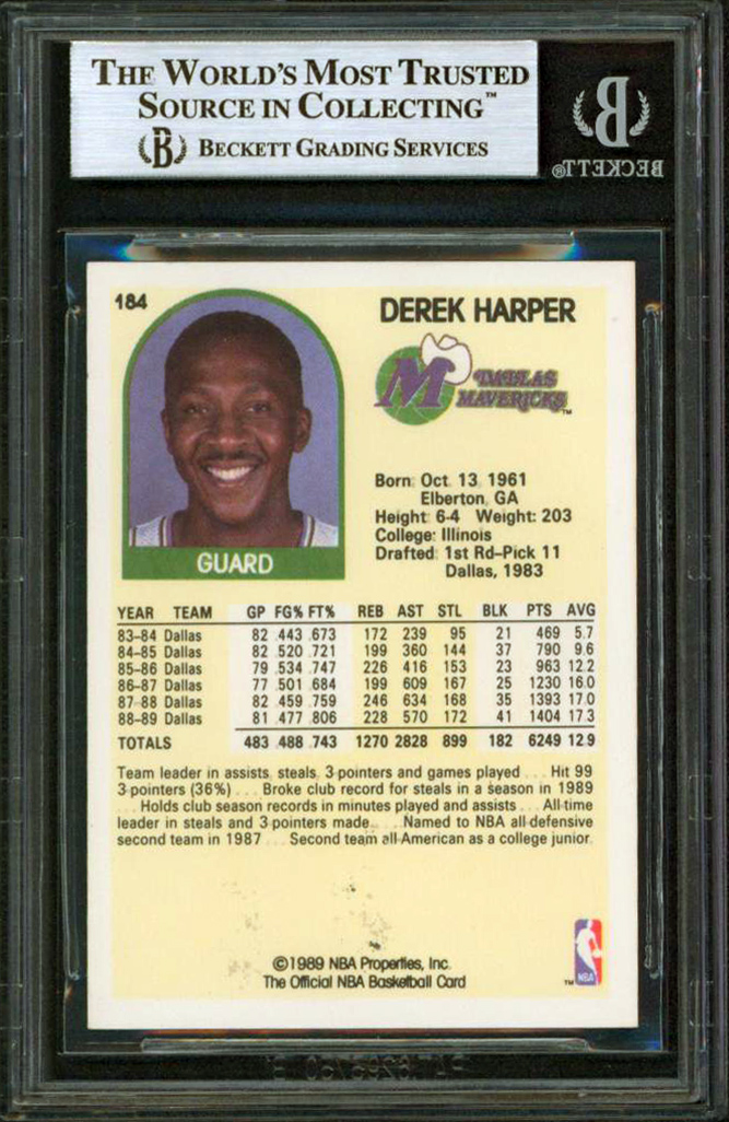 This Autographed 1989 Hoops #184 Card has been Personally Signed by Derek Harper of the Dallas Mavericks. This item is 100% Authentic, it comes slabbed and authenticated by Beckett Authentication Services. The authenticity can be verified on Beckett Authentication Services website.