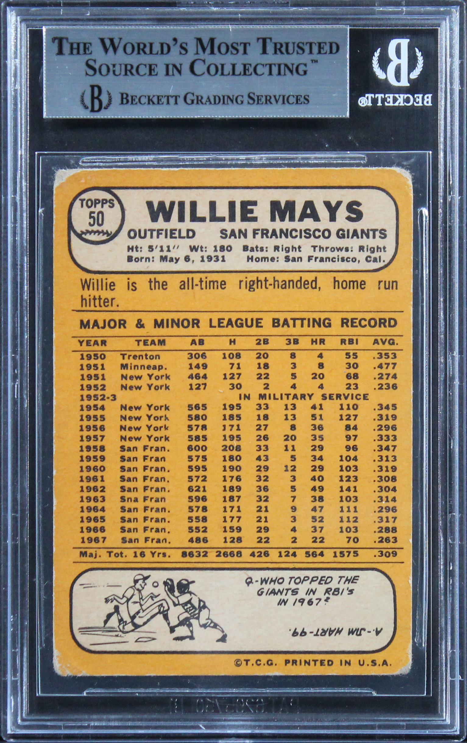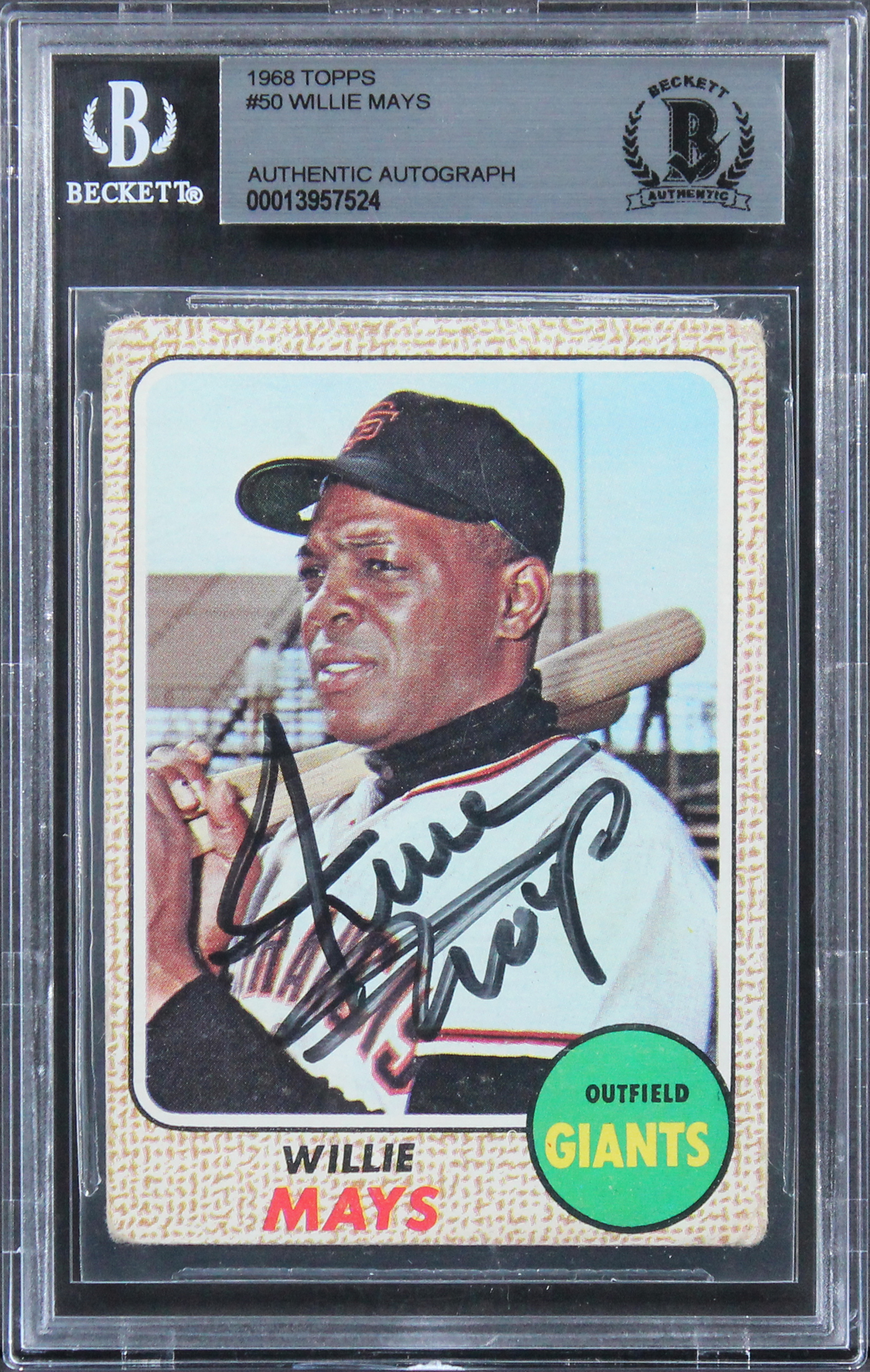Giants Willie Mays Authentic Signed 1968 Topps #50 Card Autographed BAS Slabbed