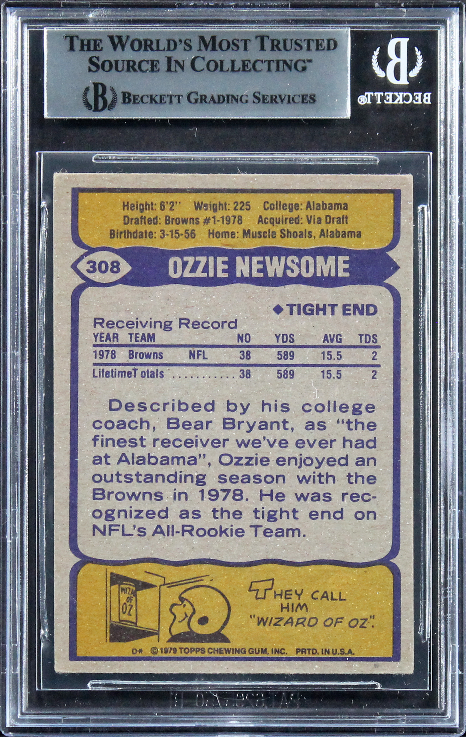 This Autographed 1979 Topps #308 Card has been Personally Signed by Ozzie Newsome of the Cleveland Browns. This item is 100% Authentic, it comes slabbed and authenticated by Beckett Authentication Services. The authenticity can be verified on Beckett Authentication Services website.