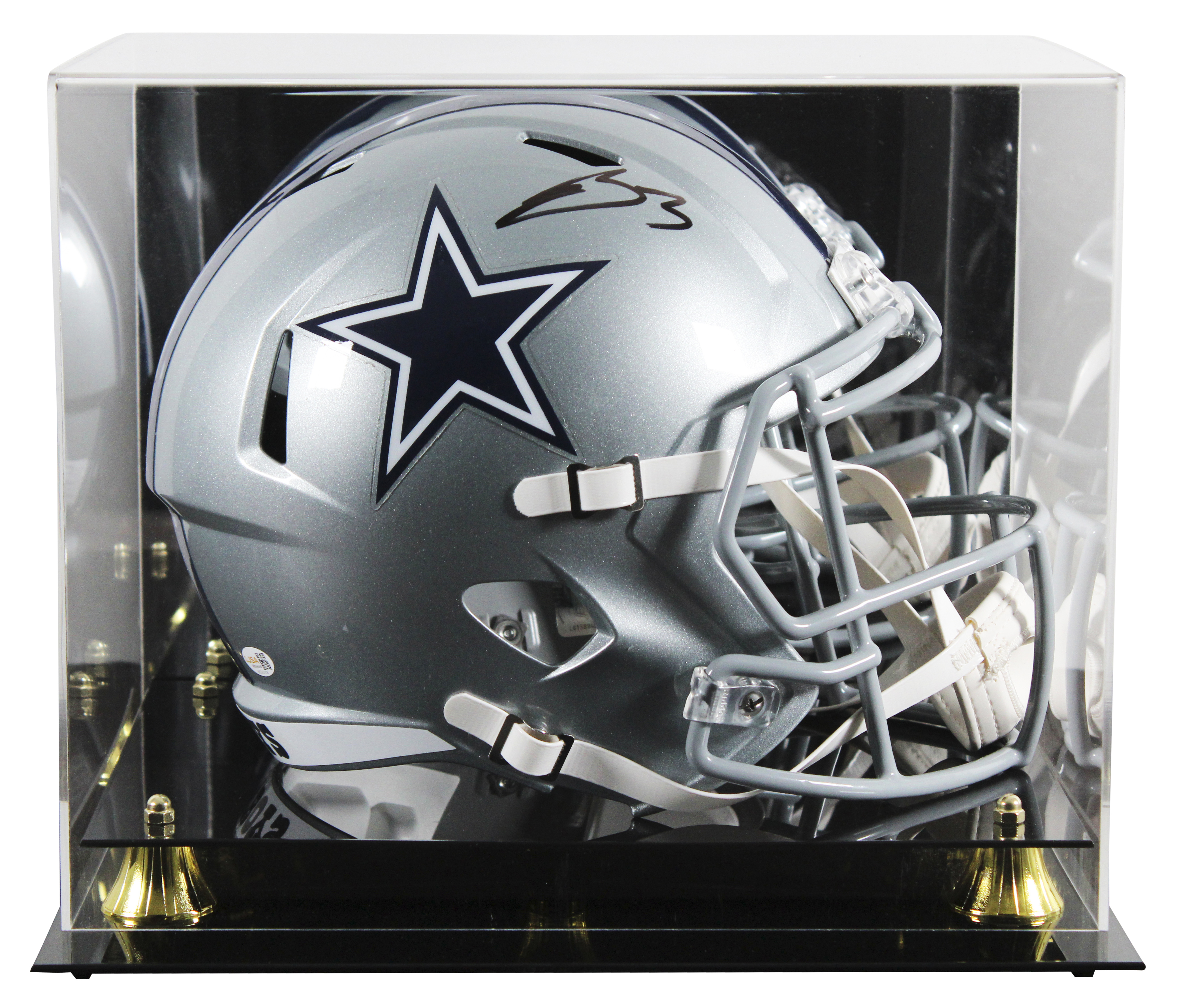 This Autographed Riddell Full Size Speed Rep Helmet W/ Uv Mirrored Back Acrylic Display Case has been Personally Signed by George Pickens of the Dallas Cowboys. This item is 100% Authentic to include a hologram by James Spence Authentication Services. This item will come with an affixed James Spence Authentication Services (JSA) authentication sticker, which includes a scannable QR code to verify authenticity. Please note that JSA no longer provides serial-numbered COA cards with witnessed items, and the attached JSA sticker will serve as the complete authentication for this item. This is a JSA Witnessed Protection Program item which means a JSA representative was present when this item was being signed. We conducted an autograph signing with George Pickens where multiples of the same item were signed. While the photographs are representative of this item, the size, placement and strength of the signature may vary. Each item is hand signed, therefore, each autograph is unique. This item can be verified through JSA Witness.