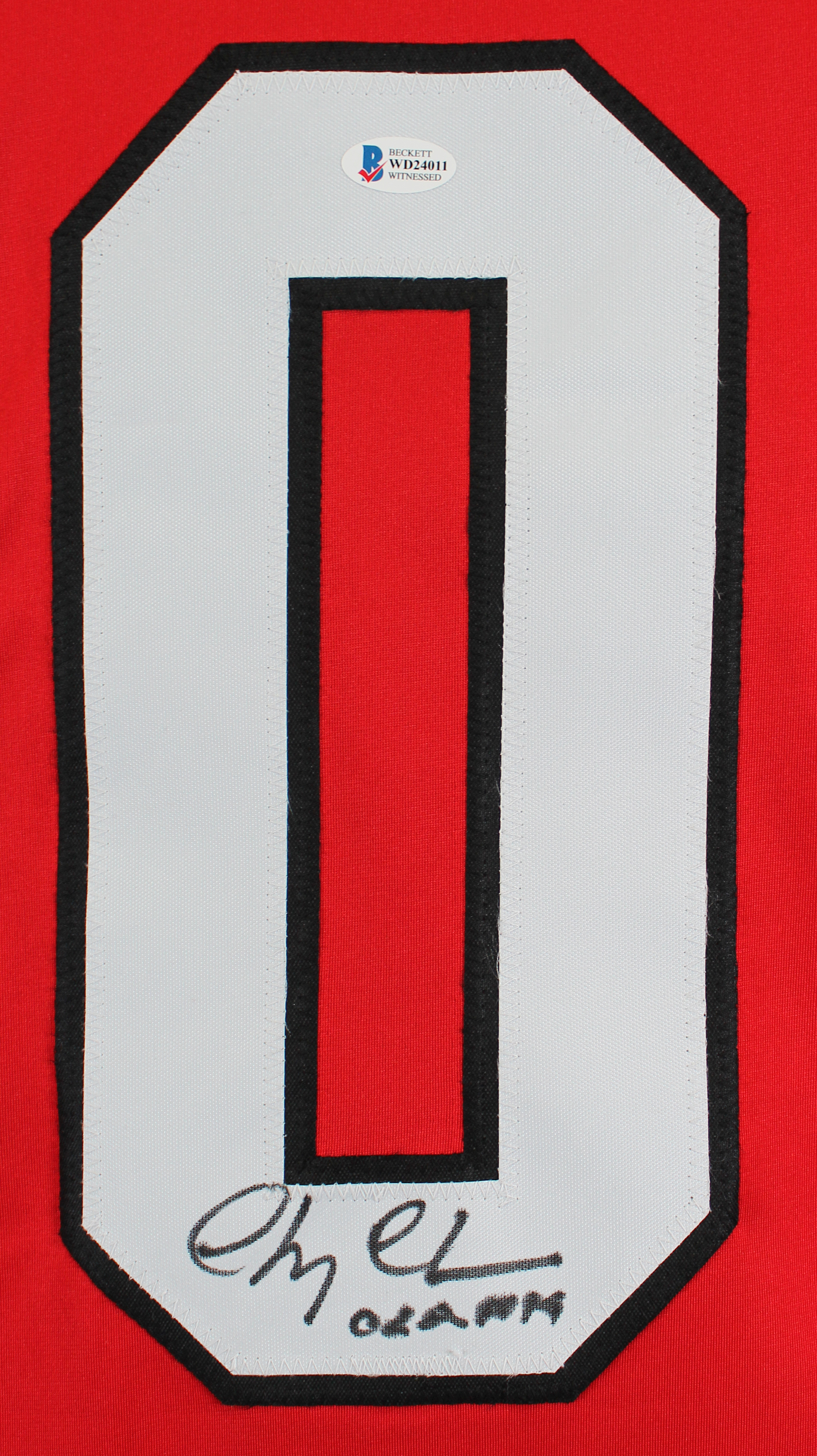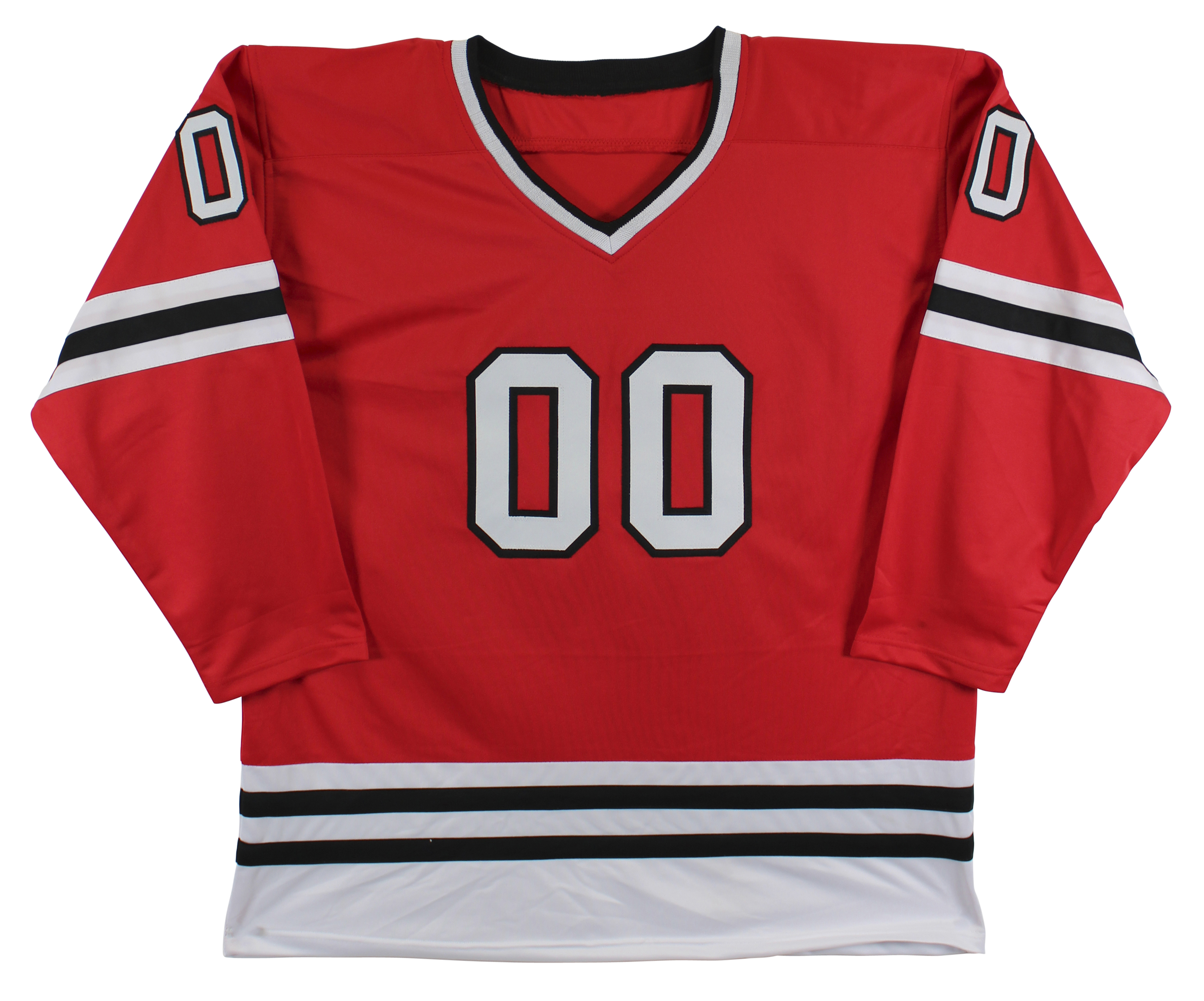 This Autographed Red Hockey Jersey with the inscription of "Clark" has been Personally Signed by Chevy Chase of National Lampoon's Christmas Vacation. This item is 100% Authentic to include a Certificate of Authenticity (COA) / hologram by Beckett Authentication Services. This is a BAS Witnessed Protection Program item which means a Beckett Authentication Service representative was present when this item was being signed. The authenticity can be verified on Beckett Authentication Services website. This is a X-Large sized, non-branded, custom-stitched Jersey.
