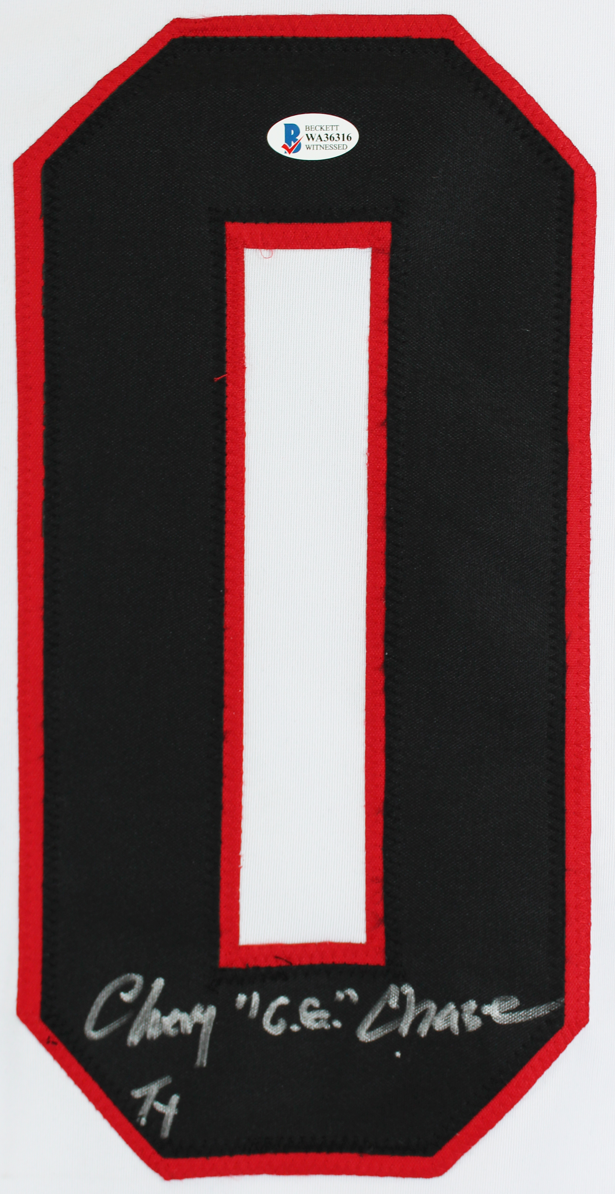 This Autographed Santa Clark Jersey with the inscription of ""C.G." Ty" has been Personally Signed by Chevy Chase of National Lampoon's Christmas Vacation. This item is 100% Authentic to include a Certificate of Authenticity (COA) / hologram by Beckett Authentication Services. This is a BAS Witnessed Protection Program item which means a Beckett Authentication Service representative was present when this item was being signed. The authenticity can be verified on Beckett Authentication Services website. This is a X-Large sized, non-branded, custom-stitched Jersey.