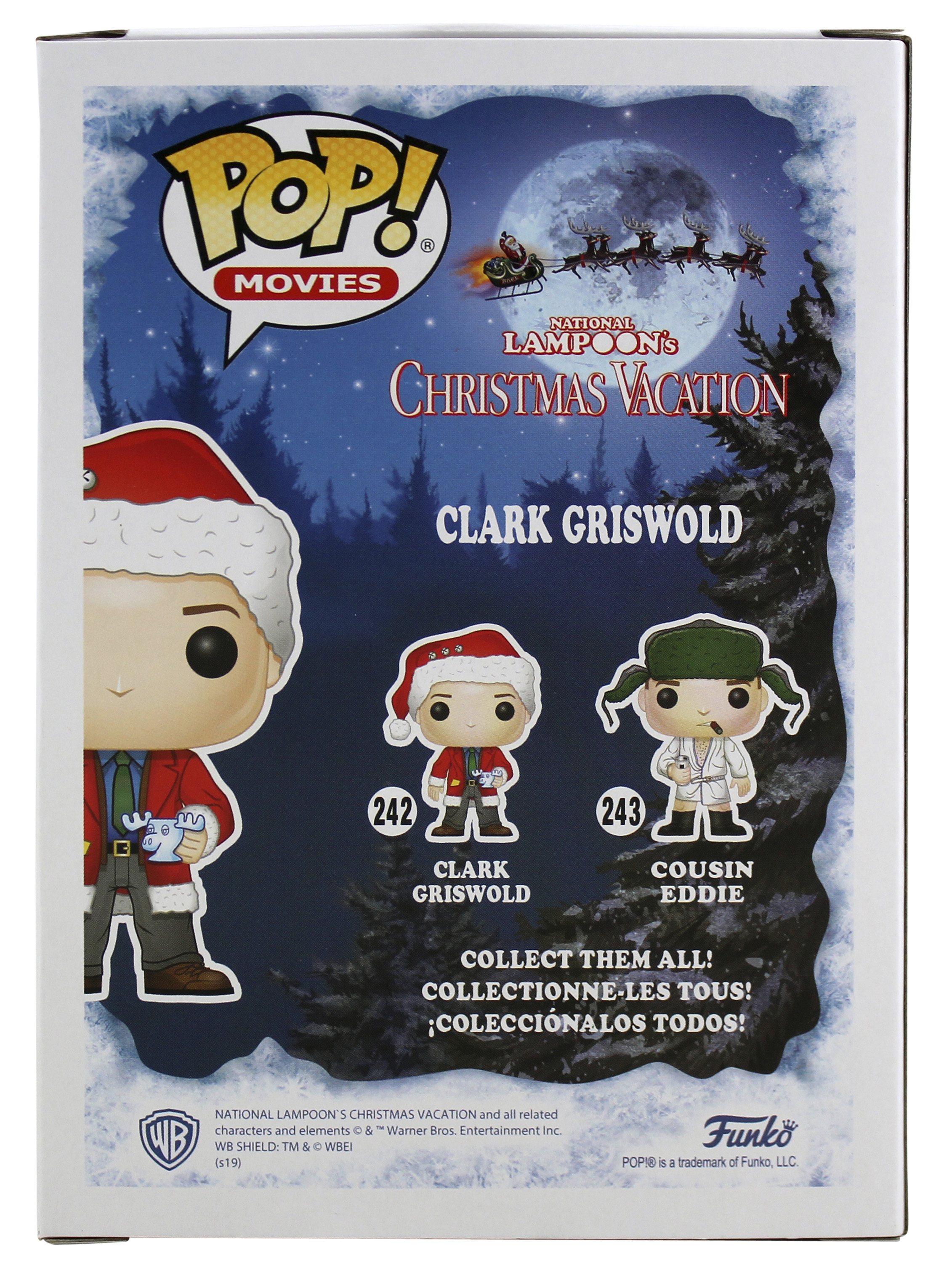 This Autographed w/ White Signature Clark Griswold #242 Funko Pop Vinyl Figure has been Personally Signed by Chevy Chase of National Lampoon's Christmas Vacation. This item is 100% Authentic to include a hologram by Beckett Authentication Services. This item may come with the new Beckett Authentication hologram that has a scannable QR code rather than the traditional COA. If you would like to have a COA, you are welcome to reach out to Beckett for a printed certification once you receive your item. This is a BAS Witnessed Protection Program item which means a Beckett Authentication Service representative was present when this item was being signed. We conducted an autograph signing with Chevy Chase where multiples of the same item were signed. While the photographs are representative of this item, the size, placement and strength of the signature may vary. Each item is hand signed, therefore, each autograph is unique. This item can be verified through BAS. This item will ship in a Pop! Protector, please refer to the photos for condition of the item or reach out to us prior to purchase. All of the Pop Boxes will have dings, creases or scratches. They are in good condition but would be considered far from mint.