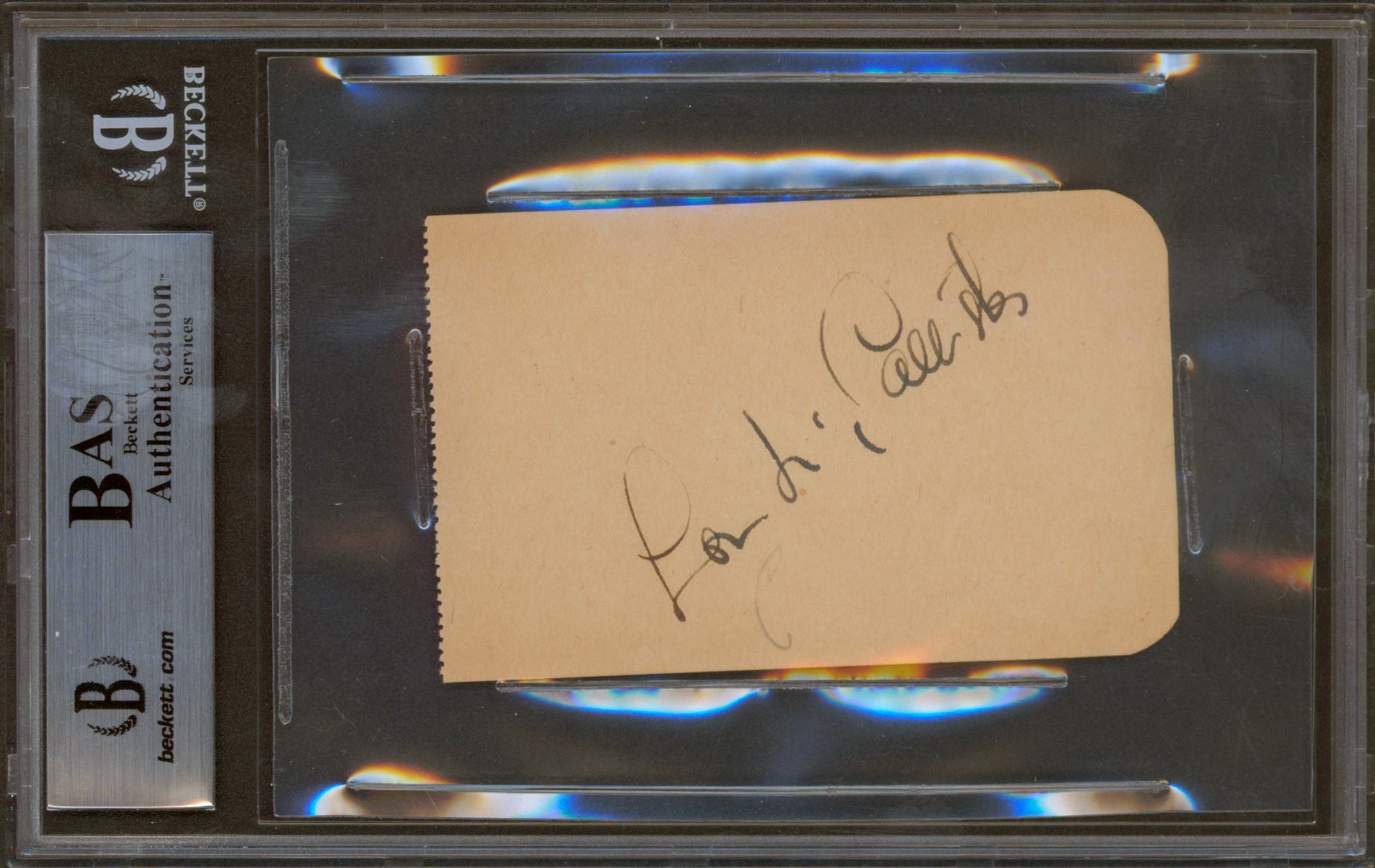 This Autographed 2.4x3.85 Album Page has been Personally Signed by Janis Paige of Silk Stockings. This item is 100% Authentic, it comes slabbed and authenticated by Beckett Authentication Services. The authenticity can be verified on Beckett Authentication Services website.