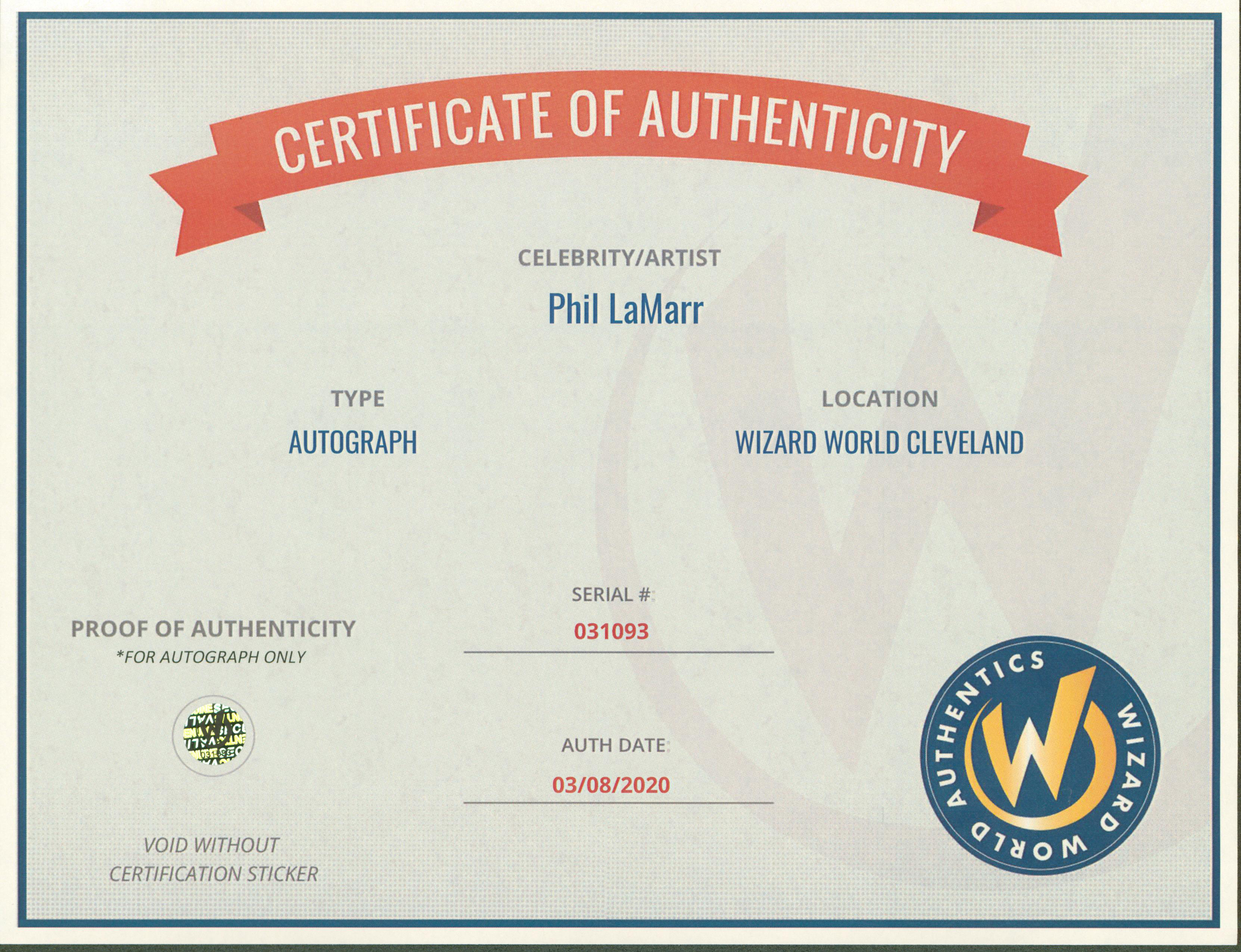 This Autographed 8x10 Photo has been Personally Signed by Phil LaMarr of Samurai Jack. This item is 100% Authentic to include a Certificate of Authenticity (COA) / hologram by Wizard World Authentics. A Wizard World Authentics representative was present when this item was being signed, the date of the signing is notated on the COA. We have multiples of this same item. While the photographs are representative of this item, the size, placement and strength of the signature may vary. Each item is hand signed, therefore, each autograph is unique.