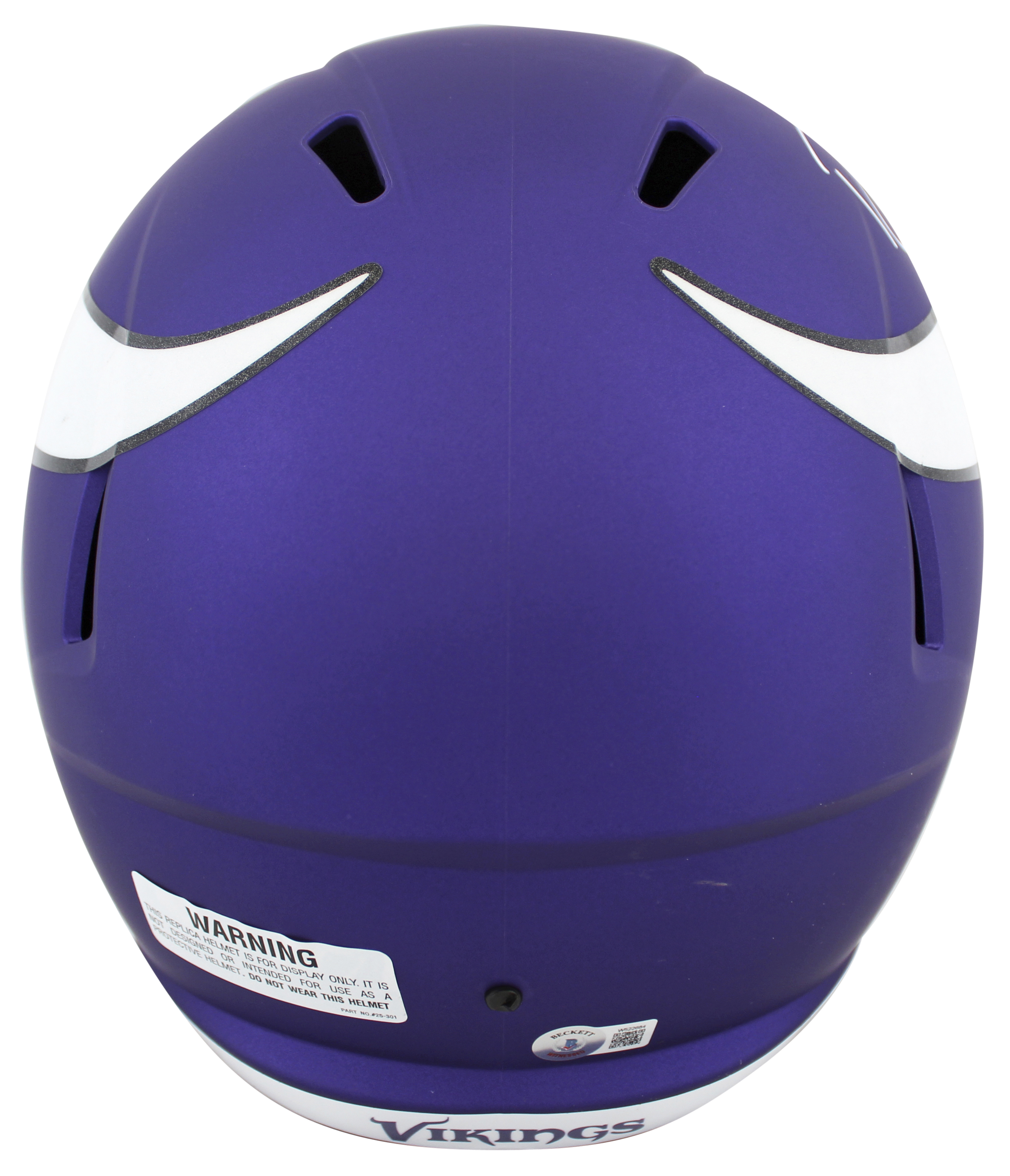 This Autographed Full Size Speed Rep Helmet has been Personally Signed by Randy Moss of the Minnesota Vikings. This item is 100% Authentic to include a hologram by Beckett Authentication Services. This item will come with an affixed Beckett Authentication Services (BAS) authentication sticker, which includes a scannable QR code to verify authenticity. Please note that Beckett no longer provides serial-numbered COA cards, and the attached BAS sticker will serve as the complete authentication for this item. This is a BAS Witnessed Protection Program item which means a Beckett Authentication Service representative was present when this item was being signed. We conducted an autograph signing with Randy Moss where multiples of the same item were signed. While the photographs are representative of this item, the size, placement and strength of the signature may vary. Each item is hand signed, therefore, each autograph is unique. This item can be verified through BAS Witnessed.