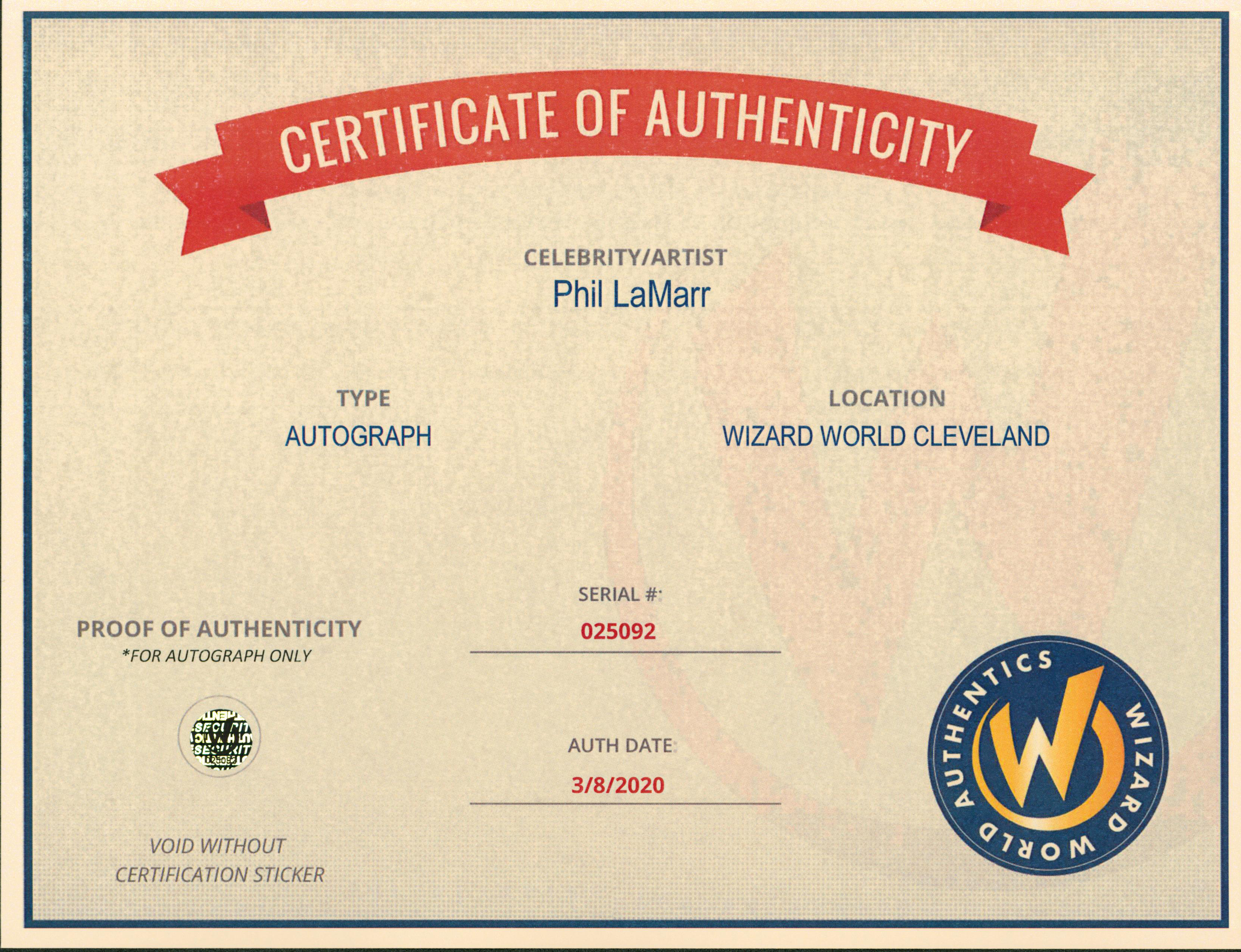 This Autographed 8x10 Photo has been Personally Signed by Phil LaMarr of Samurai Jack. This item is 100% Authentic to include a Certificate of Authenticity (COA) / hologram by Wizard World Authentics. A Wizard World Authentics representative was present when this item was being signed, the date of the signing is notated on the COA. We have multiples of this same item. While the photographs are representative of this item, the size, placement and strength of the signature may vary. Each item is hand signed, therefore, each autograph is unique.
