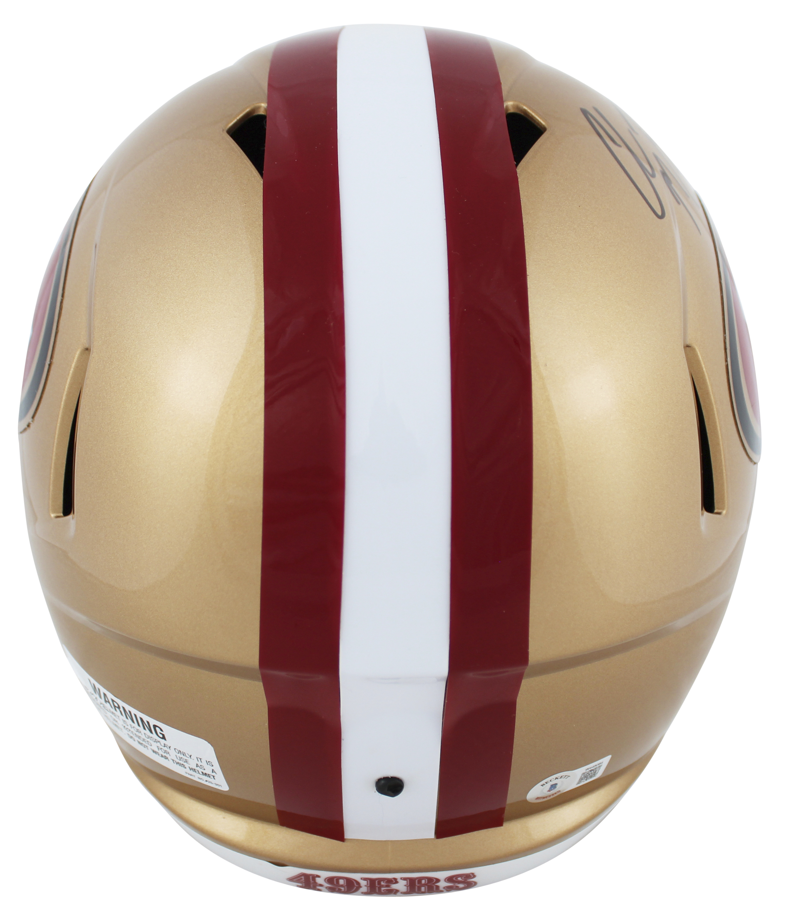 This Autographed Full Size Speed Rep Helmet has been Personally Signed by Christian McCaffrey of the San Francisco 49ers. This item is 100% Authentic to include a hologram by Beckett Authentication Services. This item will come with an affixed Beckett Authentication Services (BAS) authentication sticker, which includes a scannable QR code to verify authenticity. Please note that Beckett no longer provides serial-numbered COA cards, and the attached BAS sticker will serve as the complete authentication for this item. This is a BAS Witnessed Protection Program item which means a Beckett Authentication Service representative was present when this item was being signed. We conducted an autograph signing with Christian McCaffrey where multiples of the same item were signed. While the photographs are representative of this item, the size, placement and strength of the signature may vary. Each item is hand signed, therefore, each autograph is unique. This item can be verified through BAS Witnessed.