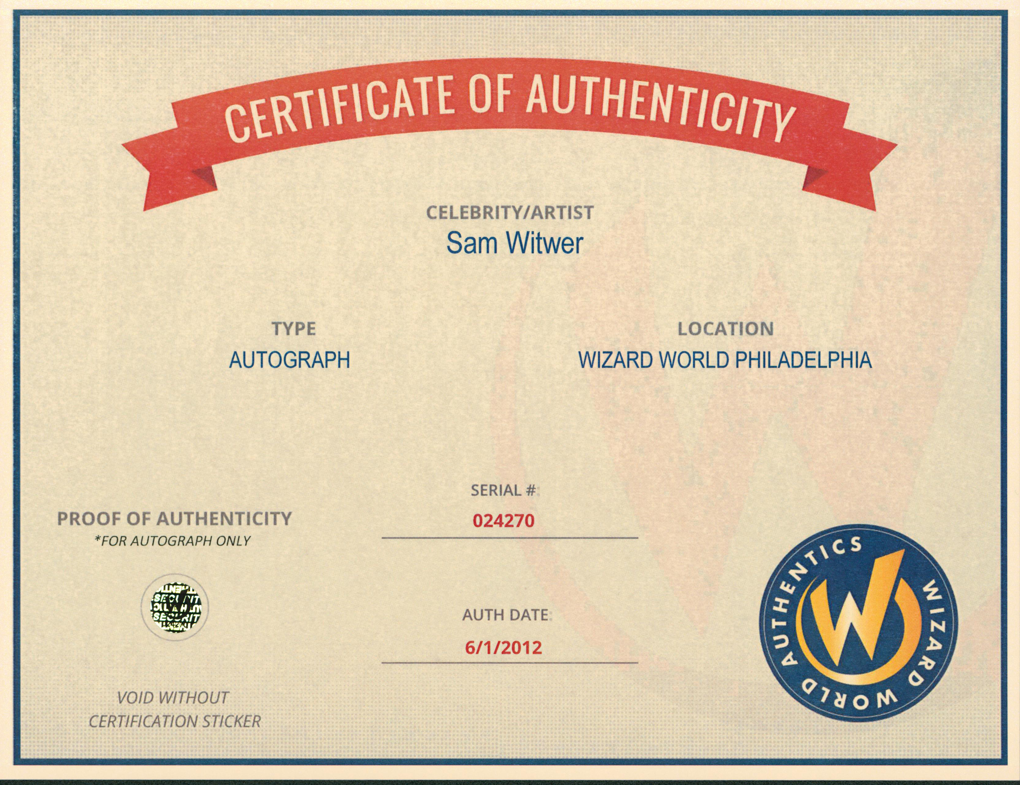 This Autographed 8x10 Photo has been Personally Signed by Sam Witwer of Battlestar Galactica. This item is 100% Authentic to include a Certificate of Authenticity (COA) / hologram by Wizard World Authentics. A Wizard World Authentics representative was present when this item was being signed, the date of the signing is notated on the COA. We have multiples of this same item. While the photographs are representative of this item, the size, placement and strength of the signature may vary. Each item is hand signed, therefore, each autograph is unique.