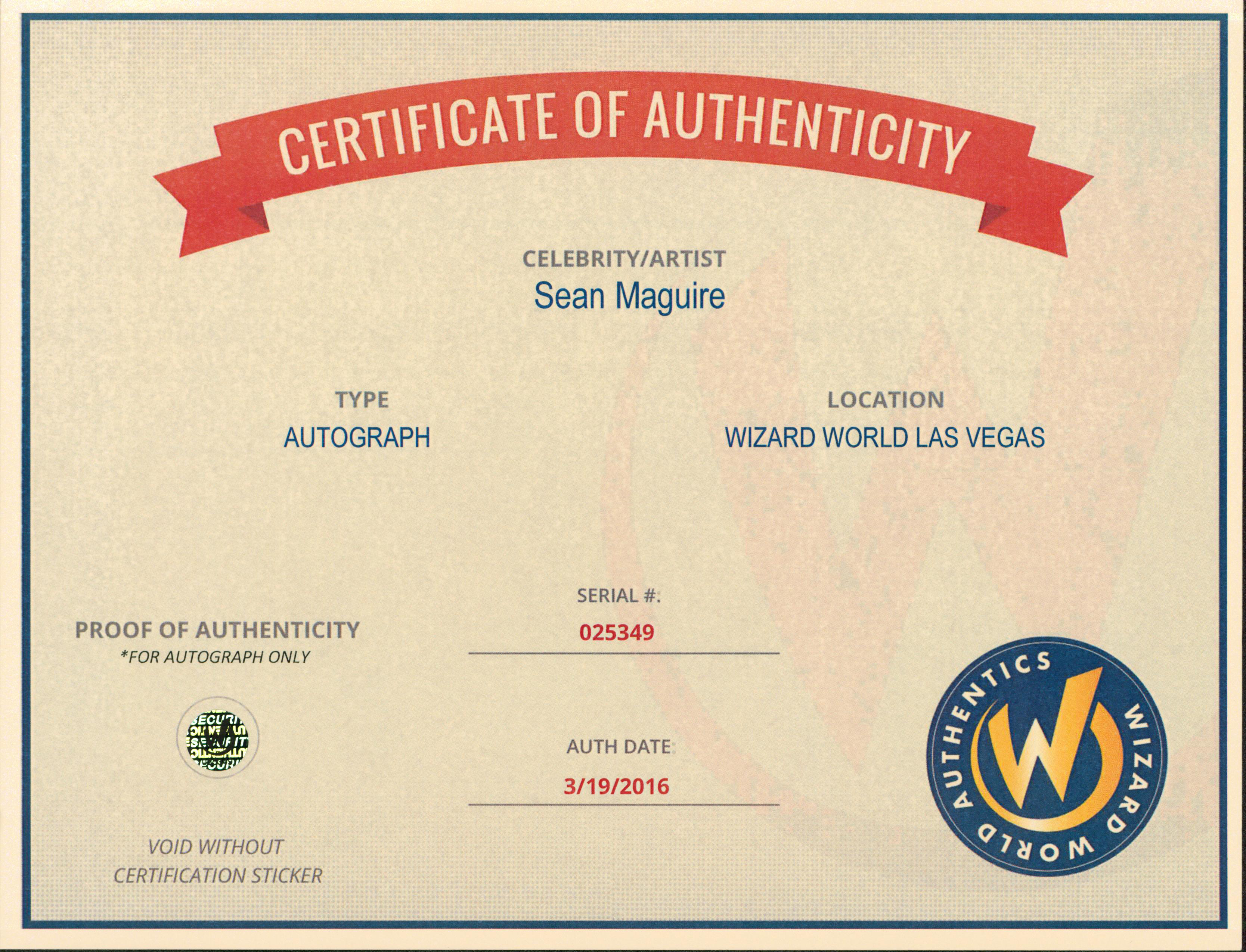 This Autographed 8x10 Photo has been Personally Signed by Sean Maguire of Once Upon a Time. This item is 100% Authentic to include a Certificate of Authenticity (COA) / hologram by Wizard World Authentics. A Wizard World Authentics representative was present when this item was being signed, the date of the signing is notated on the COA. We have multiples of this same item. While the photographs are representative of this item, the size, placement and strength of the signature may vary. Each item is hand signed, therefore, each autograph is unique.