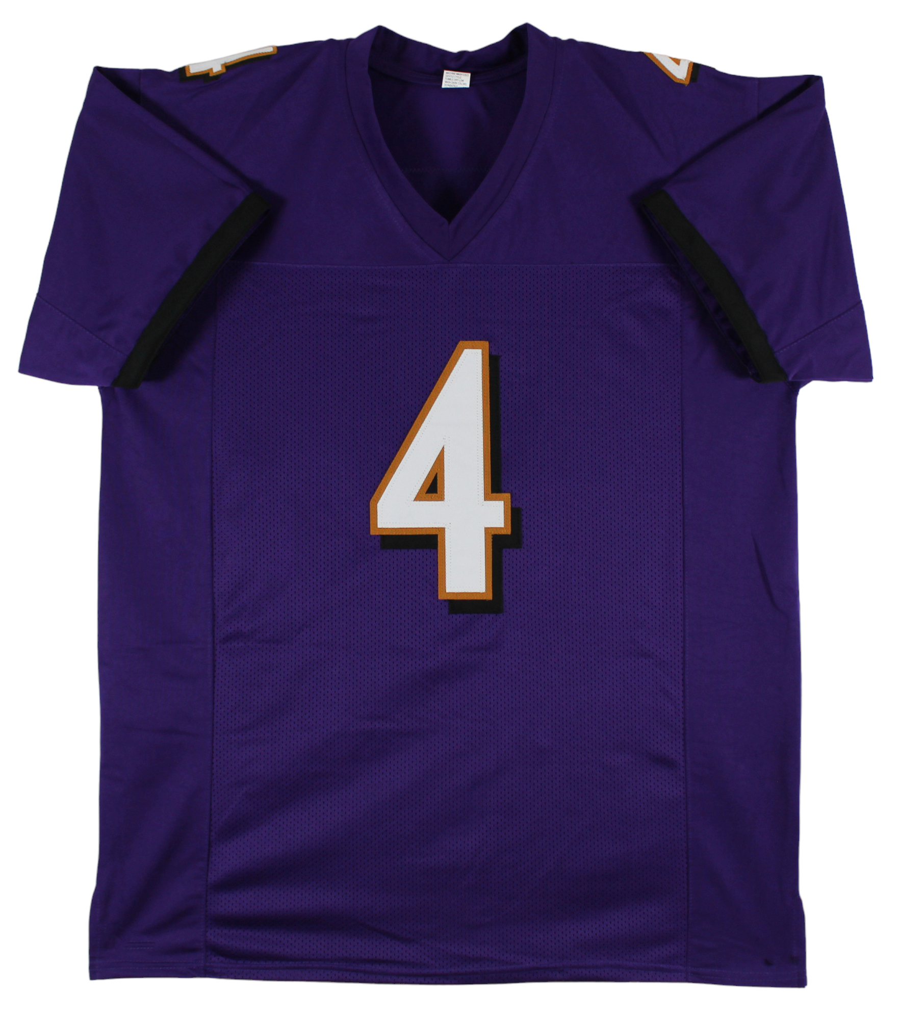 This Autographed Purple Pro Style Jersey has been Personally Signed by Zay Flowers of the Baltimore Ravens. This item is 100% Authentic to include a hologram by Beckett Authentication Services. This item will come with an affixed Beckett Authentication Services (BAS) authentication sticker, which includes a scannable QR code to verify authenticity. Please note that Beckett no longer provides serial-numbered COA cards, and the attached BAS sticker will serve as the complete authentication for this item. This is a BAS Witnessed Protection Program item which means a Beckett Authentication Service representative was present when this item was being signed. We conducted an autograph signing with Zay Flowers where multiples of the same item were signed. While the photographs are representative of this item, the size, placement and strength of the signature may vary. Each item is hand signed, therefore, each autograph is unique. This item can be verified through BAS Witnessed. This is a X-Large sized, non-branded, custom-stitched Jersey.