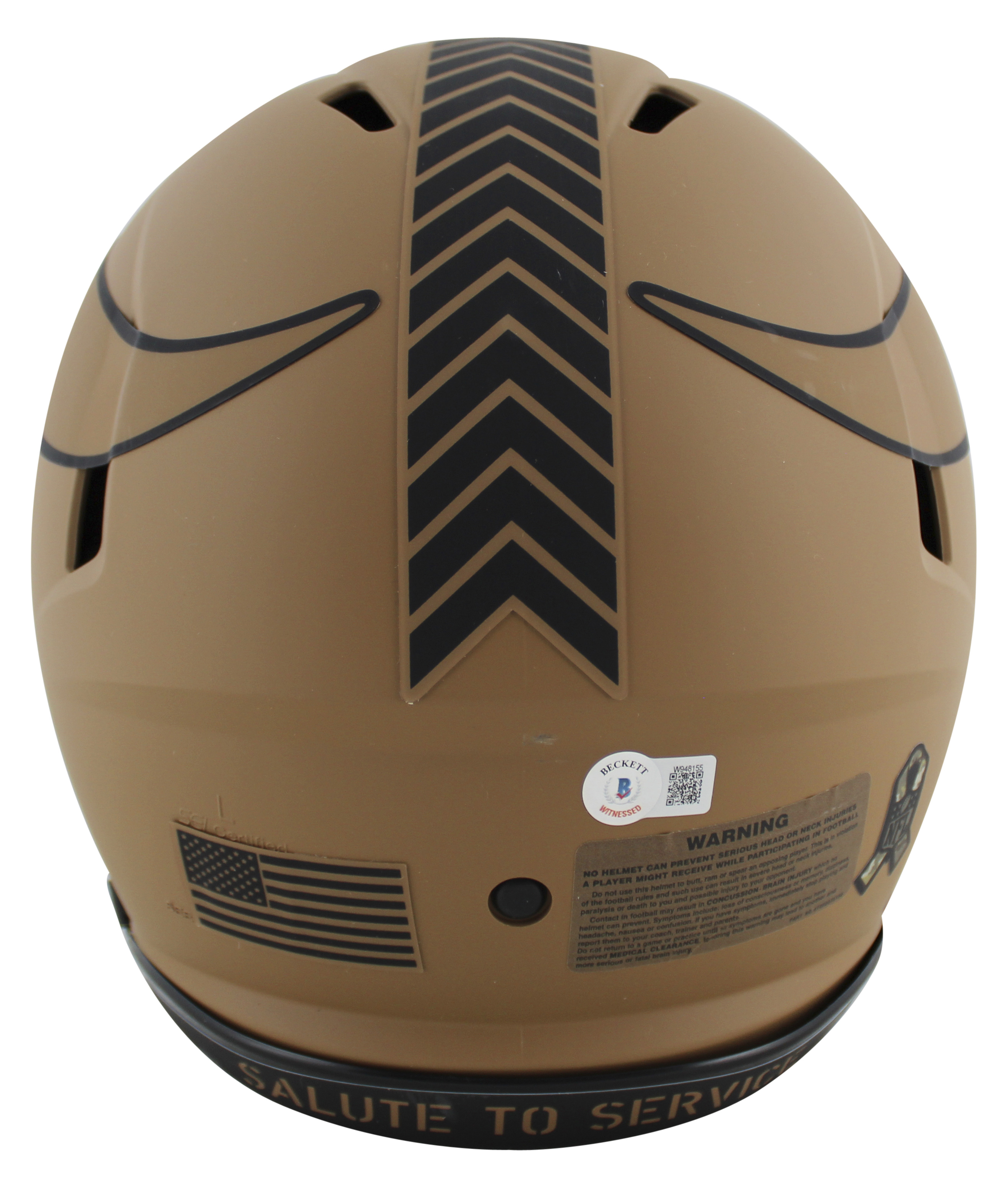 This Autographed Alternate 2023 Salute To Service II Riddell Authentic Full Size Speed Proline Helmet has been Personally Signed by Justin Jefferson of the Minnesota Vikings. This item is 100% Authentic to include a hologram by Beckett Authentication Services. This item will come with an affixed Beckett Authentication Services (BAS) authentication sticker, which includes a scannable QR code to verify authenticity. Please note that Beckett no longer provides serial-numbered COA cards, and the attached BAS sticker will serve as the complete authentication for this item. This is a BAS Witnessed Protection Program item which means a Beckett Authentication Service representative was present when this item was being signed. We conducted an autograph signing with Justin Jefferson where multiples of the same item were signed. While the photographs are representative of this item, the size, placement and strength of the signature may vary. Each item is hand signed, therefore, each autograph is unique. This item can be verified through BAS Witnessed.