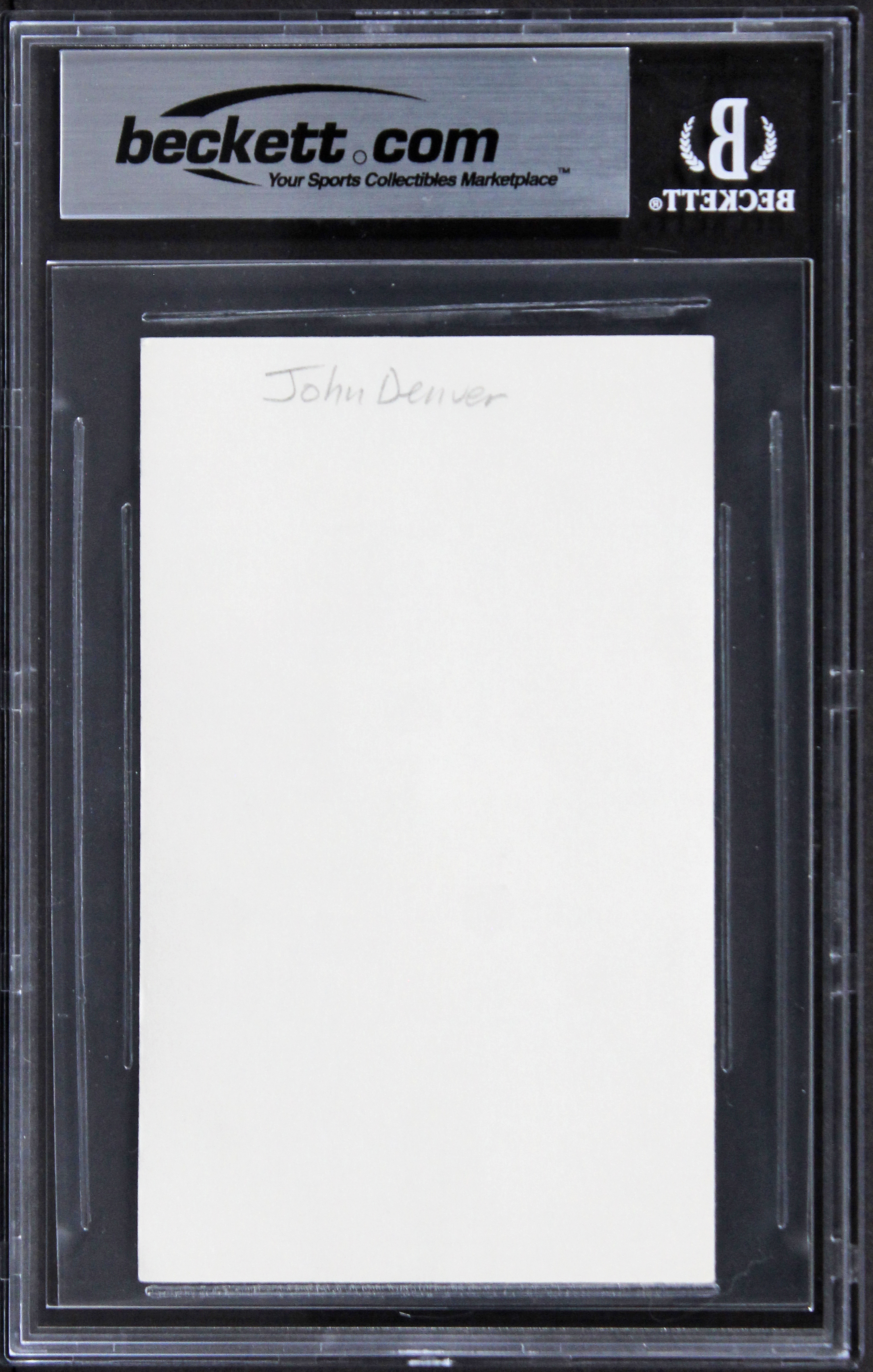 This Autographed 3x5 Index Card has been Personally Signed by John Denver of Singer. This item is 100% Authentic, it comes slabbed and authenticated by Beckett Authentication Services. The authenticity can be verified on Beckett Authentication Services website.
