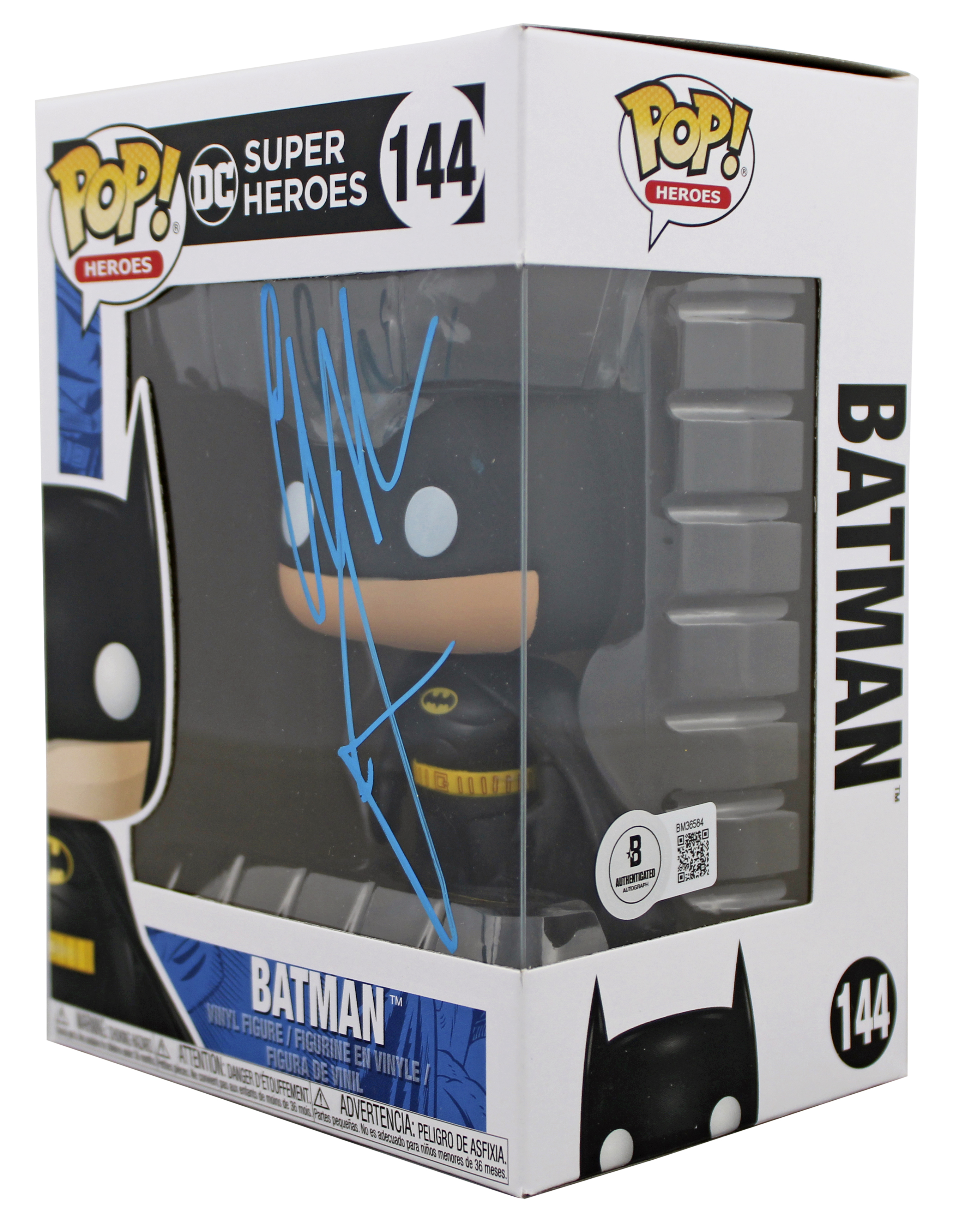 This Autographed w/ Blue Signature DC Super Heros #144 Batman Funko Pop Vinyl Figure has been Personally Signed by Christian Bale of Batman Begins. This item is 100% Authentic to include a hologram by Beckett Authentication Services. This item will come with an affixed Beckett Authentication Services (BAS) authentication sticker, which includes a scannable QR code to verify authenticity. Please note that Beckett no longer provides serial-numbered COA cards, and the attached BAS sticker will serve as the complete authentication for this item. We have multiples of this same item. While the photographs are representative of this item, the size, placement and strength of the signature may vary. Each item is hand signed, therefore, each autograph is unique. This item will ship in a Pop! Protector, please refer to the photos for condition of the item prior to purchase, these are in good condition but would not be considered mint.