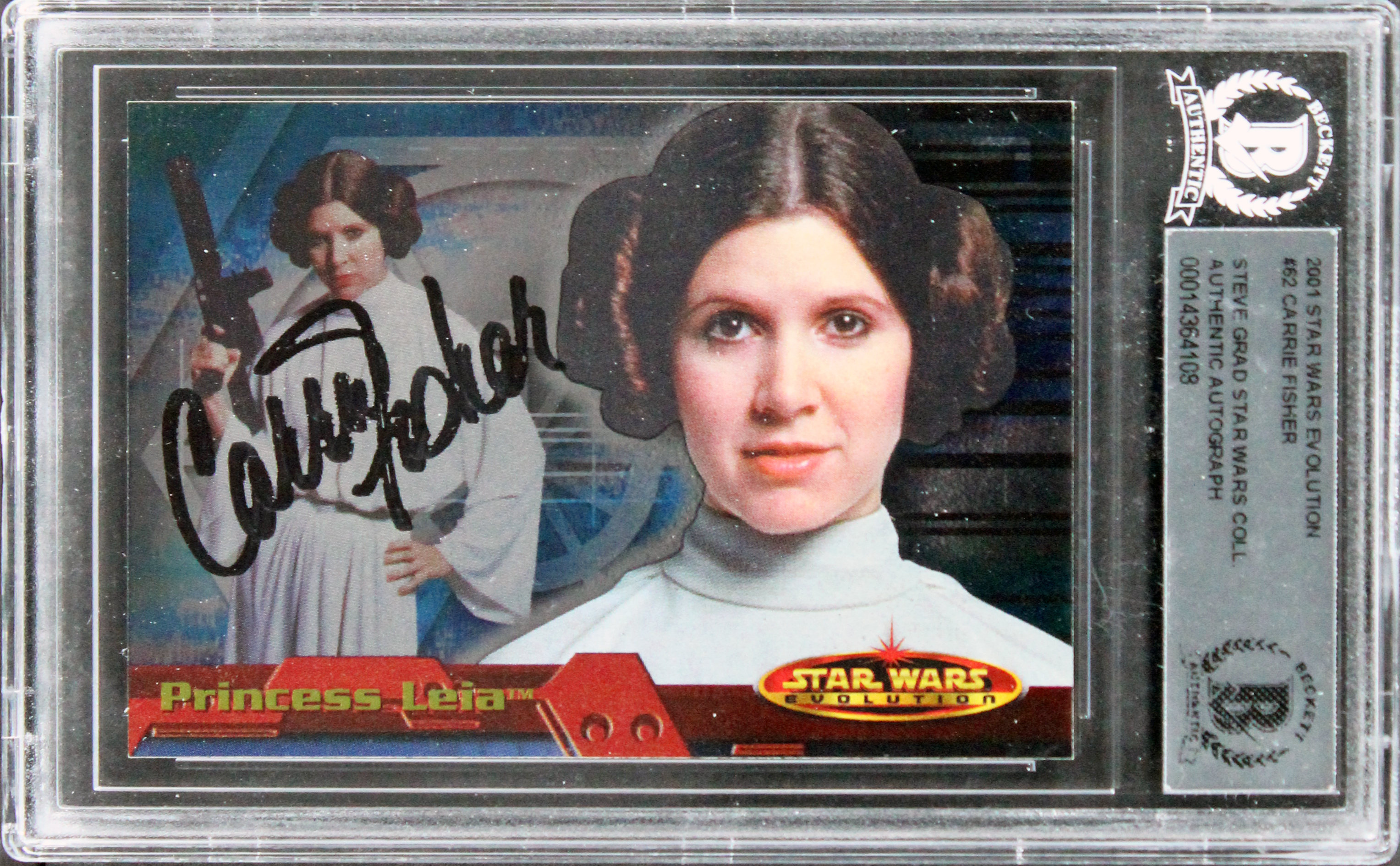 The authenticity can be verified on Beckett Authentication Services website. This Autographed Card has been Personally Signed by Carrie Fisher of Star Wars. This item is 100% Authentic, it comes slabbed and authenticated by Beckett Authentication Services. The authenticity can be verified on Beckett Authentication Services website.