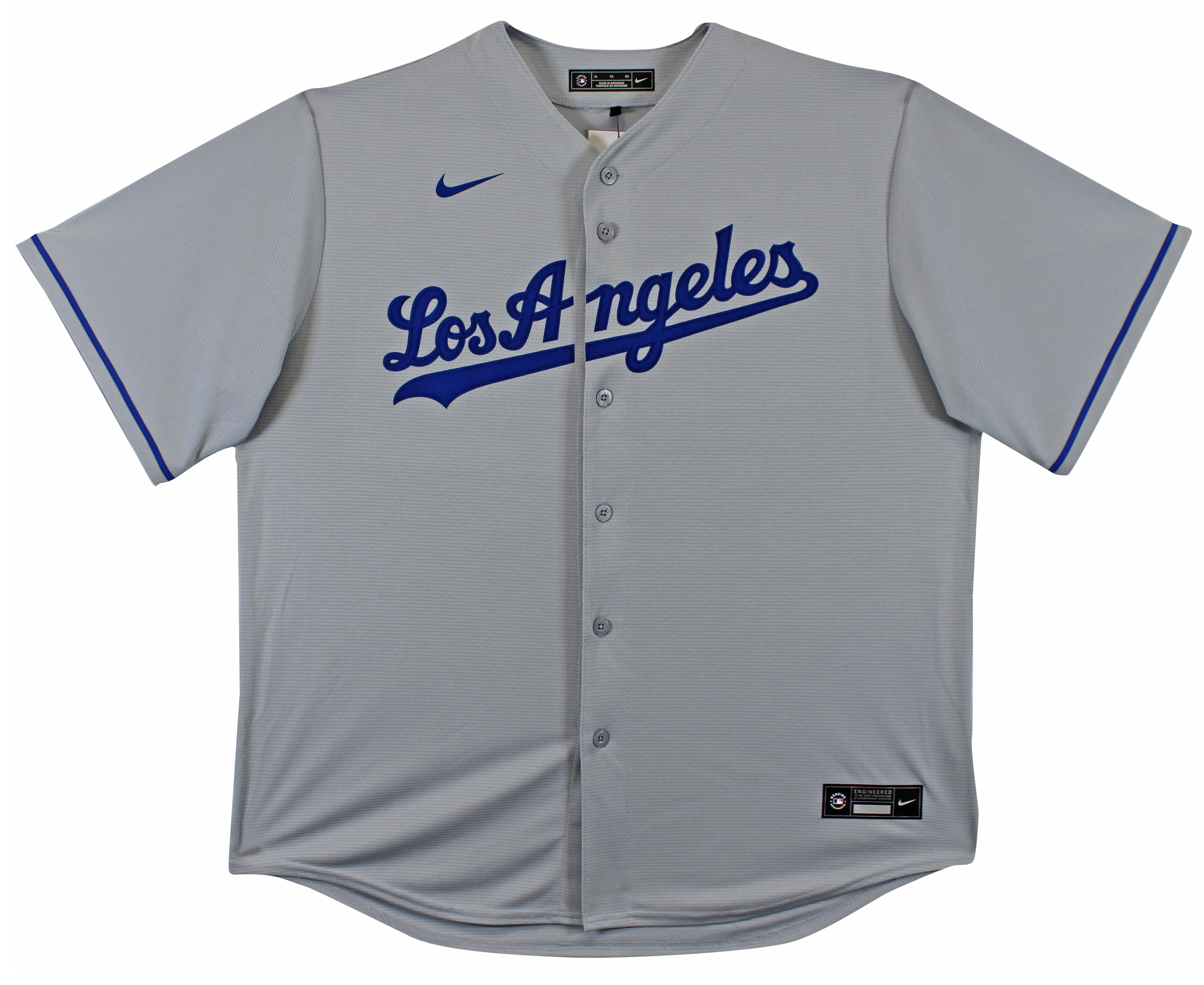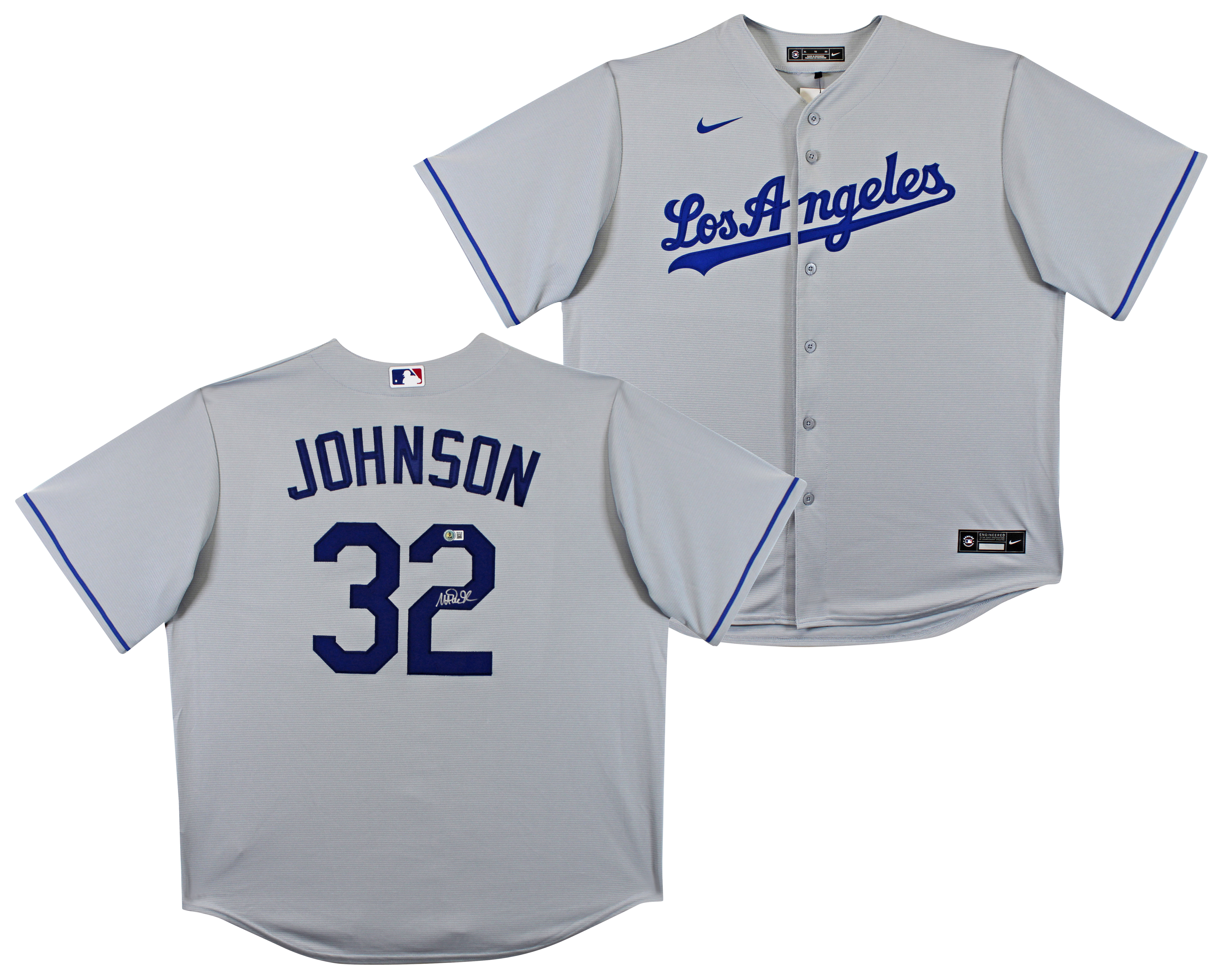 This Autographed Grey Nike Jersey has been Personally Signed by Magic Johnson of the Los Angeles Dodgers. This item is 100% Authentic to include a Certificate of Authenticity (COA) / hologram by Beckett Authentication Services. This is a BAS Witnessed Protection Program item which means a Beckett Authentication Service representative was present when this item was being signed. We conducted an autograph signing with Magic Johnson where multiples of the same item were signed. While the photographs are representative of this item, the size, placement and strength of the signature may vary. Each item is hand signed, therefore, each autograph is unique. This item can be verified through BAS Witnessed. Multiple sizes available. Reach out for availability.