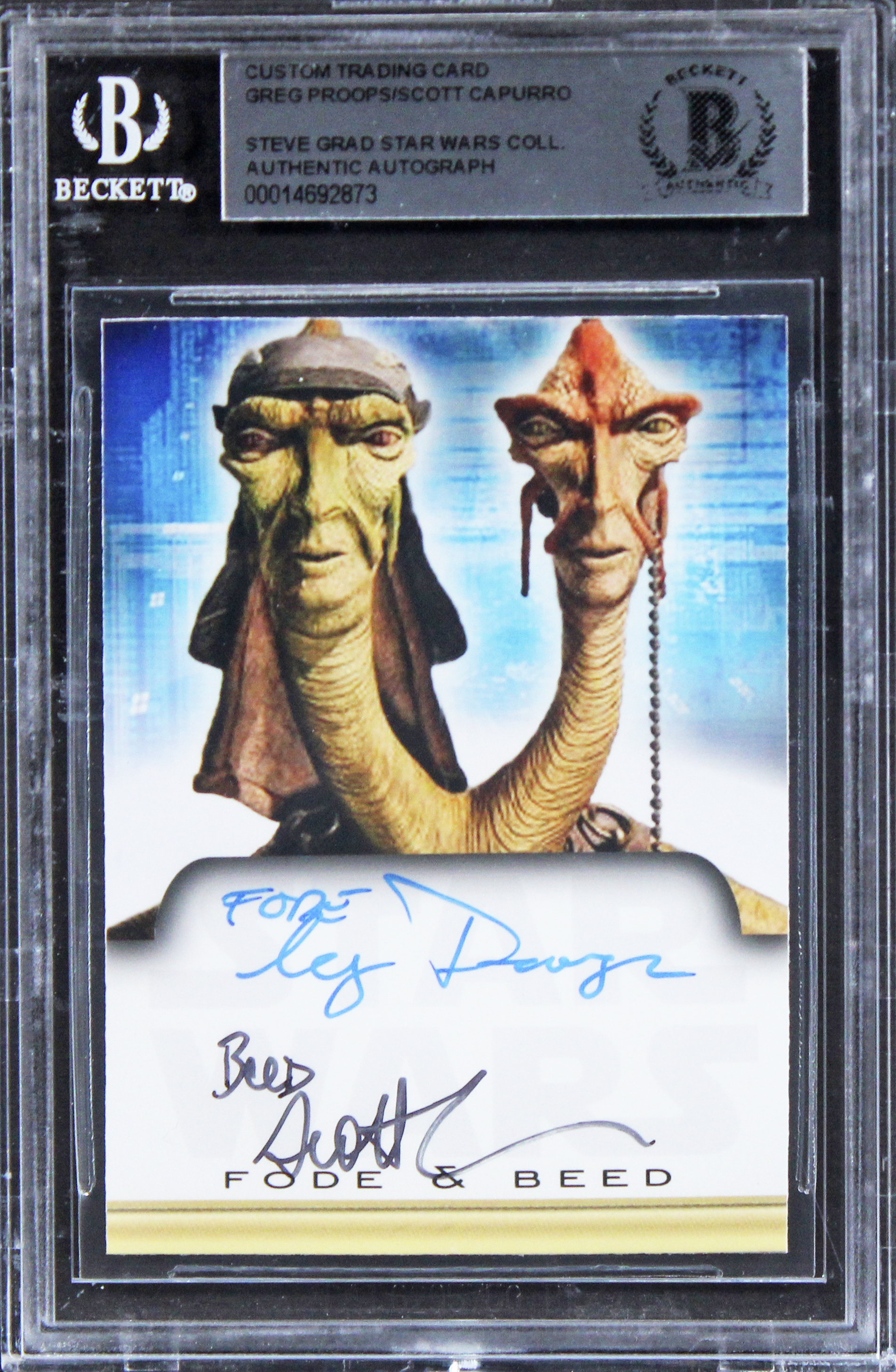 The authenticity can be verified on Beckett Authentication Services website. This Autographed Card has been Personally Signed by Greg Proops & Scott Capurro of Star Wars. This item is 100% Authentic, it comes slabbed and authenticated by Beckett Authentication Services. The authenticity can be verified on Beckett Authentication Services website.