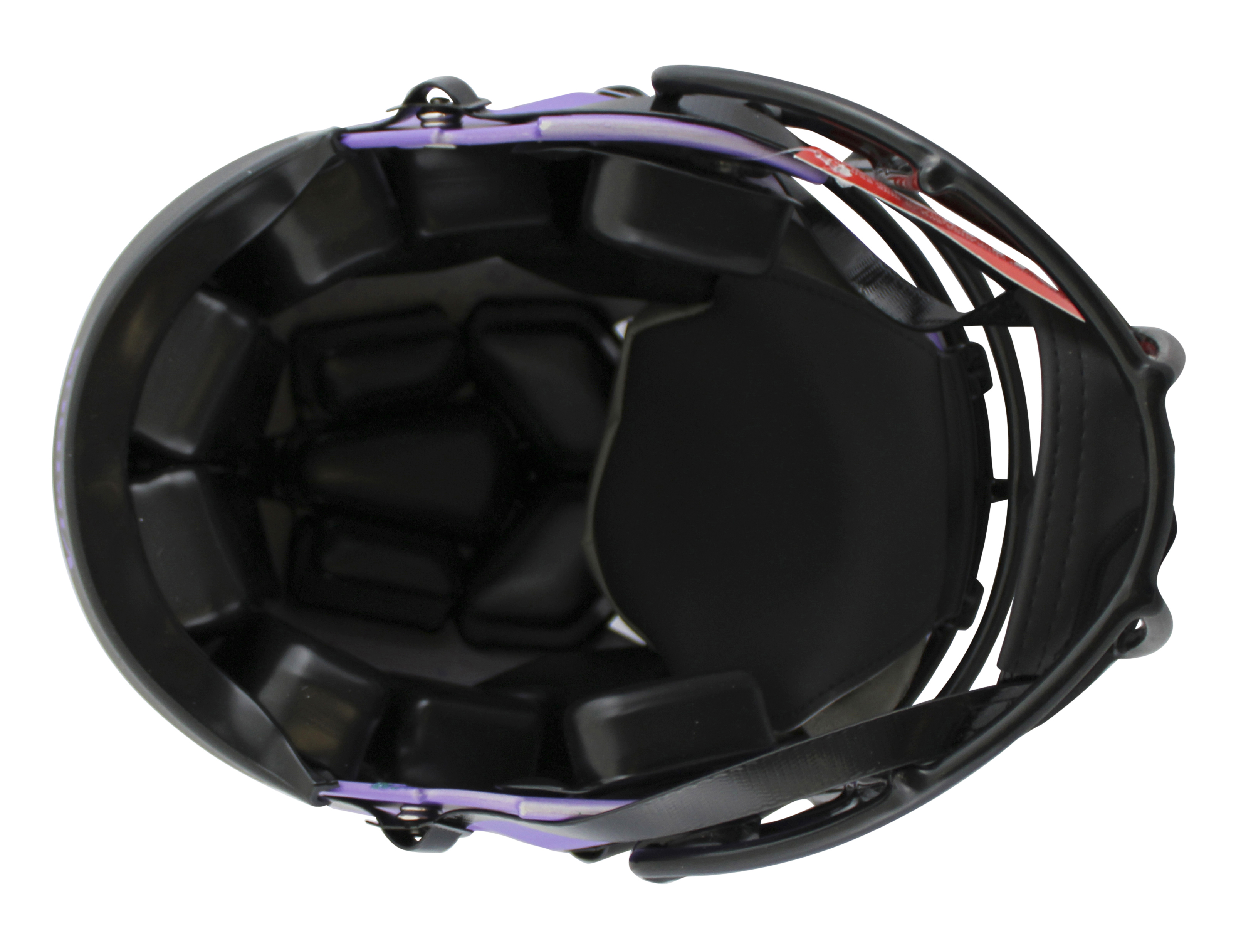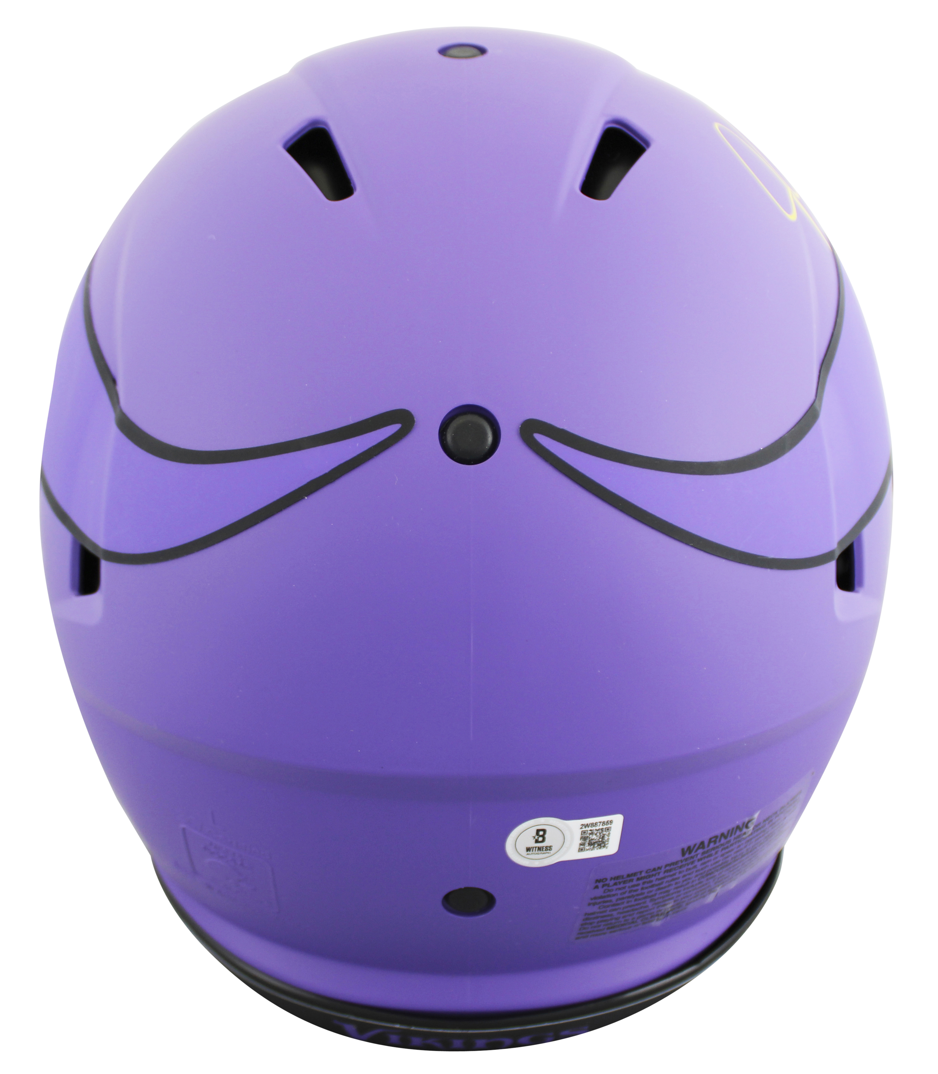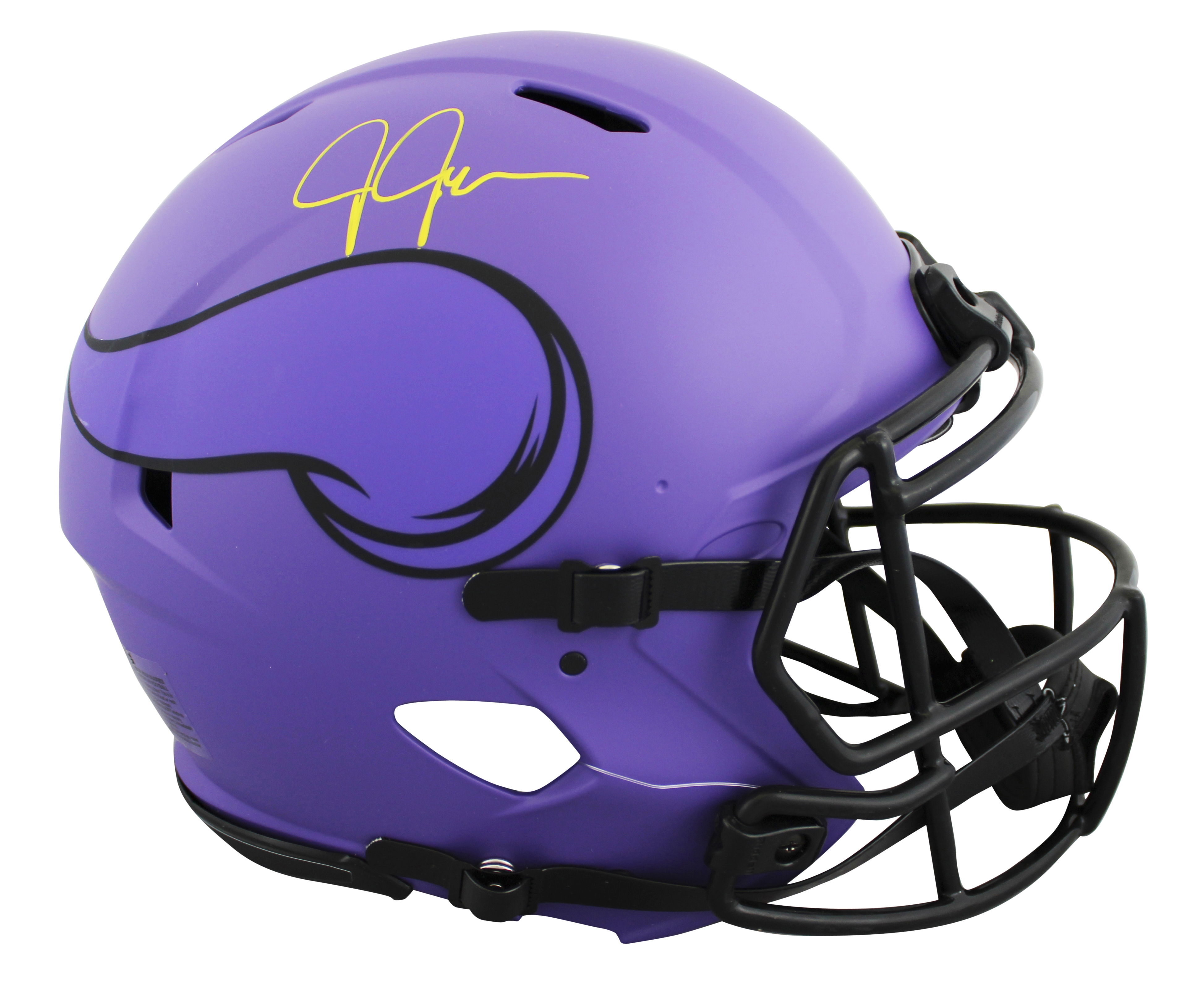 This Autographed Alternate Rave Riddell Full Size Speed Proline Helmet W/ Uv Mirrored Back Acrylic Display Case has been Personally Signed by Justin Jefferson of the Minnesota Vikings. This item is 100% Authentic to include a hologram by Beckett Authentication Services. This item will come with an affixed Beckett Authentication Services (BAS) authentication sticker, which includes a scannable QR code to verify authenticity. Please note that Beckett no longer provides serial-numbered COA cards, and the attached BAS sticker will serve as the complete authentication for this item. This is a BAS Witnessed Protection Program item which means a Beckett Authentication Service representative was present when this item was being signed. We conducted an autograph signing with Justin Jefferson where multiples of the same item were signed. While the photographs are representative of this item, the size, placement and strength of the signature may vary. Each item is hand signed, therefore, each autograph is unique. This item can be verified through BAS Witnessed.