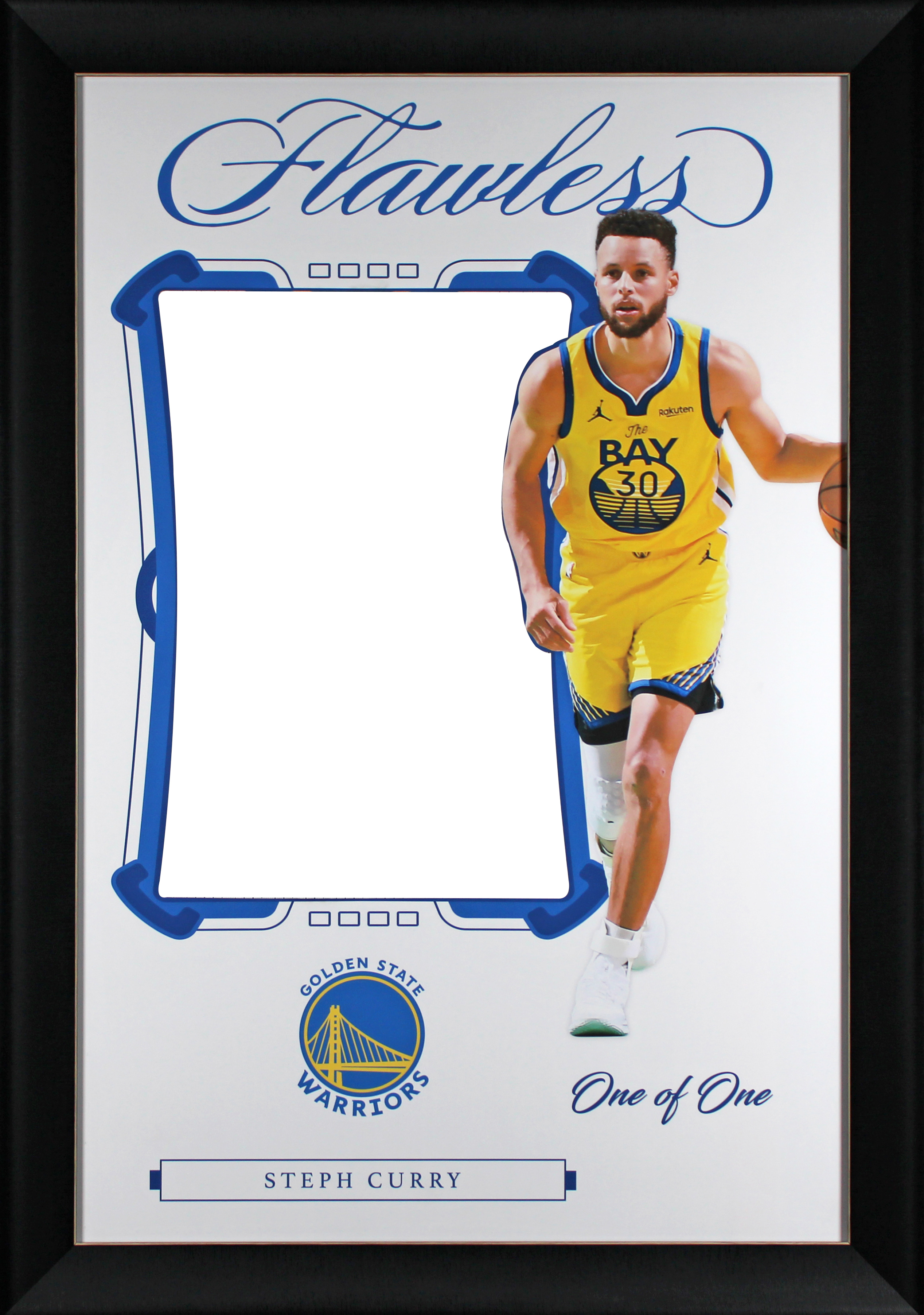 This Autographed One of One Jersey Framed Display has been Personally Signed by Stephen Curry of the Golden State Warriors. This item is 100% Authentic to include a hologram by Beckett Authentication Services. This item will come with an affixed Beckett Authentication Services (BAS) authentication sticker, which includes a scannable QR code to verify authenticity. Please note that Beckett no longer provides serial-numbered COA cards, and the attached BAS sticker will serve as the complete authentication for this item. This is a BAS Witnessed Protection Program item which means a Beckett Authentication Service representative was present when this item was being signed. We conducted an autograph signing with Stephen Curry where multiples of the same item were signed. While the photographs are representative of this item, the size, placement and strength of the signature may vary. Each item is hand signed, therefore, each autograph is unique. This item can be verified through BAS Witnessed. This item has been professionally framed to overall dimensions of approximately 28.5 x 40.5 inches.