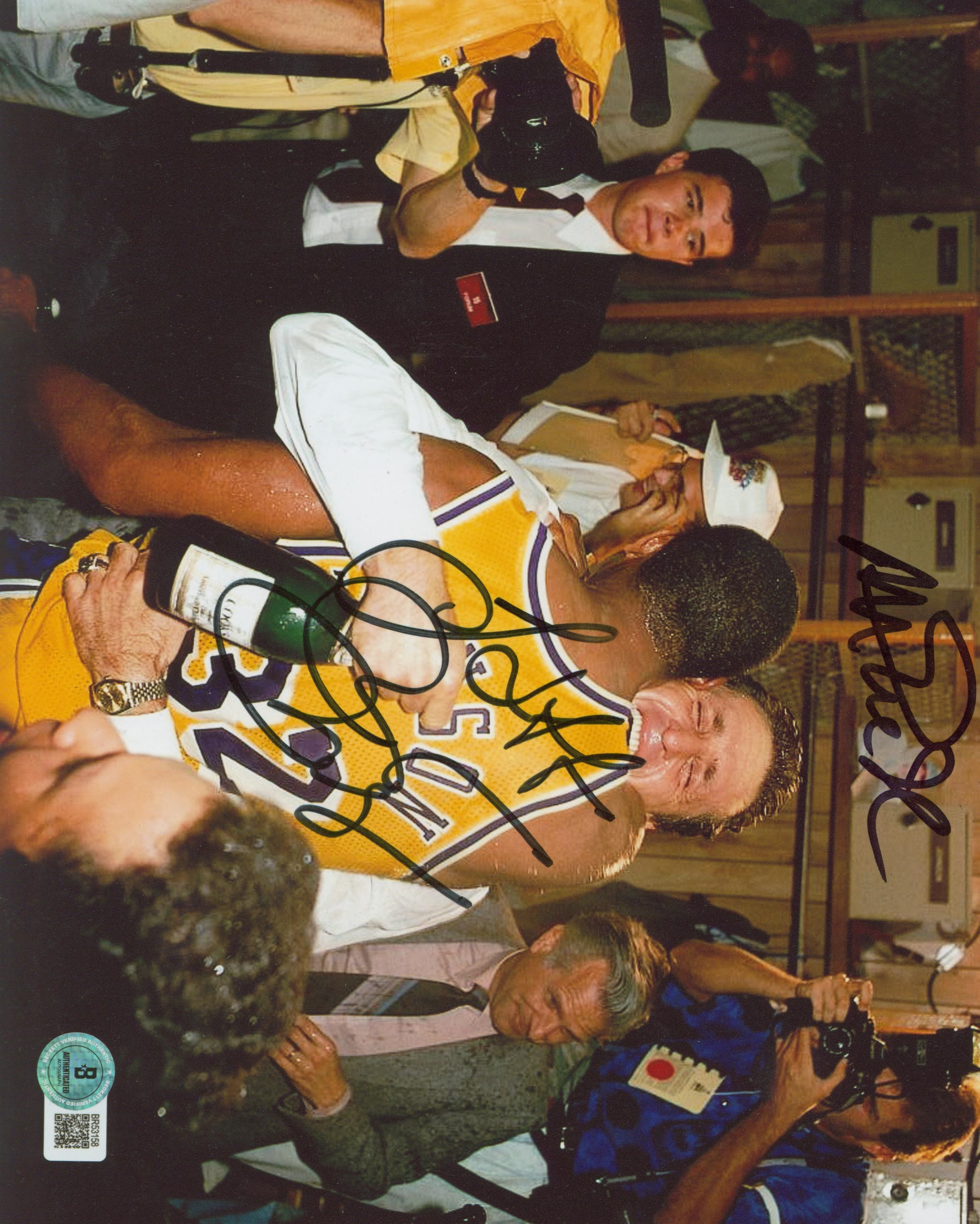 This Autographed 8x10 Photo has been Personally Signed by Magic Johnson & Pat Riley of the Los Angeles Lakers. This item is 100% Authentic to include a hologram by Beckett Authentication Services. This item will come with an affixed Beckett Authentication Services (BAS) authentication sticker, which includes a scannable QR code to verify authenticity. Please note that Beckett no longer provides serial-numbered COA cards, and the attached BAS sticker will serve as the complete authentication for this item. The authenticity can be verified on Beckett Authentication Services website.