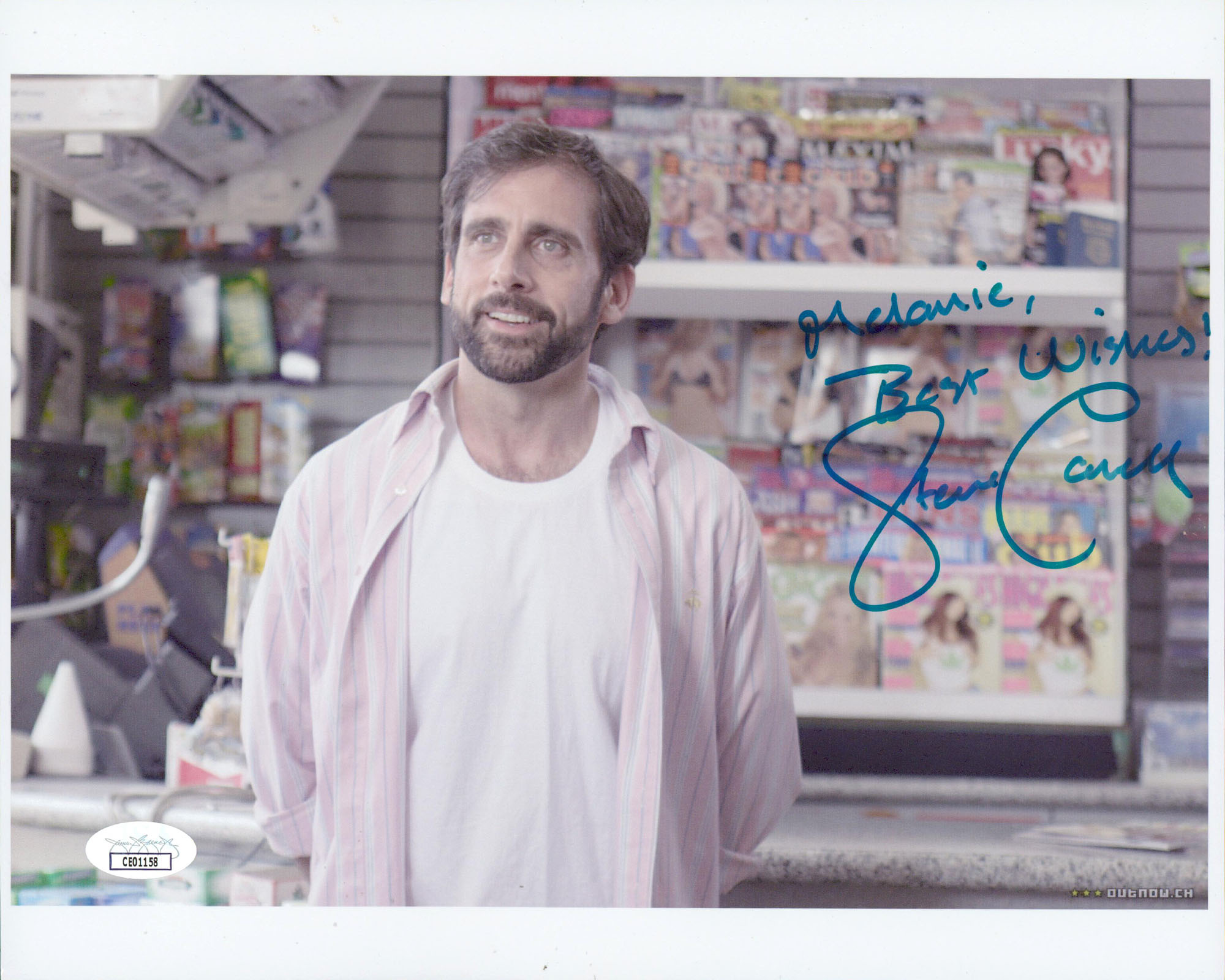 This Autographed Horizontal 8.5x11 Photo with the inscription of "Melanie, Best Wishes!" has been Personally Signed by Steve Carell of The Office. This item is 100% Authentic to include a Certificate of Authenticity (COA) / hologram by JSA. The authenticity can be verified on JSA website.