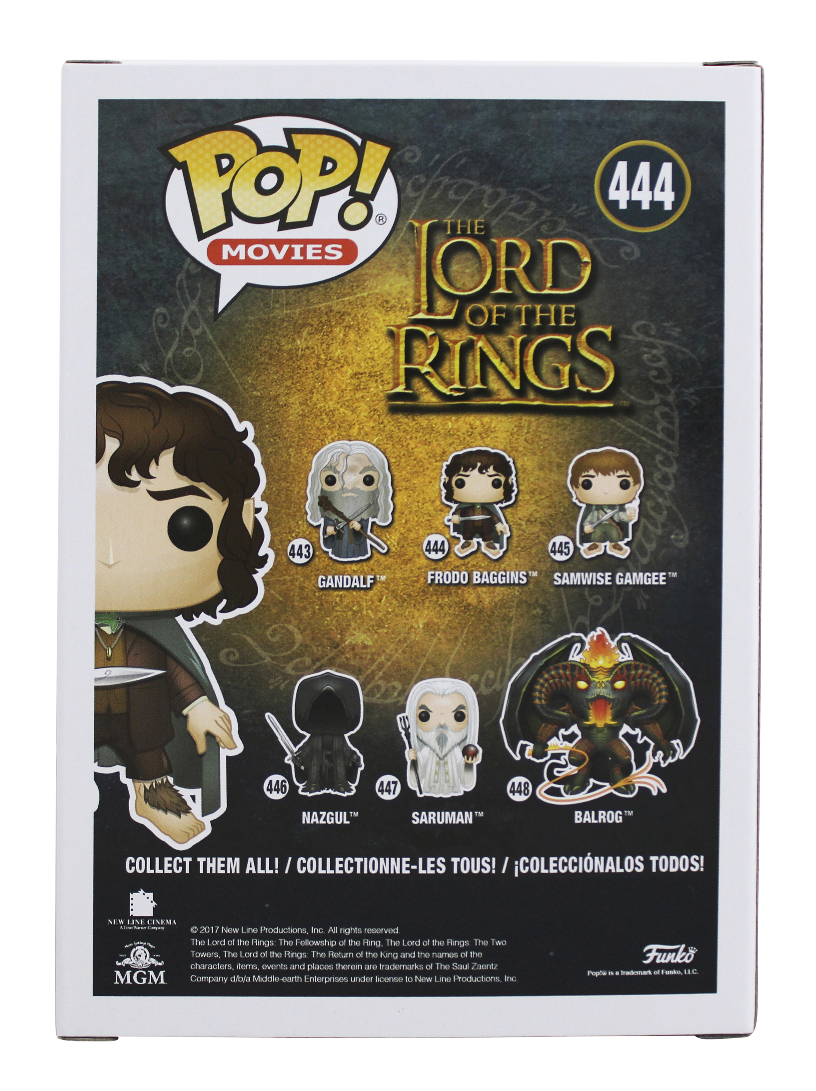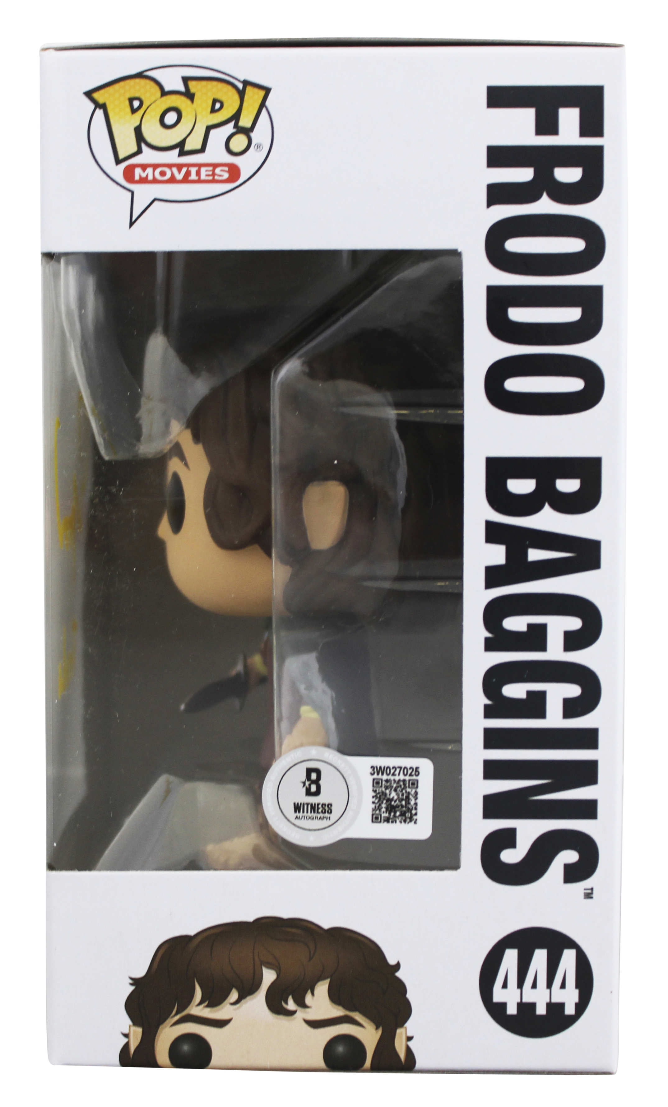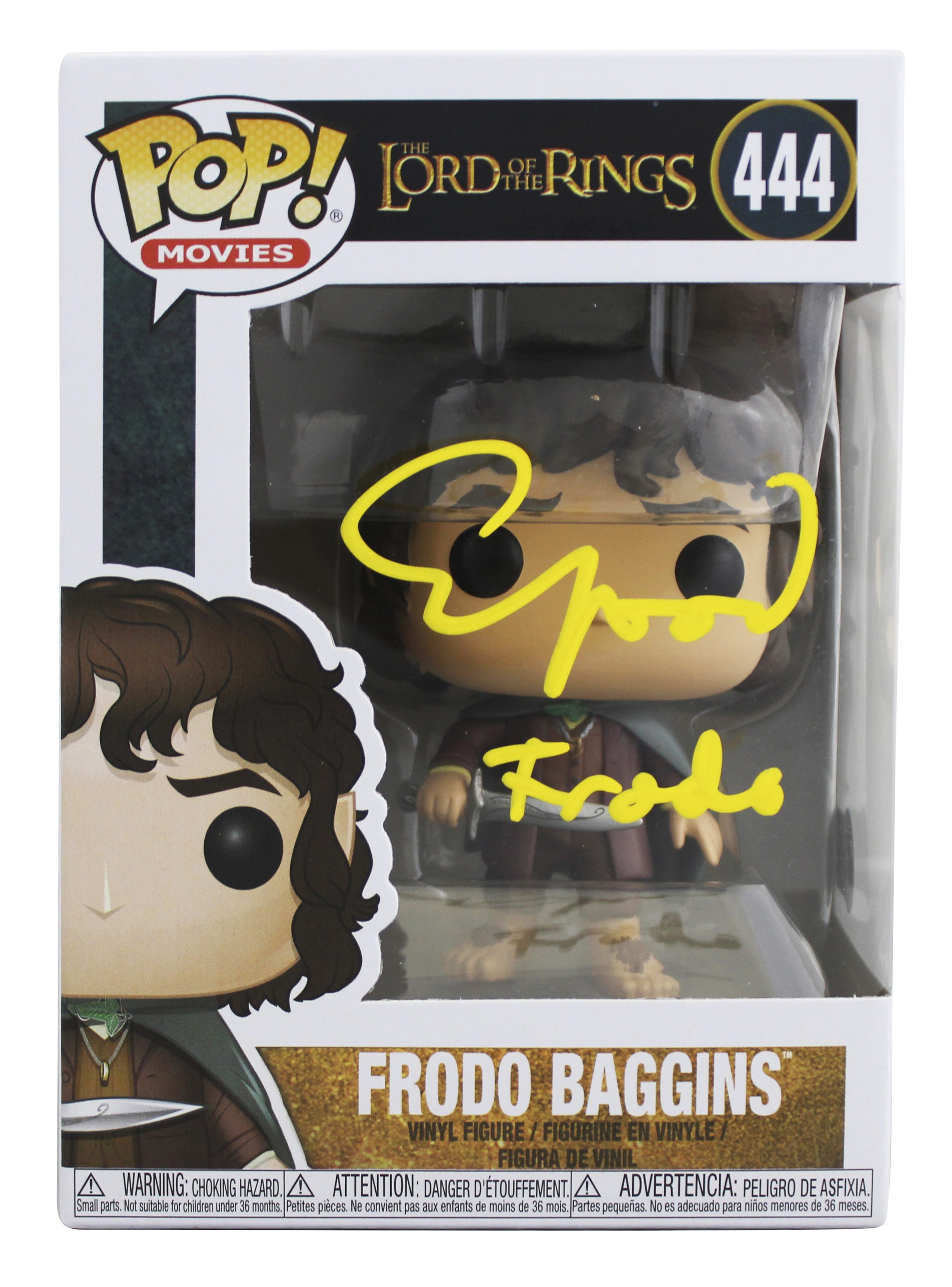 This Autographed w/ Yellow Signature Lord Of The Rings Frodo Baggins #444 Funko Pop Vinyl Figure with the inscription of "Frodo" has been Personally Signed by Elijah Wood of Lord of the Rings. This item is 100% Authentic to include a hologram by Beckett Authentication Services. This item will come with an affixed Beckett Authentication Services (BAS) authentication sticker, which includes a scannable QR code to verify authenticity. Please note that Beckett no longer provides serial-numbered COA cards, and the attached BAS sticker will serve as the complete authentication for this item. This is a BAS Witnessed Protection Program item which means a Beckett Authentication Service representative was present when this item was being signed. We conducted an autograph signing with Elijah Wood where multiples of the same item were signed. While the photographs are representative of this item, the size, placement and strength of the signature may vary. Each item is hand signed, therefore, each autograph is unique. This will be shipped in a Pop Protector, each will have some handling wear from shipment to the signing and back. These would not be considered mint.