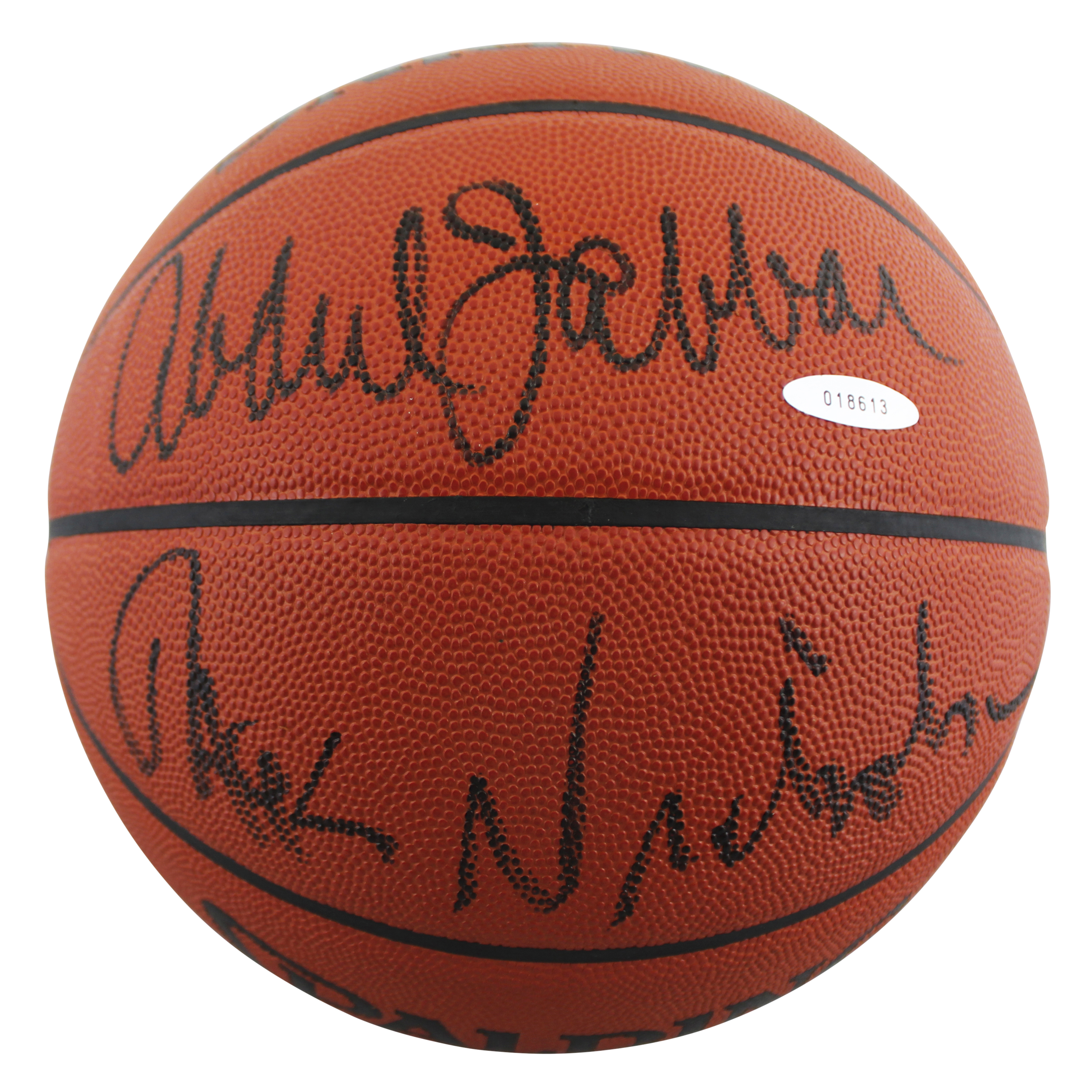 This Autographed Spalding Official Game Ball Basketball has been Personally Signed by Jack Nicholson & Kareem Abdul-Jabbar. This item is 100% Authentic to include a Certificate of Authenticity (COA) / hologram by JSA. The authenticity can be verified on JSA website.