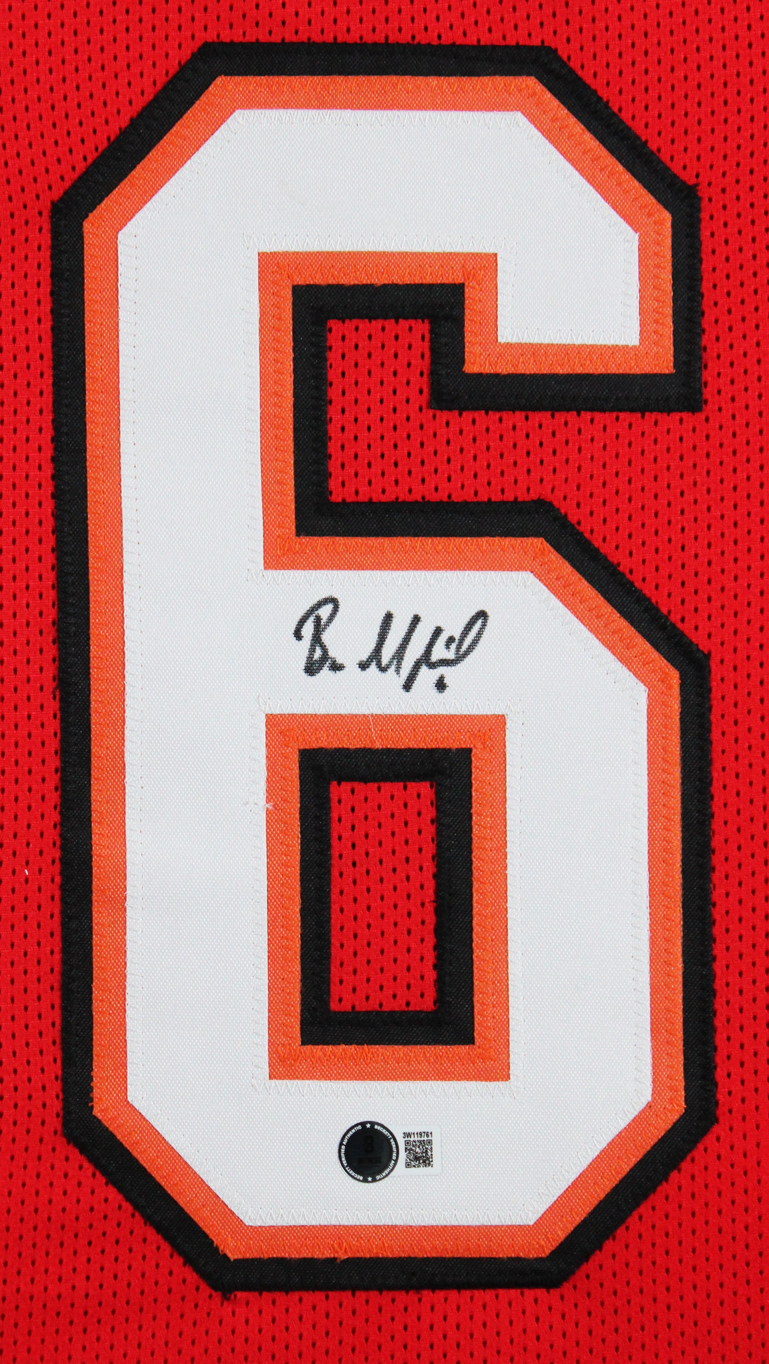 This Autographed Red Pro Style Framed Jersey has been Personally Signed by Baker Mayfield of the Tampa Bay Buccaneers. This item is 100% Authentic to include a hologram by Beckett Authentication Services. This item will come with an affixed Beckett Authentication Services (BAS) authentication sticker, which includes a scannable QR code to verify authenticity. Please note that Beckett no longer provides serial-numbered COA cards, and the attached BAS sticker will serve as the complete authentication for this item. This is a BAS Witnessed Protection Program item which means a Beckett Authentication Service representative was present when this item was being signed. We conducted an autograph signing with Baker Mayfield where multiples of the same item were signed. While the photographs are representative of this item, the size, placement and strength of the signature may vary. Each item is hand signed, therefore, each autograph is unique. This item can be verified through BAS Witnessed. This item has been professionally framed to overall dimensions of approximately 32 x 37 inches. This is a X-Large sized, non-branded, custom-stitched Framed Jersey. This jersey will be framed to order, it will take approximately 3-4 business days from purchase date for it to ship.