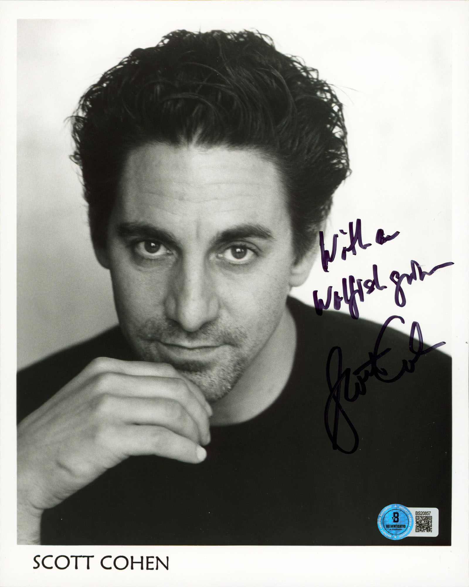This Autographed Vertical 8x10 Photo with the inscription of "With A Wolfish Smile" has been Personally Signed by Scott Cohen of Gilmore Girls. This item is 100% Authentic to include a hologram by Beckett Authentication Services. This item will come with an affixed Beckett Authentication Services (BAS) authentication sticker, which includes a scannable QR code to verify authenticity. Please note that Beckett no longer provides serial-numbered COA cards, and the attached BAS sticker will serve as the complete authentication for this item. The authenticity can be verified on Beckett Authentication Services website.