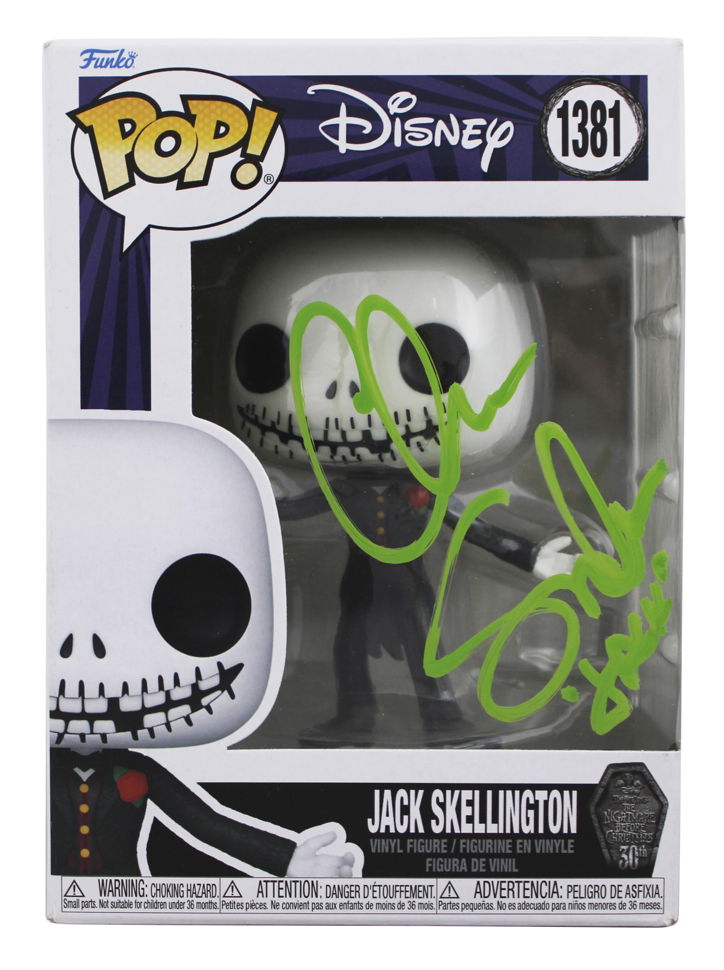 This Autographed Jack Skellington #1381 Funko Pop Vinyl Figure with the inscription of "Jack" has been Personally Signed by Chris Sarandon of The Nightmare Before Christmas. This item is 100% Authentic to include a Certificate of Authenticity (COA) / hologram by JSA. The authenticity can be verified on JSA website. This will be shipped in a Pop Protector, each will have some handling wear from shipment to the signing and back. This Funko is in good condition, but it would not be considered mint. Please refer to pictures for item's condition prior to purchase.