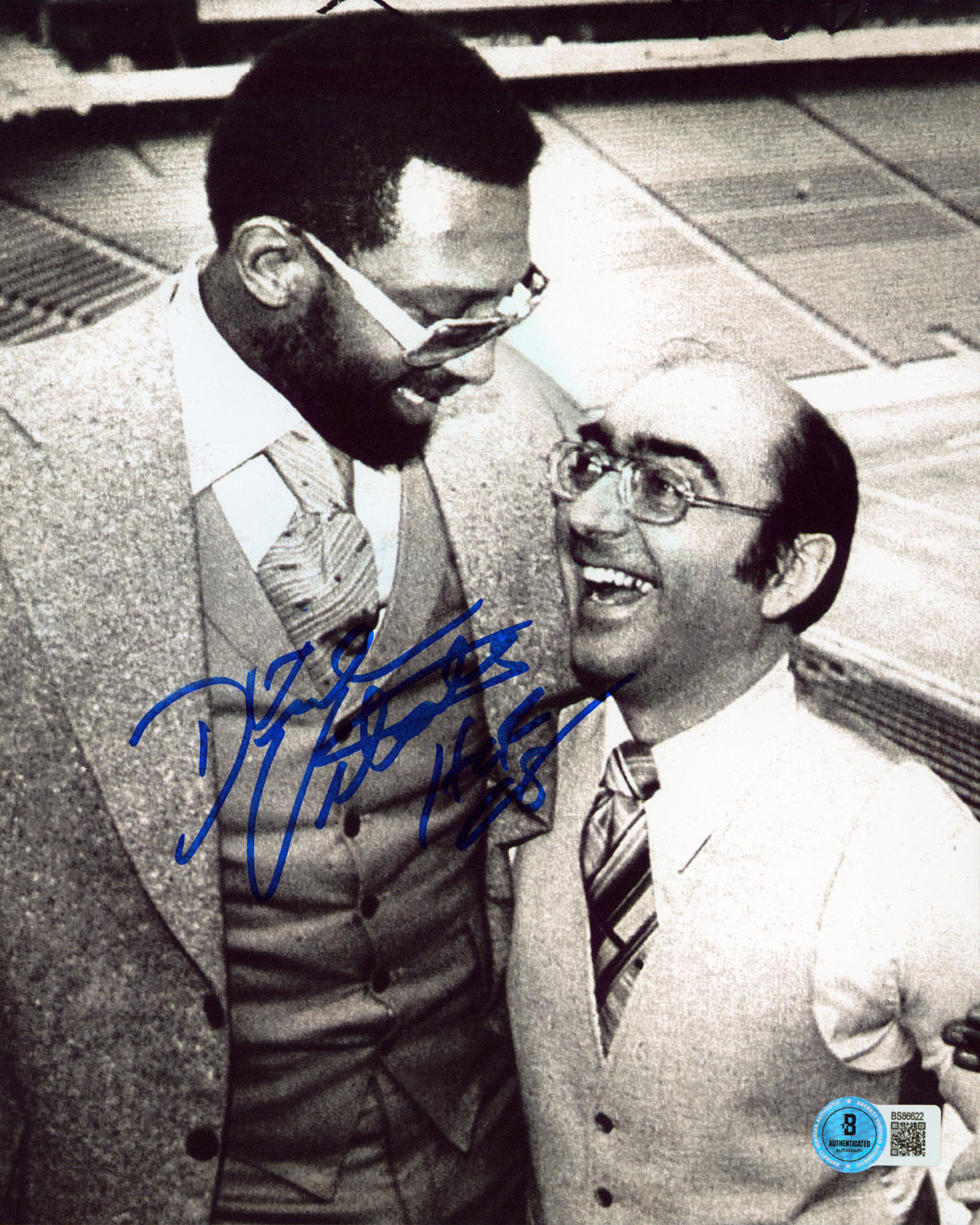 This Autographed Vertical 8x10 Photo with the inscription of "HOF" has been Personally Signed by Dick Vitale. This item is 100% Authentic to include a hologram by Beckett Authentication Services. This item will come with an affixed Beckett Authentication Services (BAS) authentication sticker, which includes a scannable QR code to verify authenticity. Please note that Beckett no longer provides serial-numbered COA cards, and the attached BAS sticker will serve as the complete authentication for this item. We have multiples of this same item. While the photographs are representative of this item, the size, placement and strength of the signature may vary. Each item is hand signed, therefore, each autograph is unique.