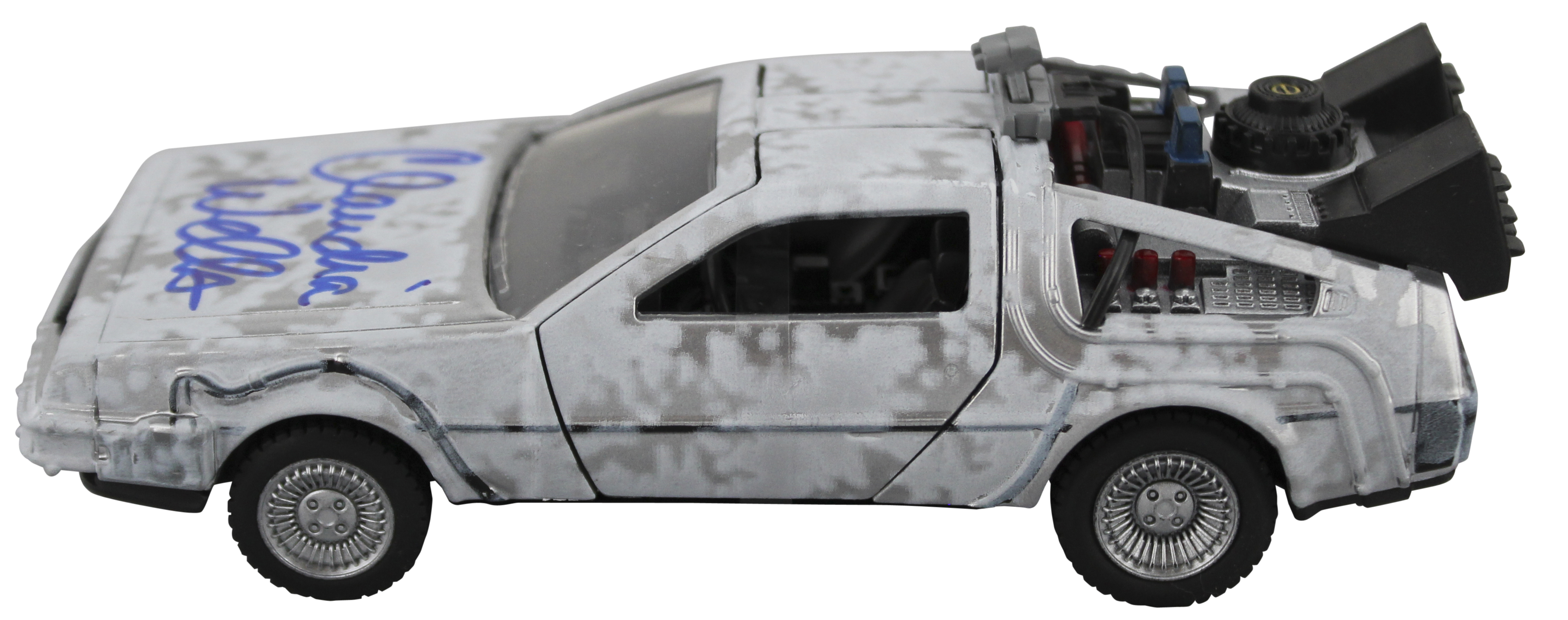 This Autographed 1:32 Metal Die Cast Welly DeLorean Time Machine Car has been Personally Signed by Claudia Wells of Back To The Future. This item is 100% Authentic to include a hologram by Beckett Authentication Services. This item will come with an affixed Beckett Authentication Services (BAS) authentication sticker, which includes a scannable QR code to verify authenticity. Please note that Beckett no longer provides serial-numbered COA cards, and the attached BAS sticker will serve as the complete authentication for this item. This is a BAS Witnessed Protection Program item which means a Beckett Authentication Service representative was present when this item was being signed.We have multiples of this same item. While the photographs are representative of this item, the size, placement and strength of the signature may vary. Each item is hand signed, therefore, each autograph is unique.