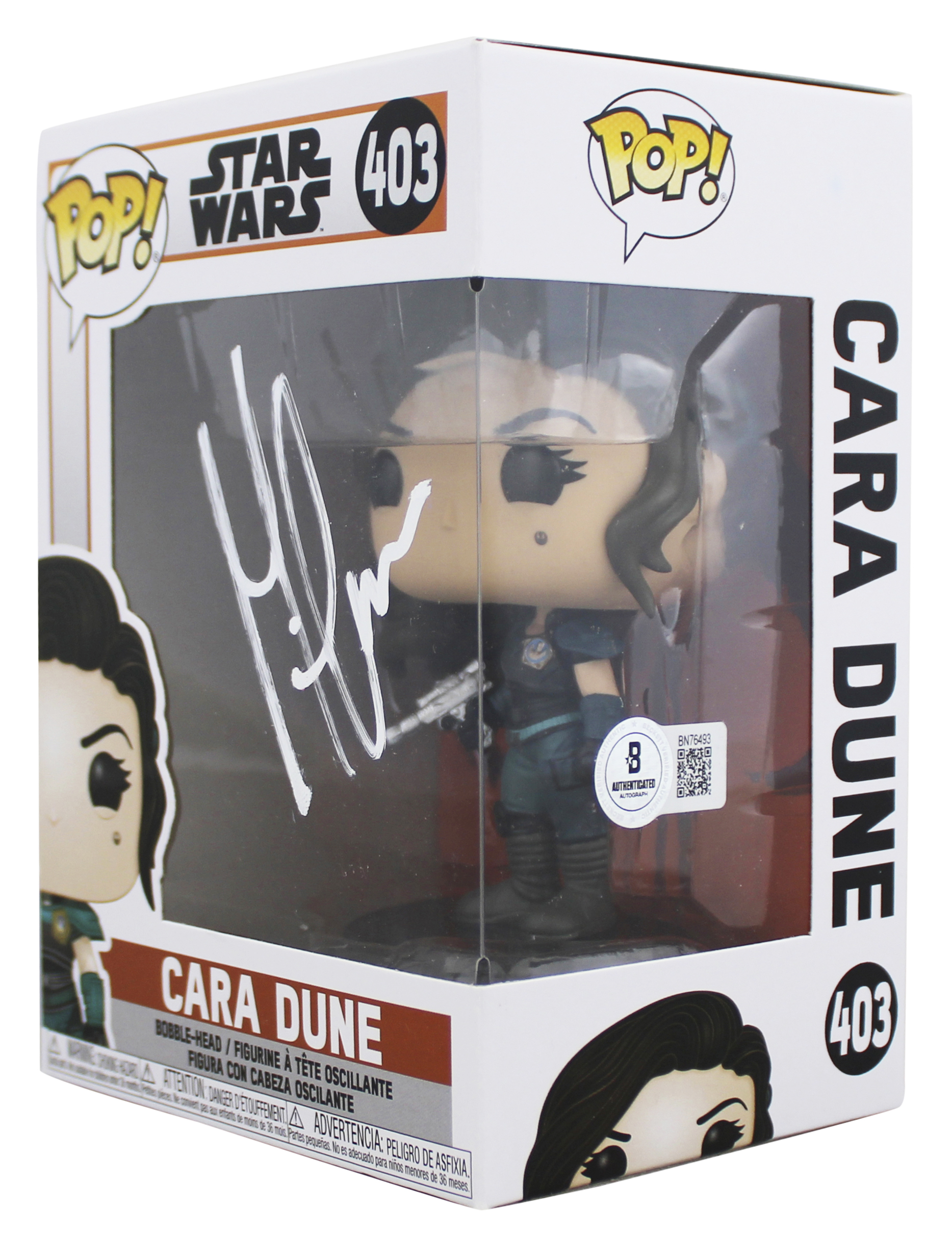 This Autographed Cara Dune #403 Funko Pop Vinyl Figure has been Personally Signed by Gina Carano of Star Wars. This item is 100% Authentic to include a hologram by Beckett Authentication Services. This item will come with an affixed Beckett Authentication Services (BAS) authentication sticker, which includes a scannable QR code to verify authenticity. Please note that Beckett no longer provides serial-numbered COA cards, and the attached BAS sticker will serve as the complete authentication for this item. The authenticity can be verified on Beckett Authentication Services website. This will be shipped in a Pop Protector. This Funko will have some handling wear from shipment to the signing and back. This Funko is in good condition, but would not be considered mint. Please refer to photos for item's condition prior to purchase.