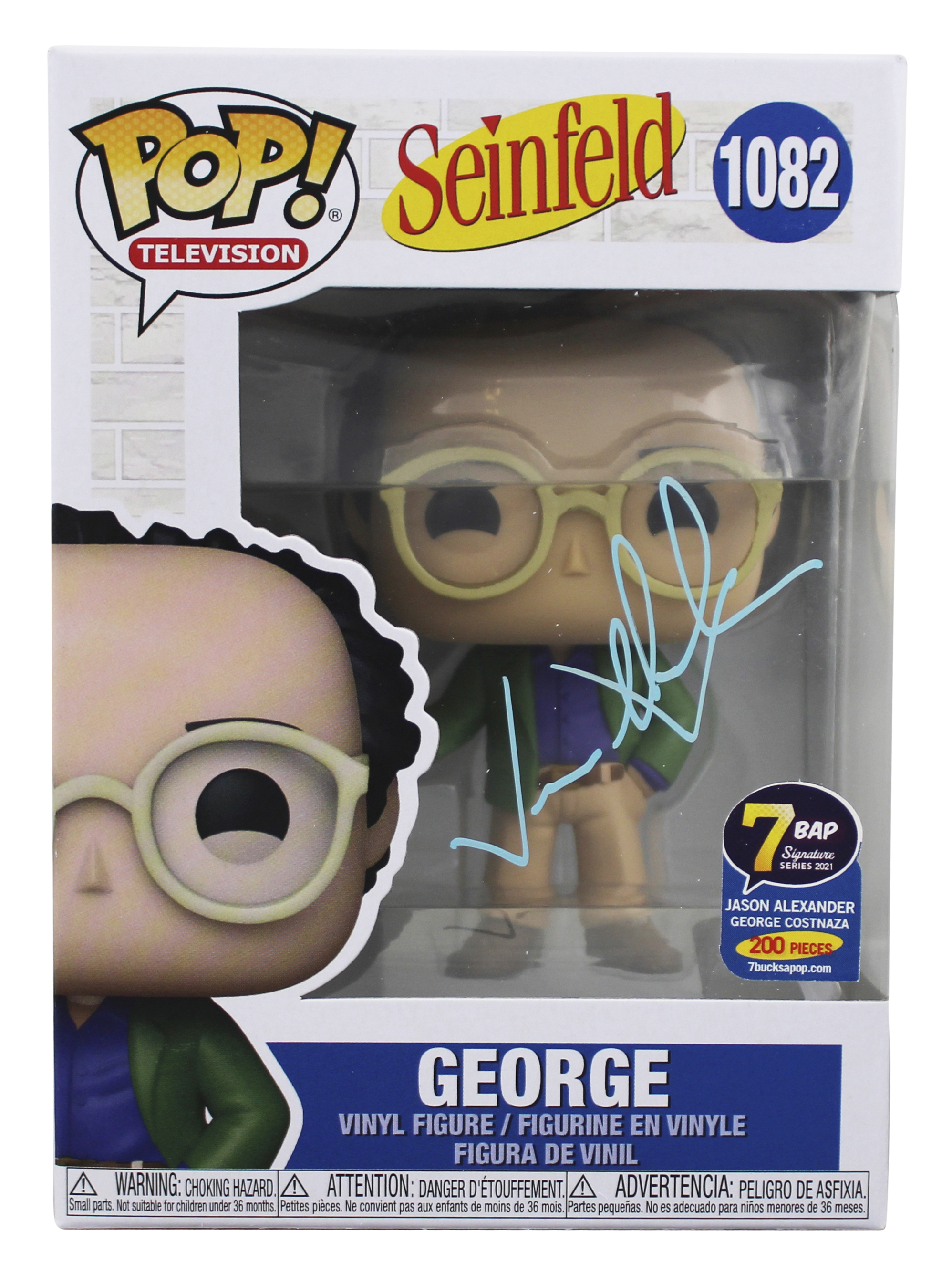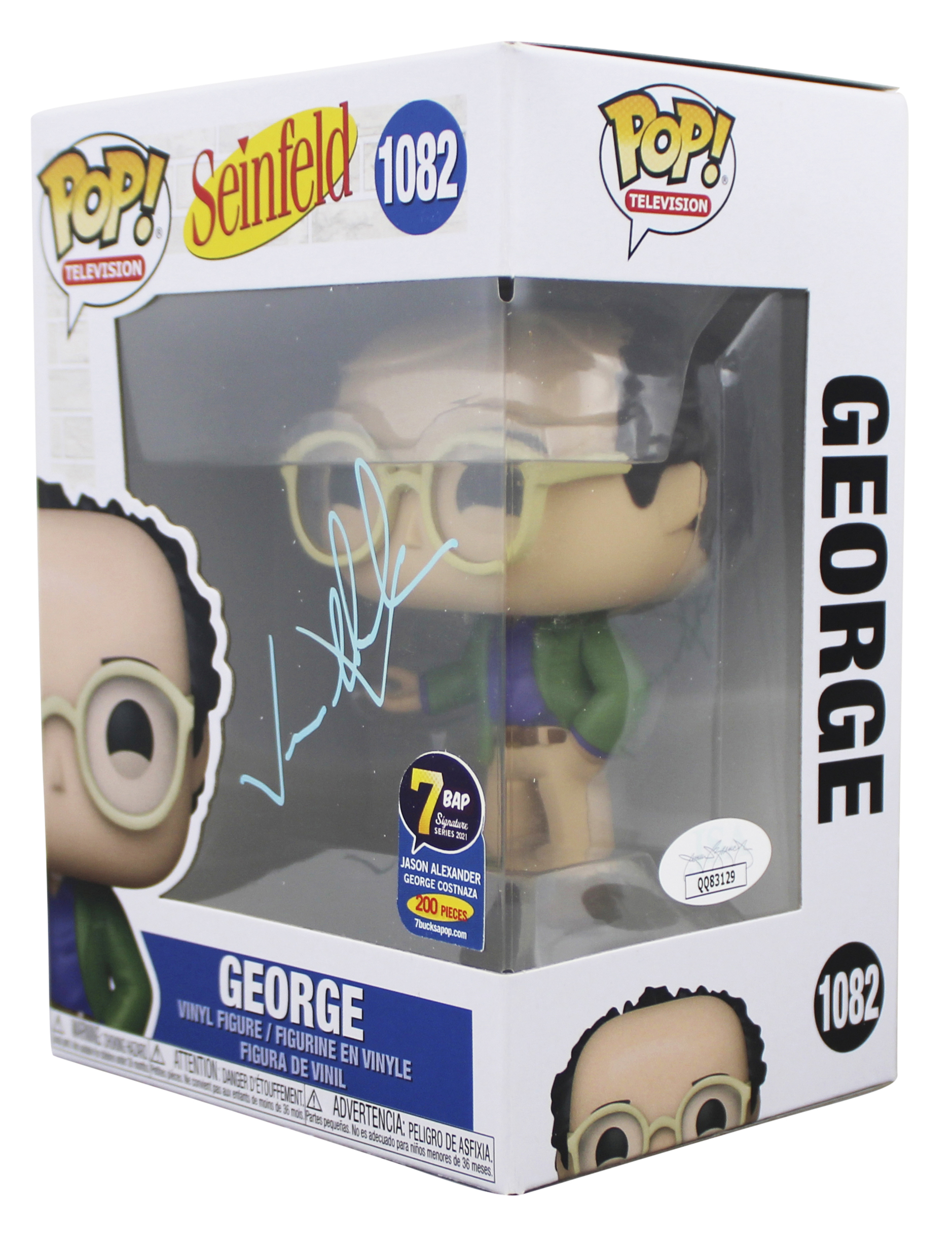 This Autographed George #1082 Funko Pop Vinyl Figure has been Personally Signed by Jason Alexander of Seinfeld. This item is 100% Authentic to include a Certificate of Authenticity (COA) / hologram by JSA. The authenticity can be verified on JSA website. This will be shipped in a Pop Protector. This Funko will have some handling wear from shipment to the signing and back. This Funko is in good condition, but would not be considered mint. Please refer to photos for item's condition prior to purchase.