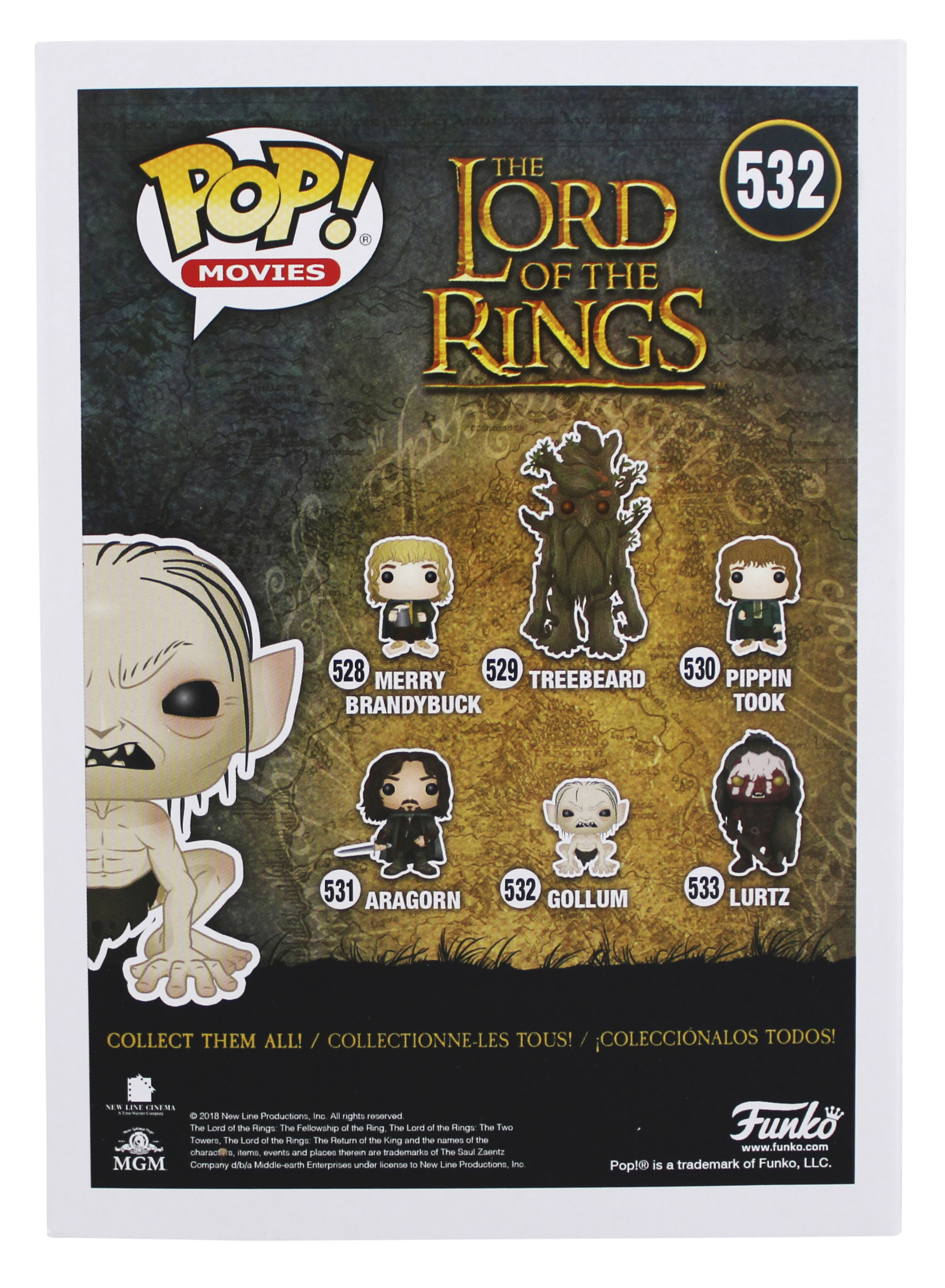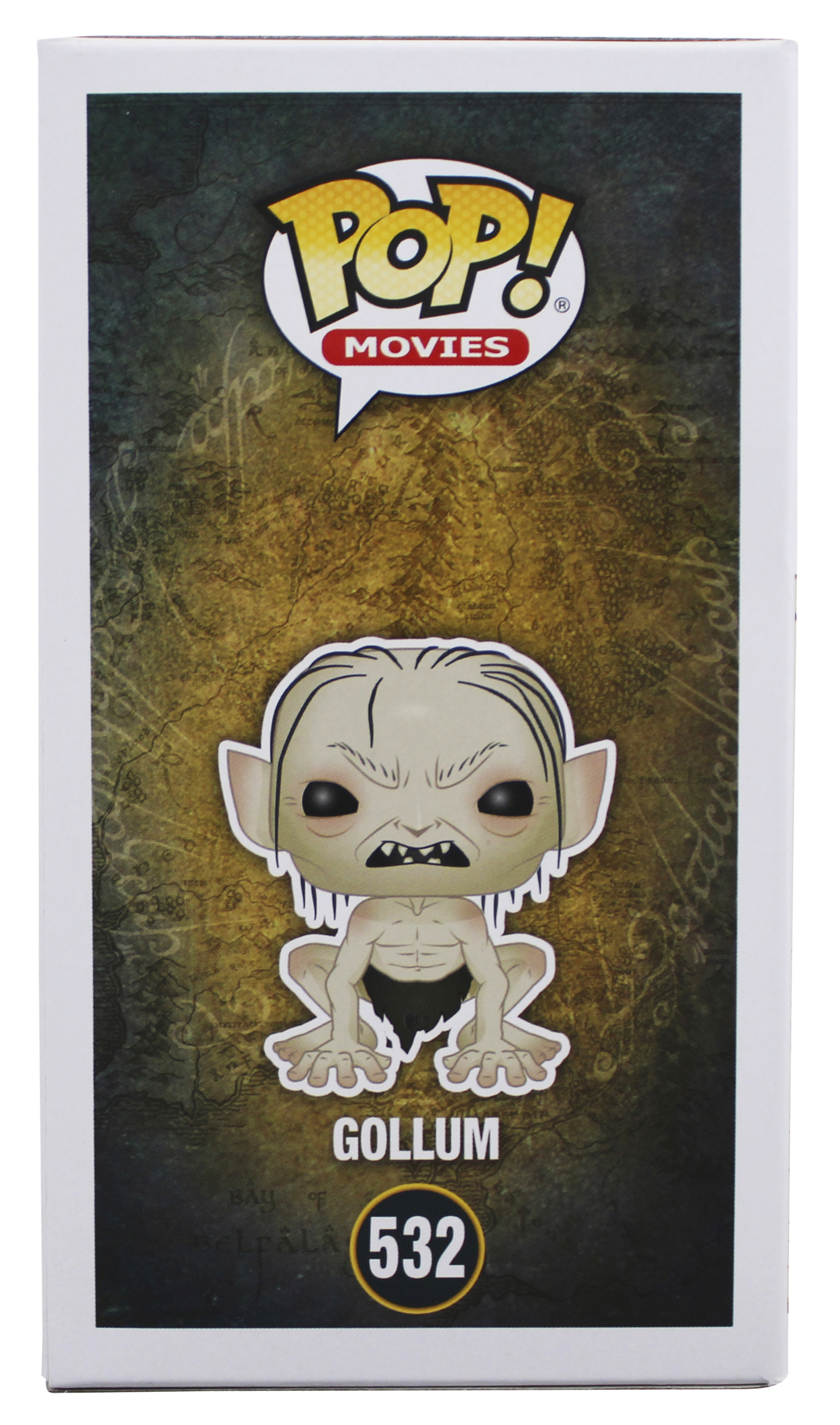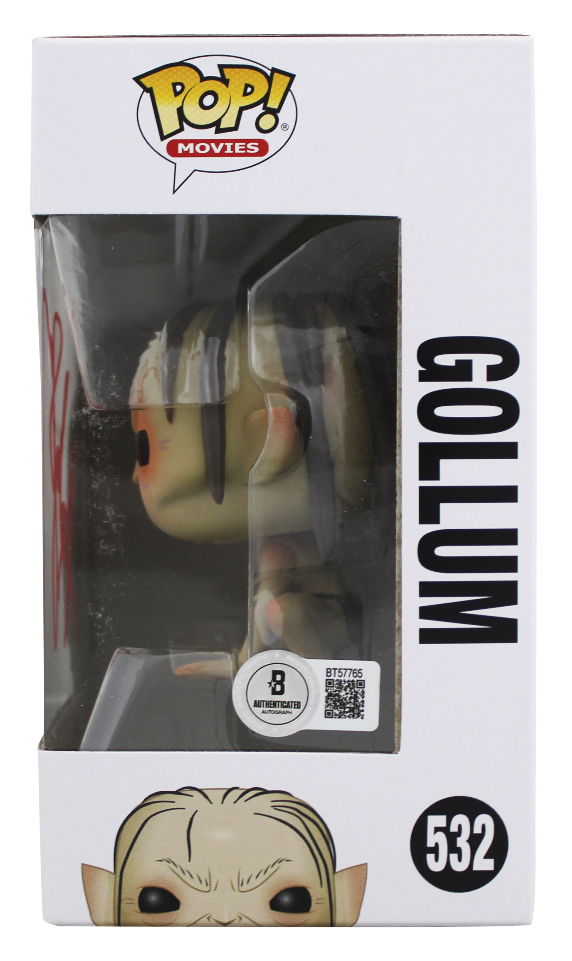 This Autographed w/ Red Signature Gollum #532 Funko Pop Vinyl Figure has been Personally Signed by Andy Serkis of Lord of the Rings. This item is 100% Authentic to include a hologram by Beckett Authentication Services. This item will come with an affixed Beckett Authentication Services (BAS) authentication sticker, which includes a scannable QR code to verify authenticity. Please note that Beckett no longer provides serial-numbered COA cards, and the attached BAS sticker will serve as the complete authentication for this item. We have multiples of this same item. While the photographs are representative of this item, the size, placement and strength of the signature may vary. Each item is hand signed, therefore, each autograph is unique. This item will ship in a Pop! Protector. These are in good condition but would not be considered mint.