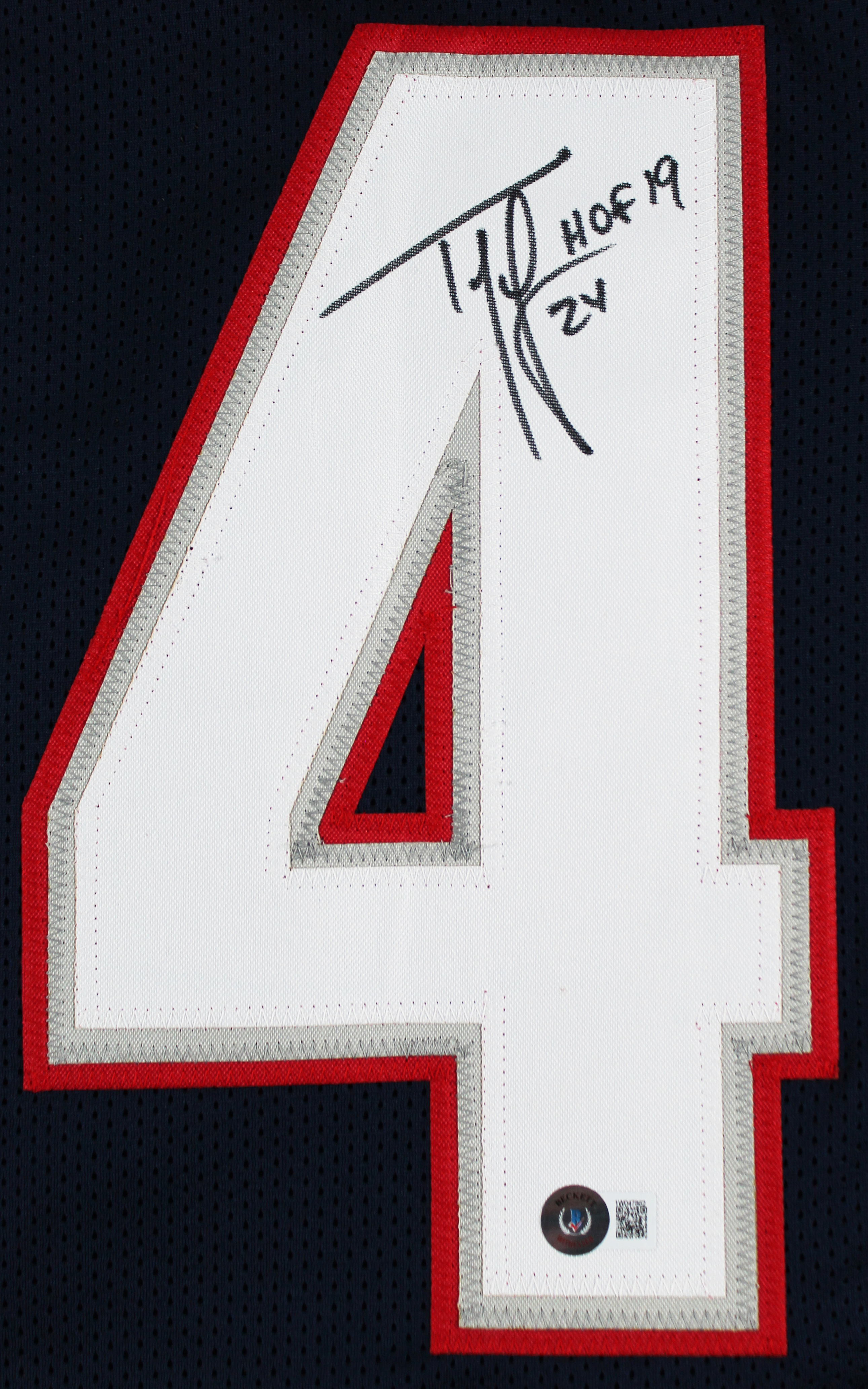 This Autographed Navy Blue Pro Style Framed Jersey with the inscription of "HOF 19" has been Personally Signed by Ty Law of the New England Patriots. This item is 100% Authentic to include a hologram by Beckett Authentication Services. This item will come with an affixed Beckett Authentication Services (BAS) authentication sticker, which includes a scannable QR code to verify authenticity. Please note that Beckett no longer provides serial-numbered COA cards, and the attached BAS sticker will serve as the complete authentication for this item. This is a BAS Witnessed Protection Program item which means a Beckett Authentication Service representative was present when this item was being signed. We conducted an autograph signing with Ty Law where multiples of the same item were signed. While the photographs are representative of this item, the size, placement and strength of the signature may vary. Each item is hand signed, therefore, each autograph is unique. This item can be verified through BAS Witnessed. This item has been professionally framed to overall dimensions of approximately 32 x 37 inches. This is a X-Large sized, non-branded, custom-stitched Framed Jersey. This jersey will be framed to order, it will take approximately 3-4 business days from purchase date for it to ship.