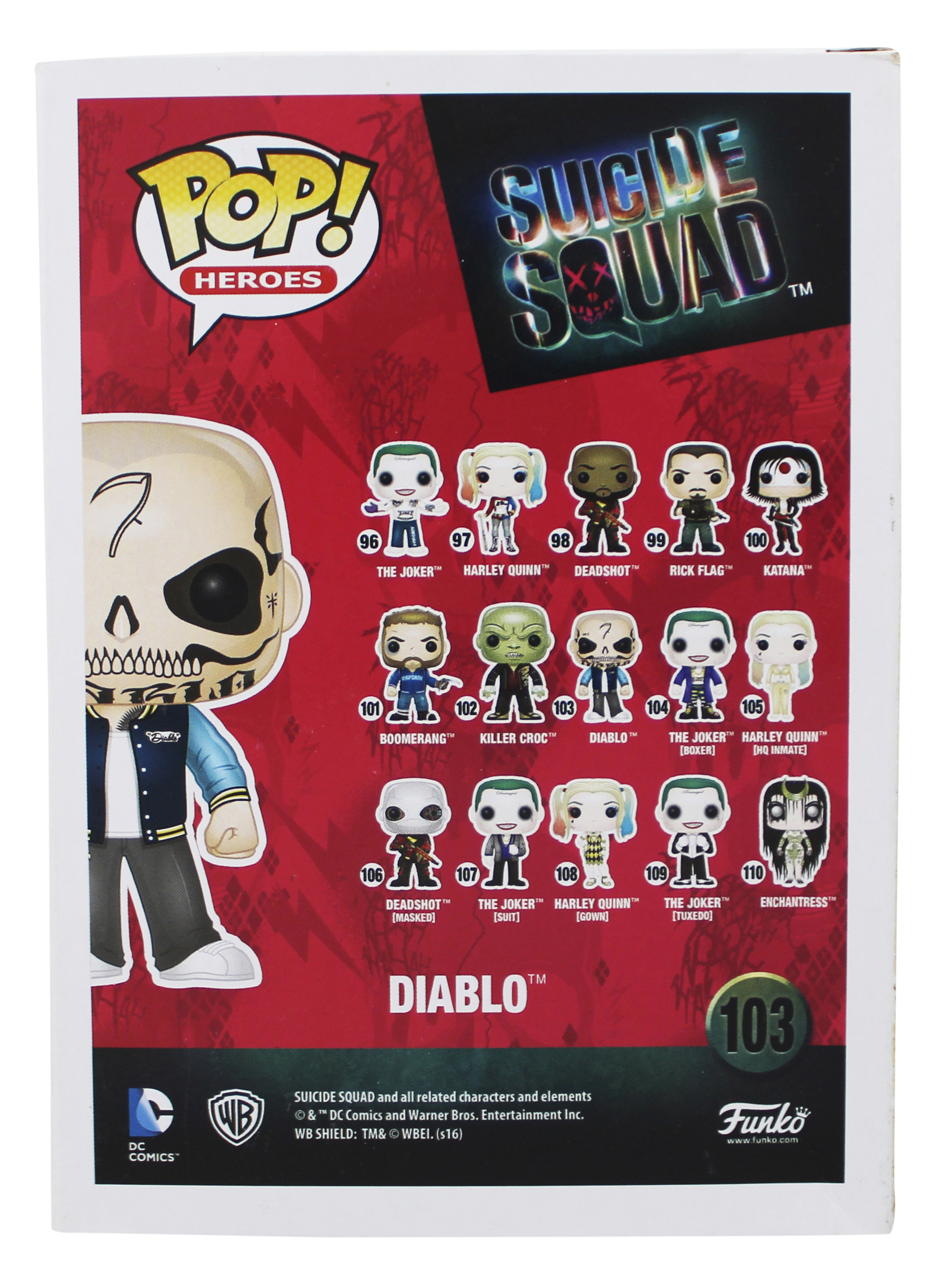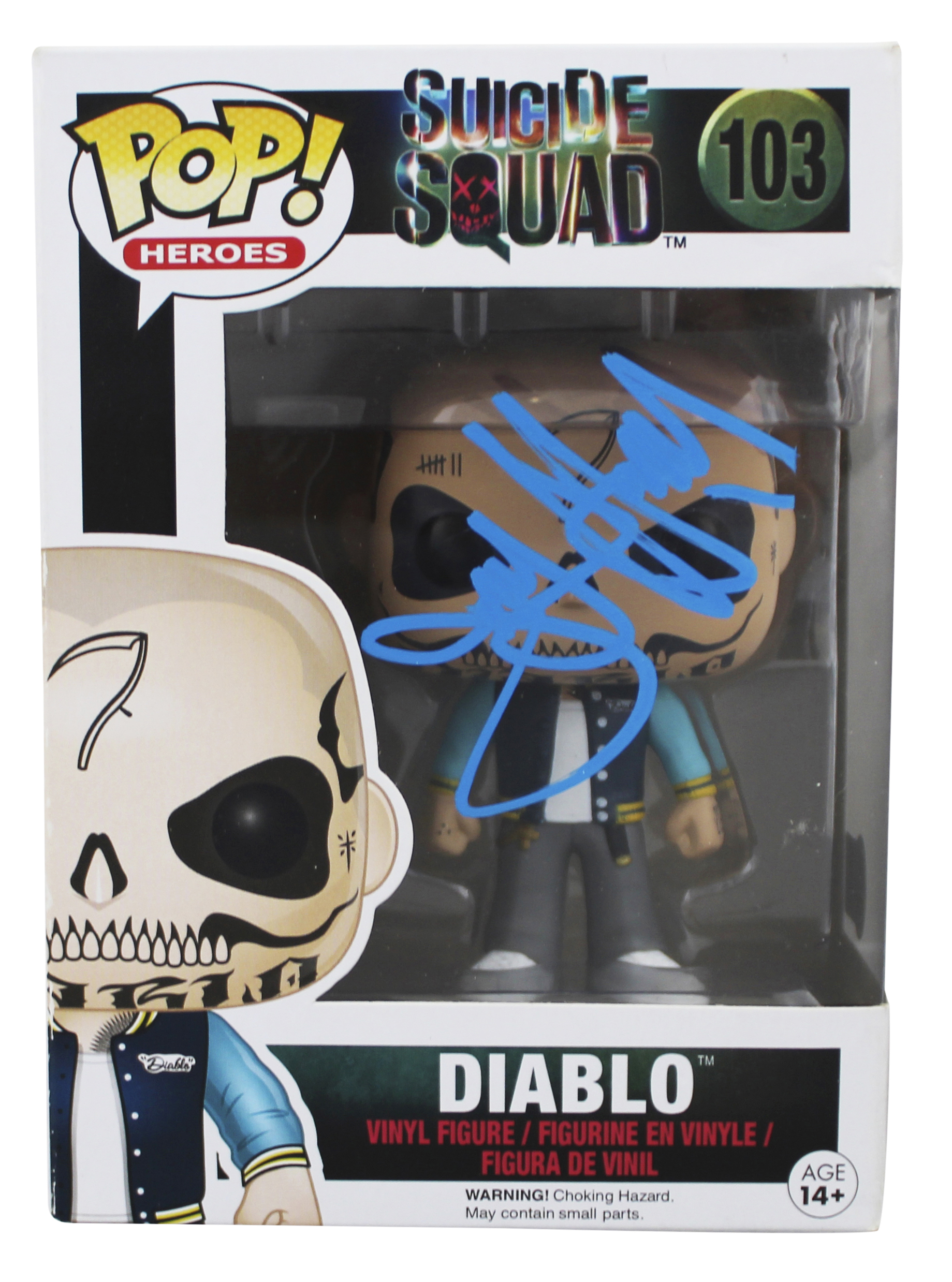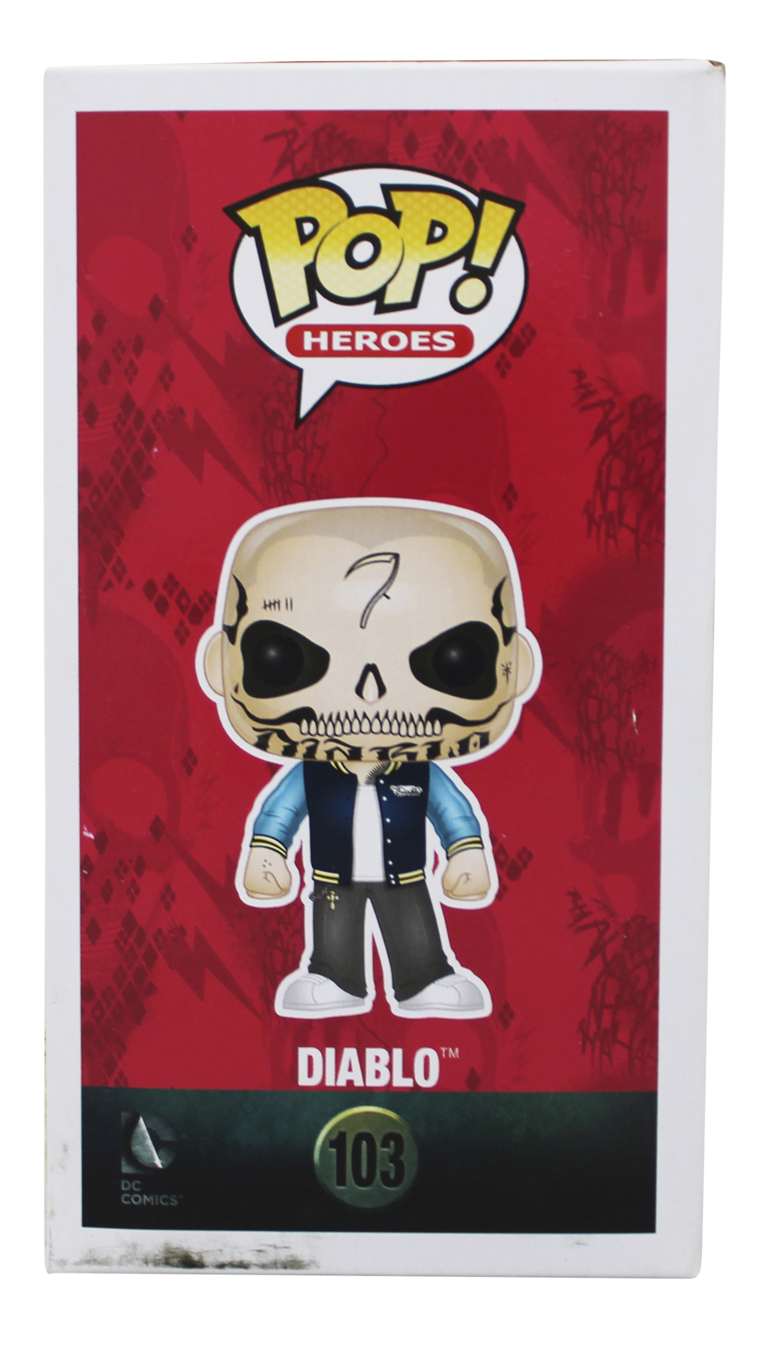 This Autographed Diablo #103 Funko Pop Vinyl Figure has been Personally Signed by Jay Hernandez of Suicide Squad. This item is 100% Authentic to include a hologram by Beckett Authentication Services. This item will come with an affixed Beckett Authentication Services (BAS) authentication sticker, which includes a scannable QR code to verify authenticity. Please note that Beckett no longer provides serial-numbered COA cards, and the attached BAS sticker will serve as the complete authentication for this item. The authenticity can be verified on Beckett Authentication Services website. This will be shipped in a Pop Protector. This Funko will have some handling wear from shipment to the signing and back. Please refer to pictures for item's condition prior to purchase.