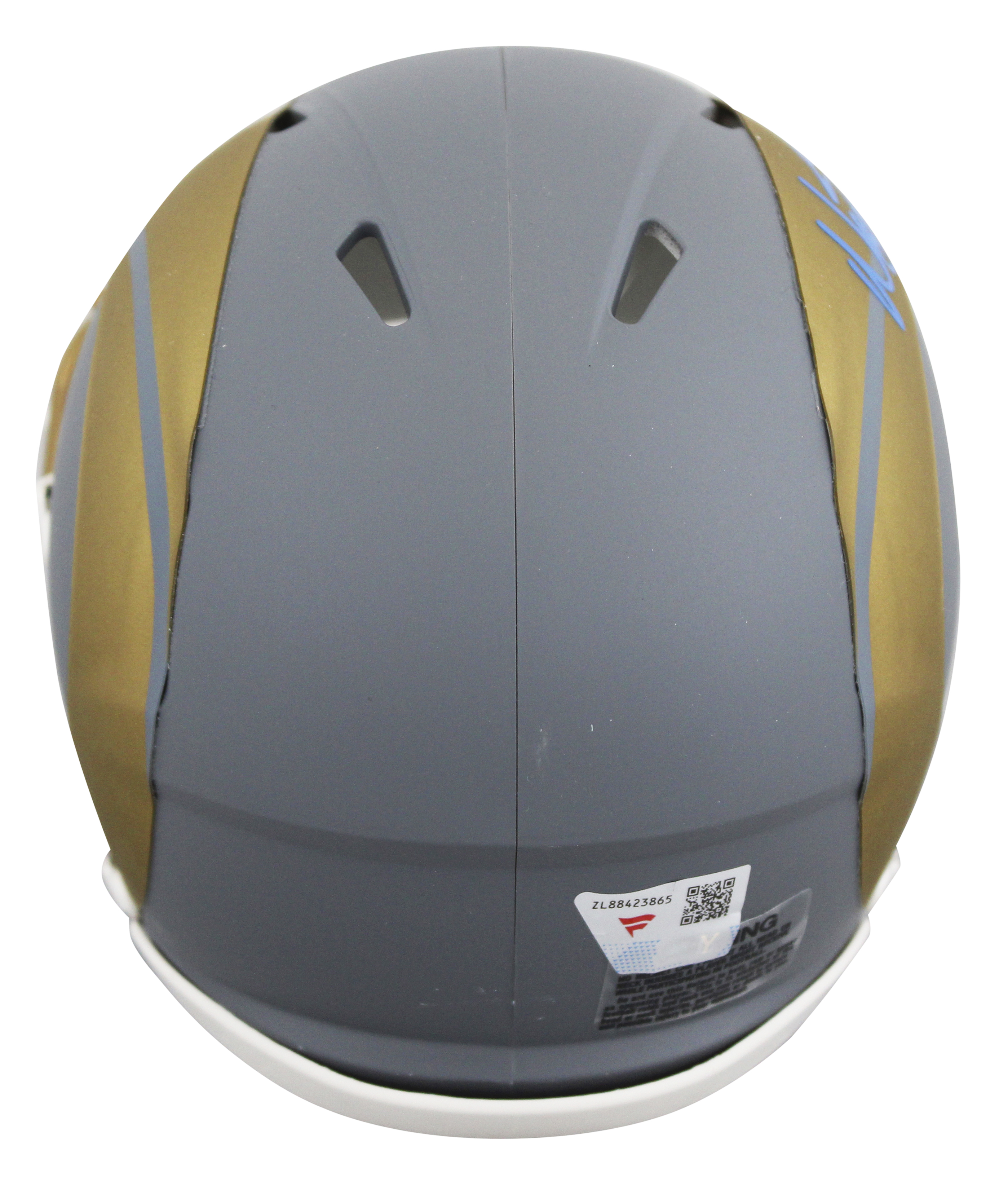 This Autographed Alternate Slate Speed Mini Helmet W/ Uv Mirrored Back Acrylic Display Case has been Personally Signed by Matthew Stafford of the Los Angeles Rams. This item is 100% Authentic to includes a numbered hologram by Fanatics. We conducted an autograph signing with Matthew Stafford where multiples of the same item were signed. While the photographs are representative of this item, the size, placement and strength of the signature may vary. Each item is hand signed, therefore, each autograph is unique. This item can be verified through Fanatics.