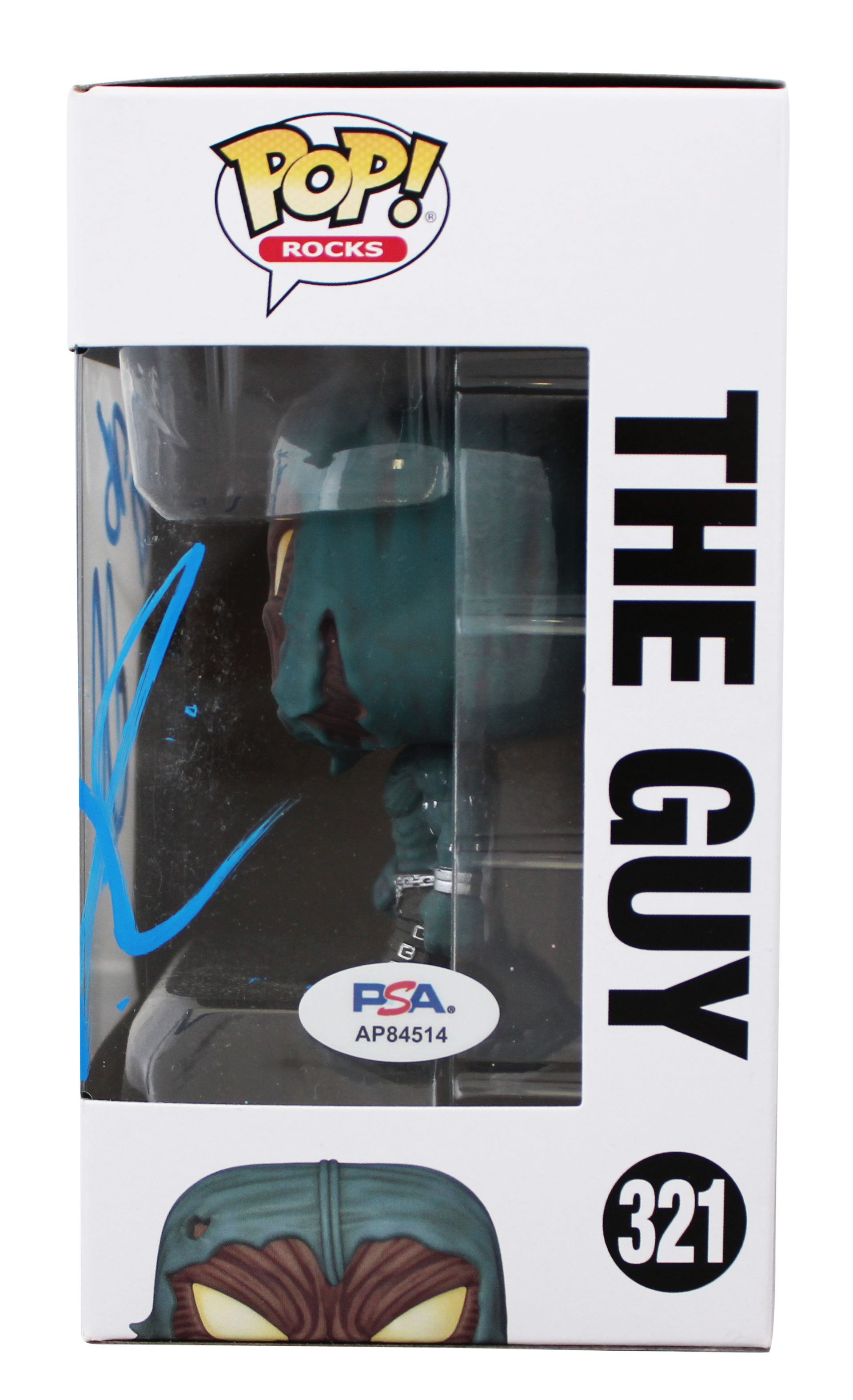 This Autographed The Guy #321 Funko Pop Vinyl Figure has been Personally Signed by David Draiman, Dan Donegan & John Moyer of Disturbed. This item is 100% Authentic and comes with a PSA/DNA Certification numbered Hologram. Please note that PSA/DNA no longer provides serial-numbered COA cards, and the attached PSA/DNA sticker will serve as the complete authentication for this item. The authenticity can be verified on Professional Sports Authenticators website. This will be shipped in a Pop Protector. This Funko will have some handling wear from shipment to the signing and back. This Funko is in good condition, but would not be considered mint. Please refer to photos for item's condition prior to purchase.