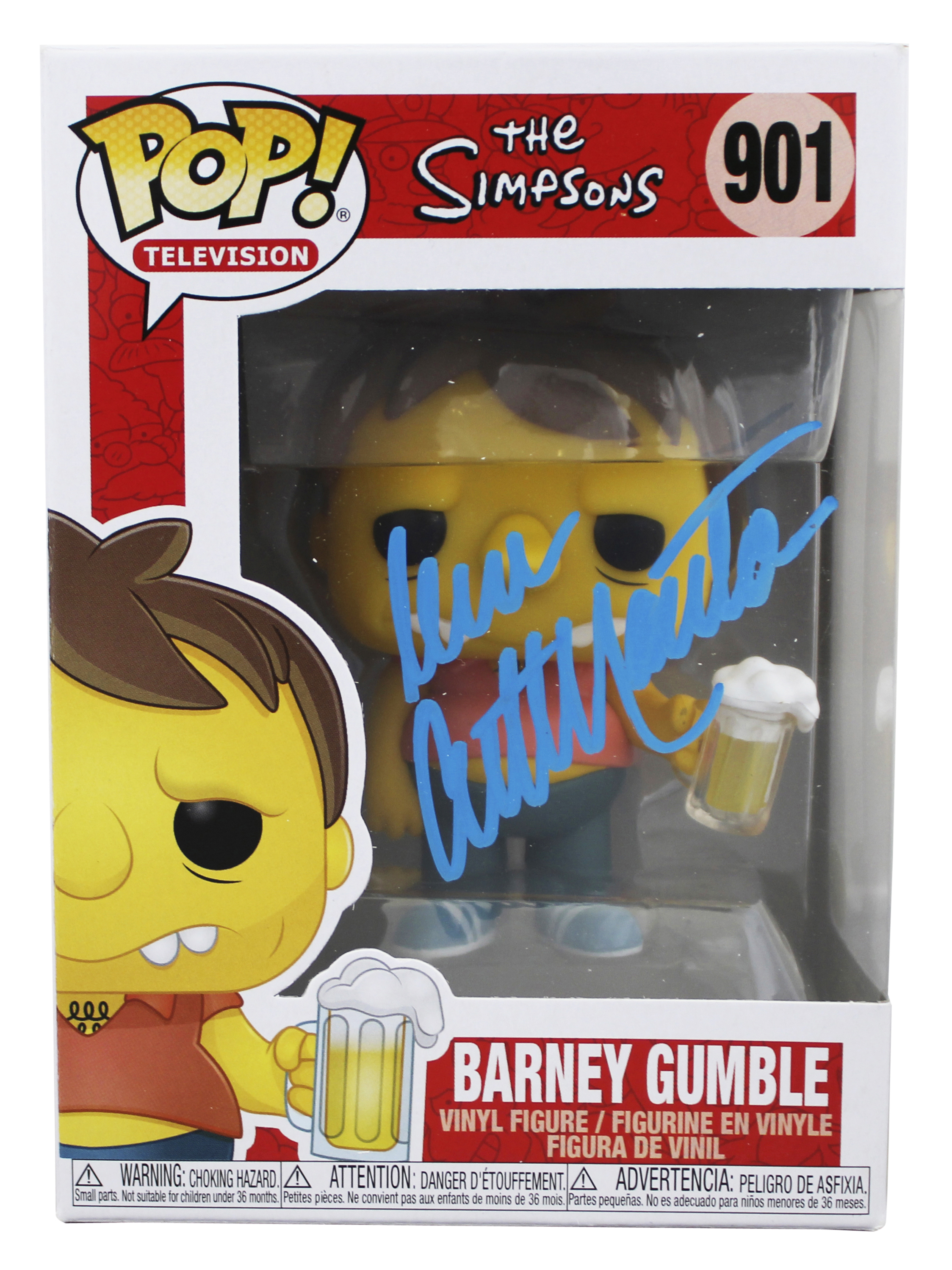 This Autographed Barney Gumble #901 Funko Pop Vinyl Figure has been Personally Signed by Dan Castellaneta of The Simpsons. This item is 100% Authentic to include a Certificate of Authenticity (COA) / hologram by JSA. The authenticity can be verified on JSA website. This will be shipped in a Pop Protector. This Funko will have some handling wear from shipment to the signing and back. Please refer to pictures for item's condition prior to purchase.
