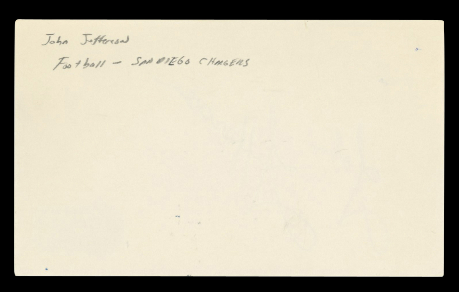 This Autographed 3x5 Index Card has been Personally Signed by John Jefferson of the Green Bay Packers. This item is 100% Authentic to include a hologram by Beckett Authentication Services. This item will come with an affixed Beckett Authentication Services (BAS) authentication sticker, which includes a scannable QR code to verify authenticity. Please note that Beckett no longer provides serial-numbered COA cards, and the attached BAS sticker will serve as the complete authentication for this item. The authenticity can be verified on Beckett Authentication Services website.