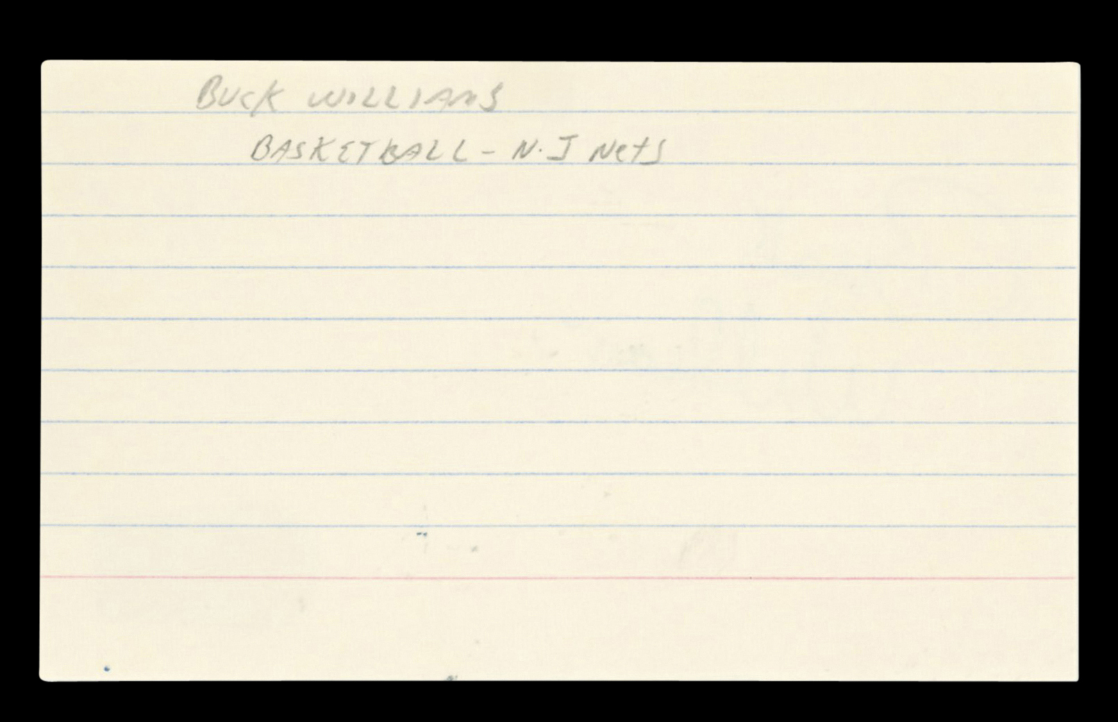 This Autographed 3x5 Index Card has been Personally Signed by Buck Williams of the New Jersey Nets. This item is 100% Authentic to include a hologram by Beckett Authentication Services. This item will come with an affixed Beckett Authentication Services (BAS) authentication sticker, which includes a scannable QR code to verify authenticity. Please note that Beckett no longer provides serial-numbered COA cards, and the attached BAS sticker will serve as the complete authentication for this item. The authenticity can be verified on Beckett Authentication Services website.