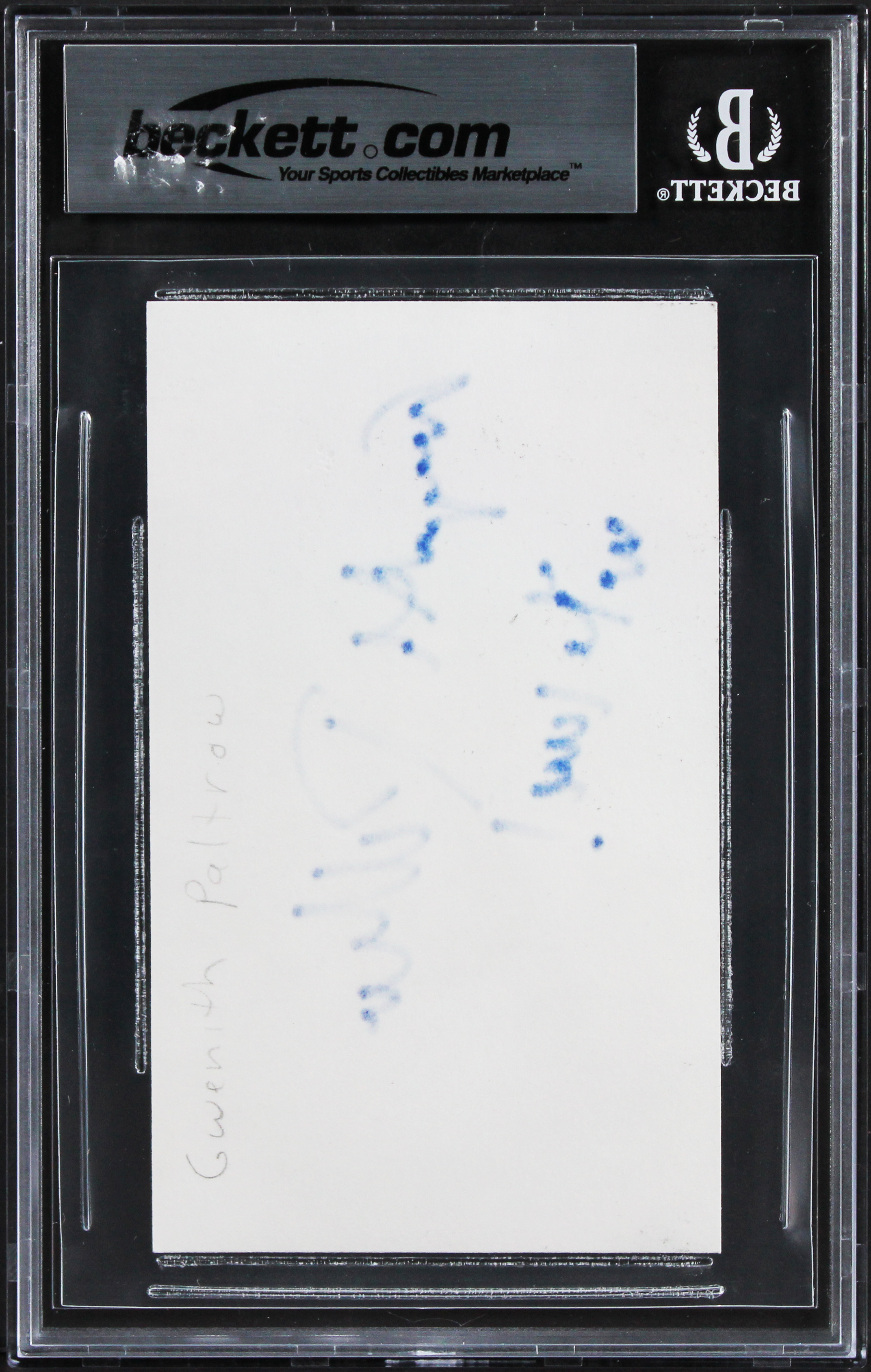 This Autographed 3x5 Index Card with the inscription of "With Love" has been Personally Signed by Gwyneth Paltrow of Iron Man. This item is 100% Authentic, it comes slabbed and authenticated by Beckett Authentication Services. The authenticity can be verified on Beckett Authentication Services website.